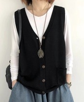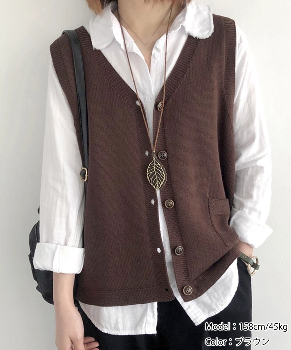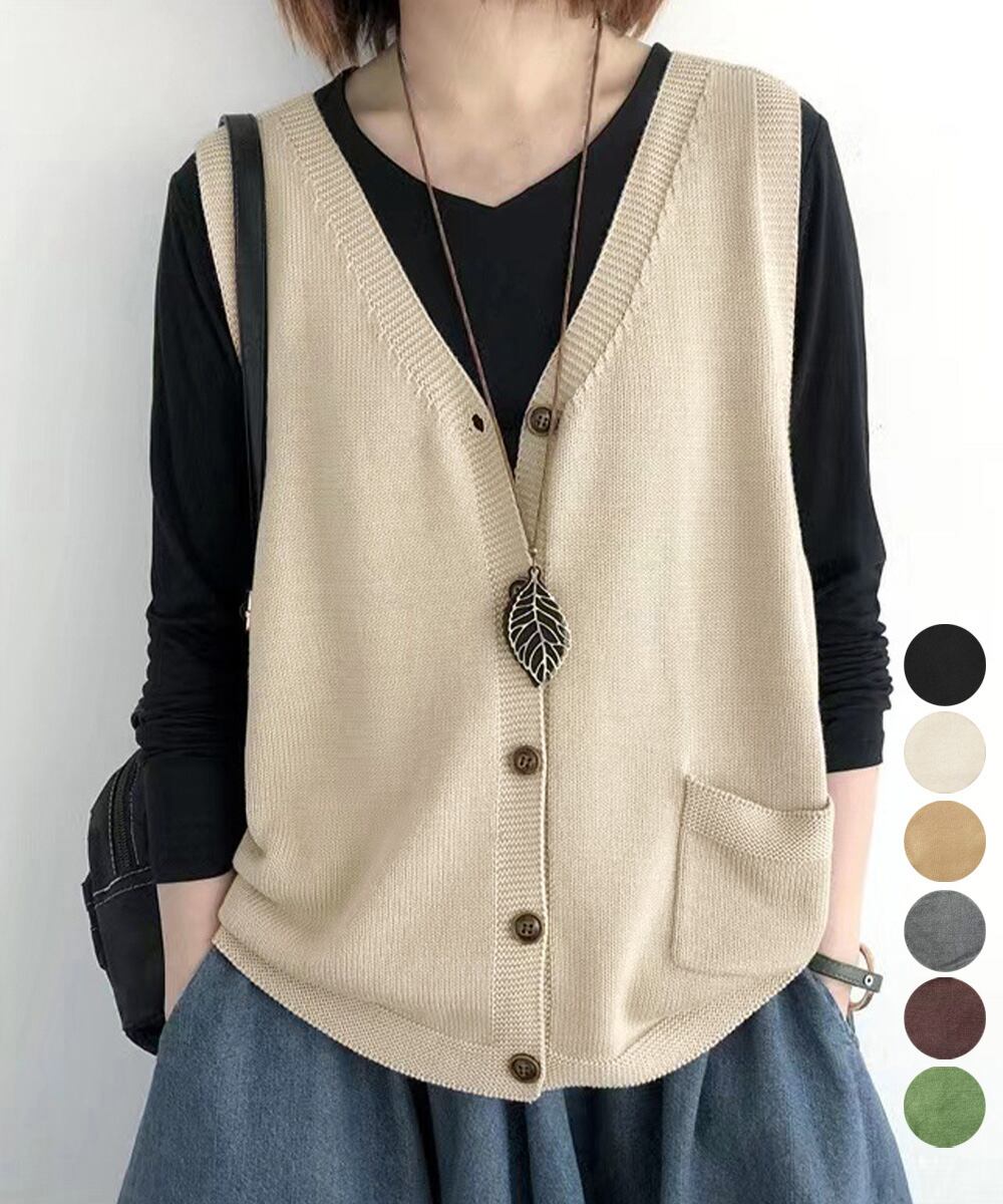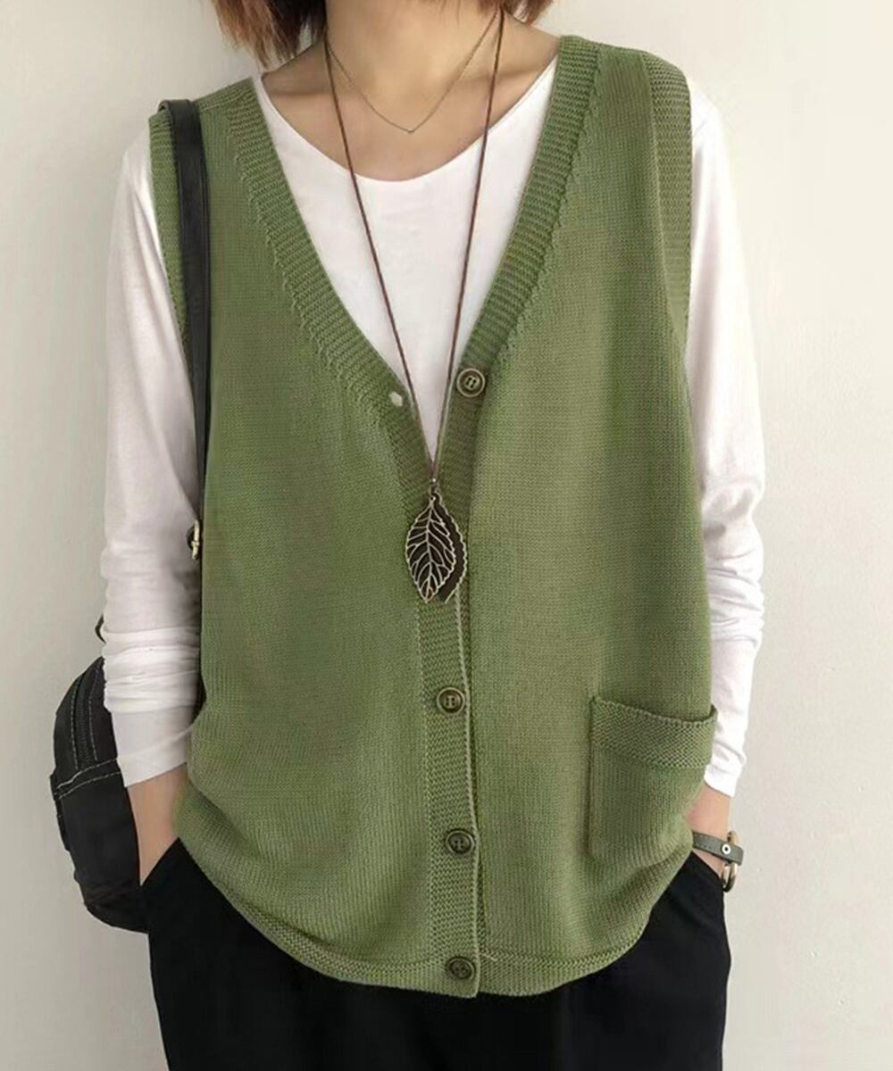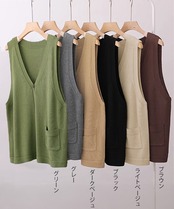 無地ニットチョッキ 重ね着 ニット羽織 着やせニット春秋冬