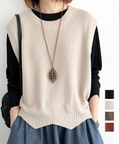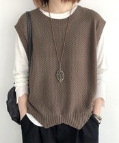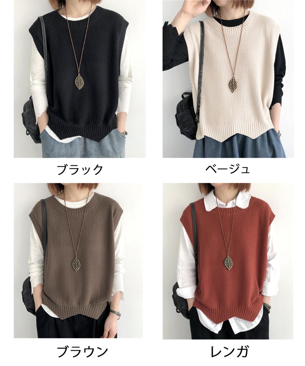 レディース ニットジレ クルーネック ベストセーター 体型カバー 韓国風 ニットチョッキ 袖なしプルオーバー カジュアル