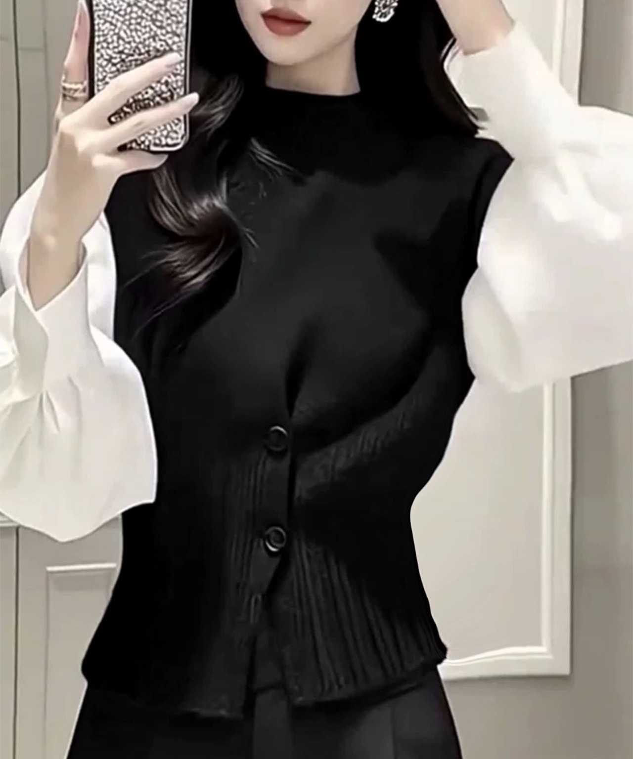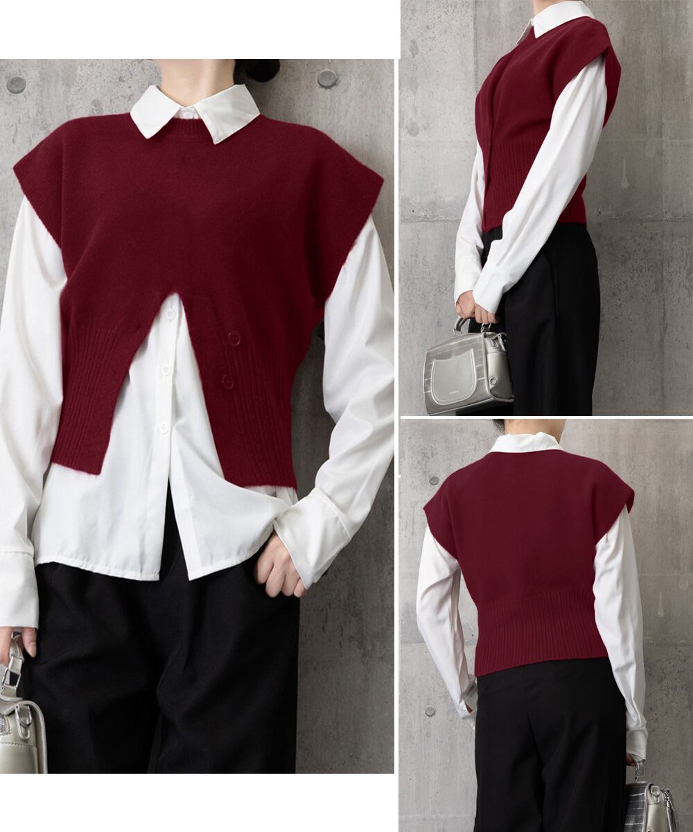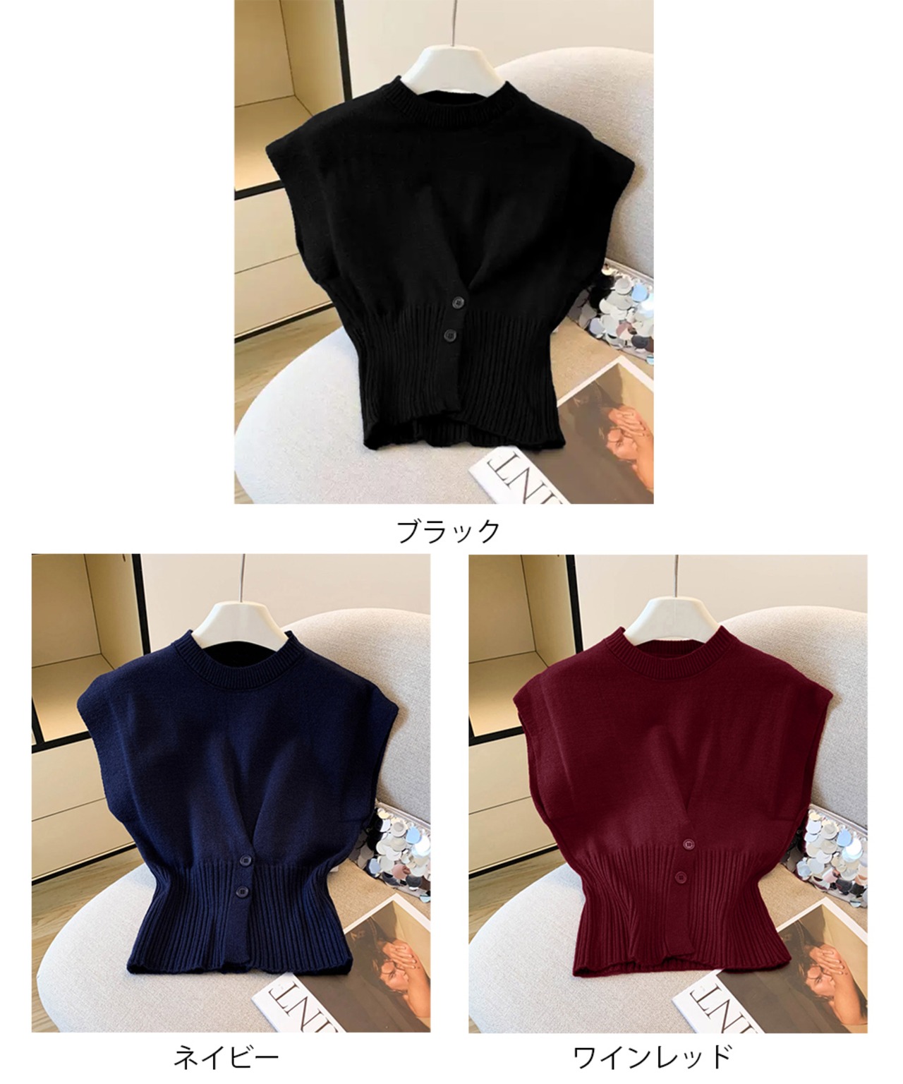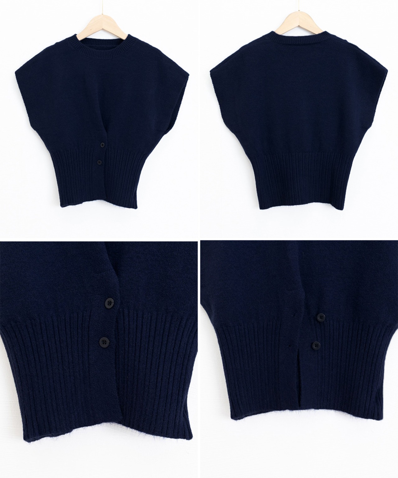 リブ切り替えとフロントボタンがアクセントになった上品なニットベスト。