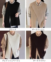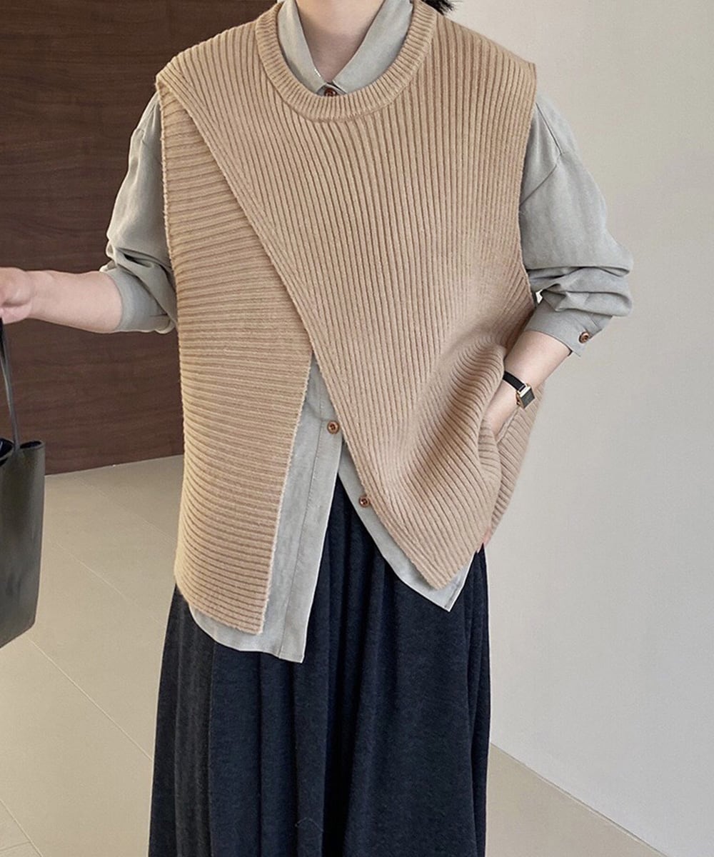 袖なしニット着やせ 体型カバートップス 秋冬レイヤードジレ