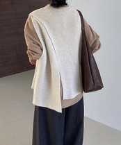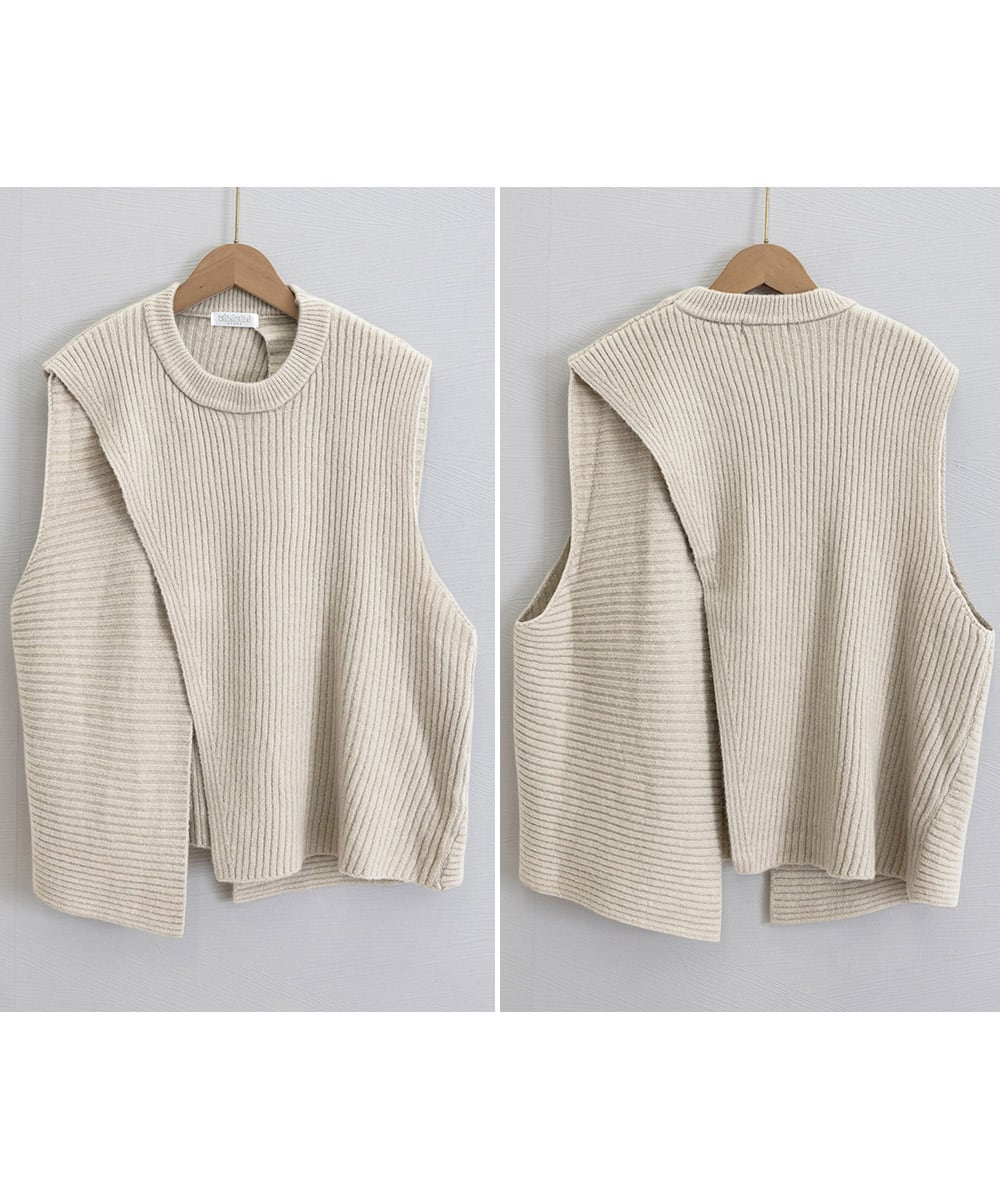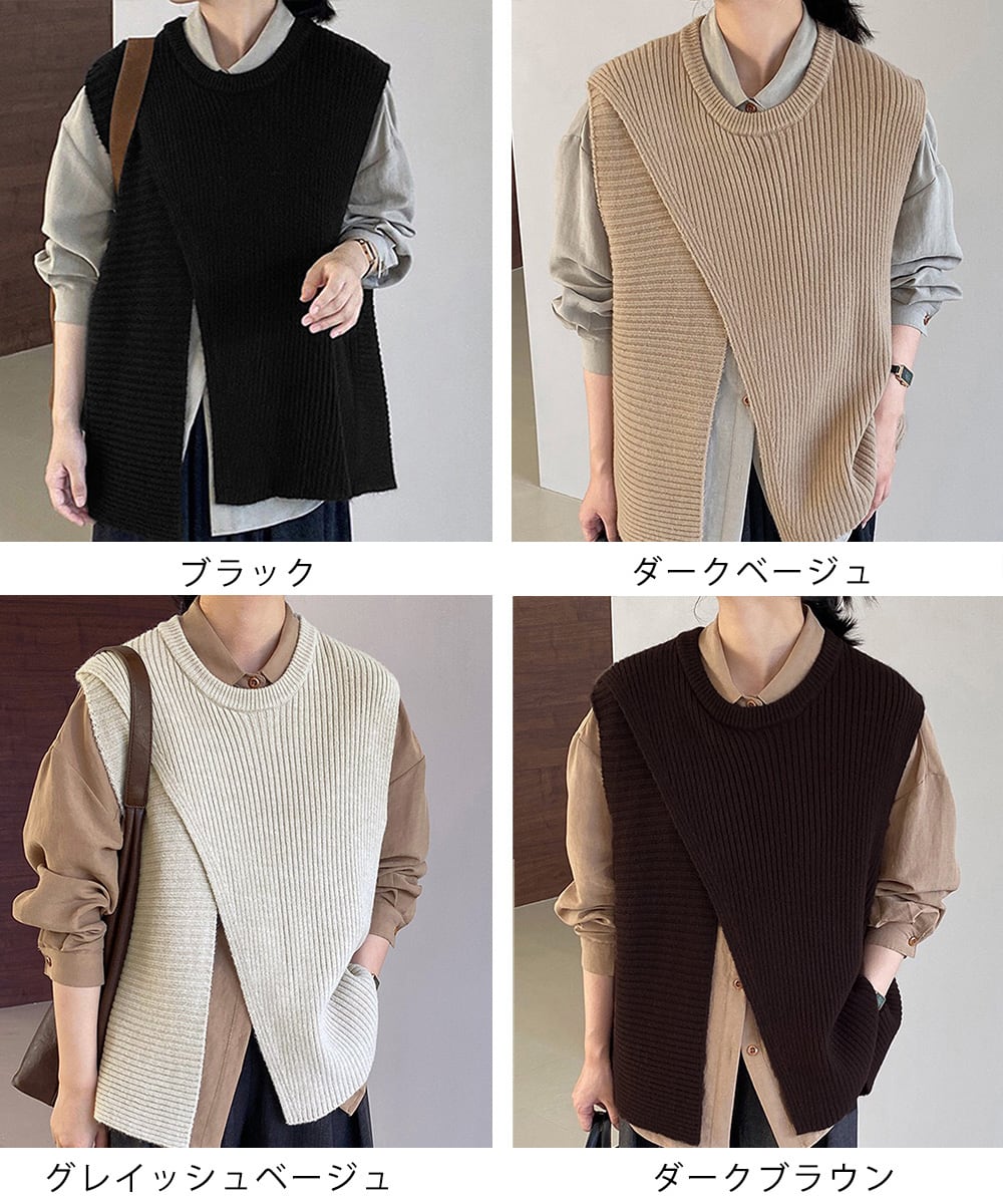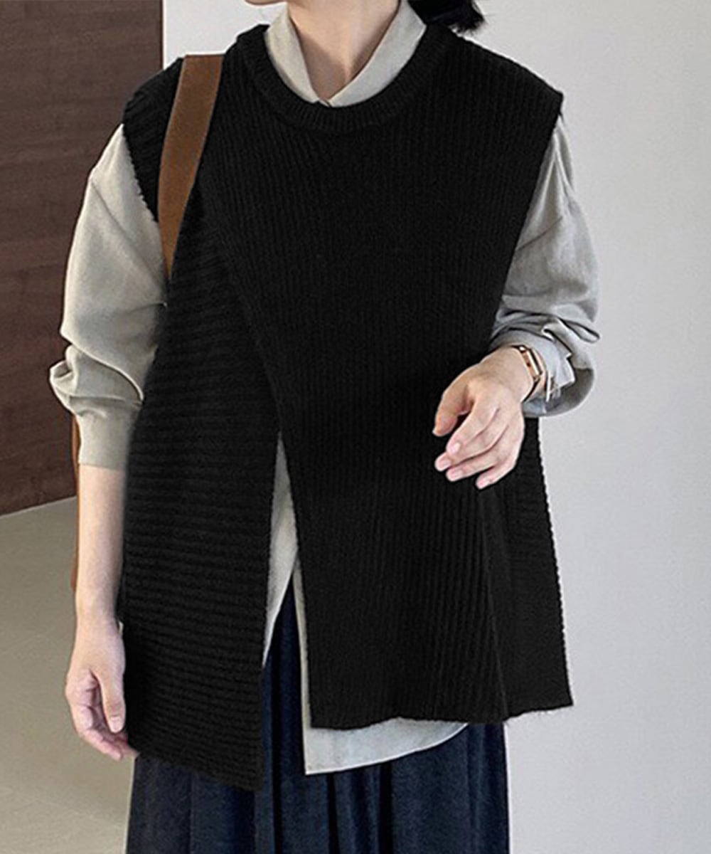 前後スリット入りのデザインがおしゃれな印象を与える、秋冬新作のレディースニットベスト。