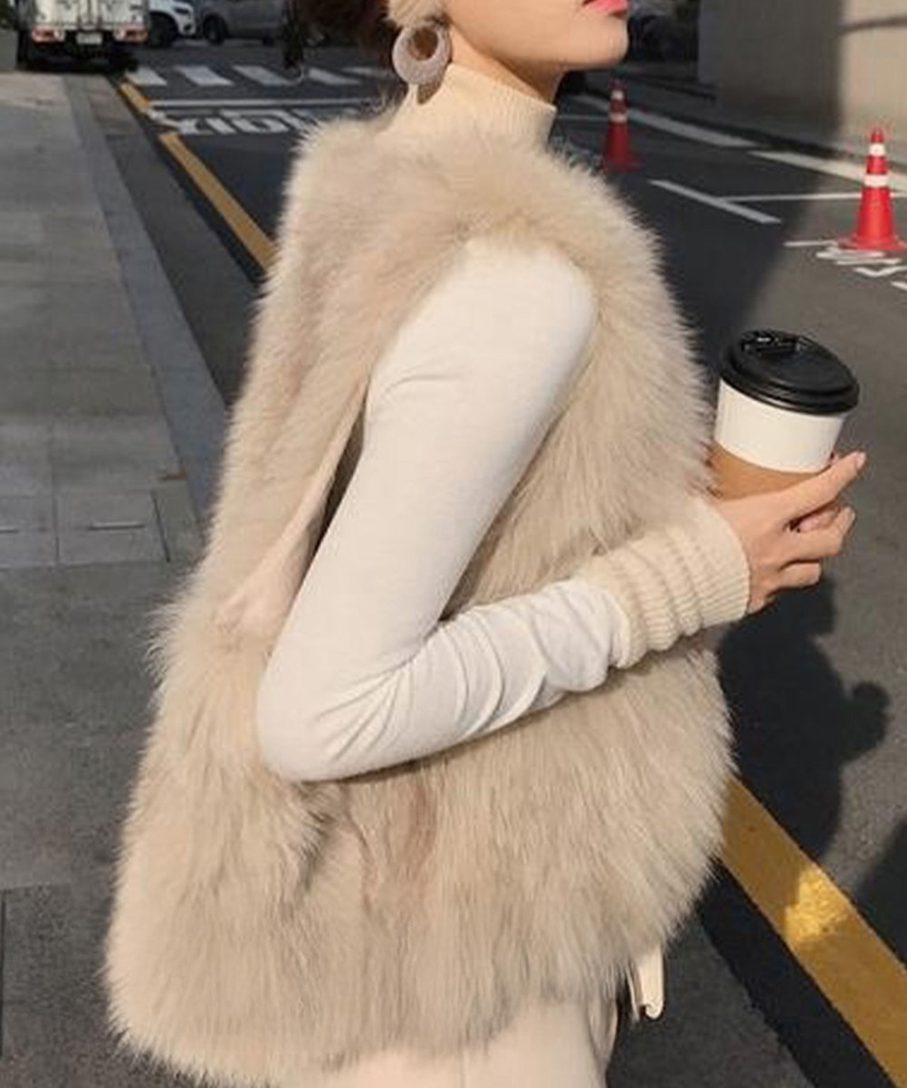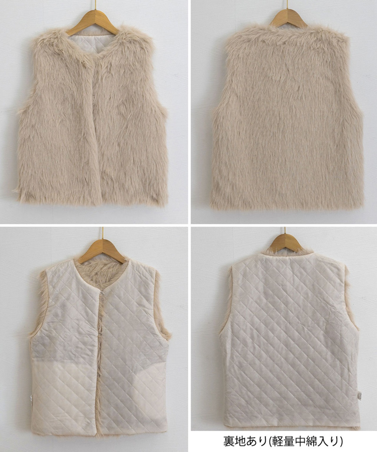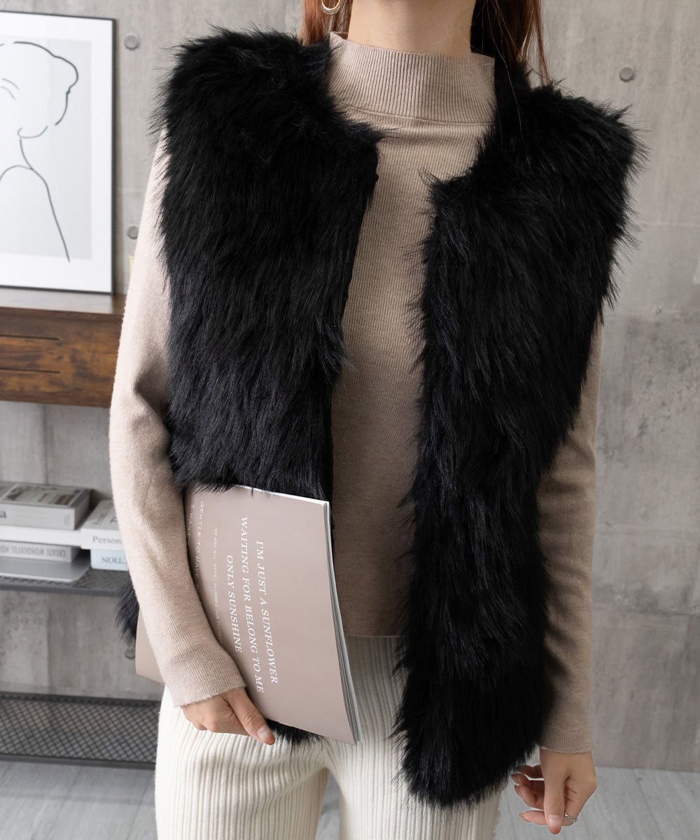 ふわふわの肌ざわりが心地いいフェイクファーベスト。