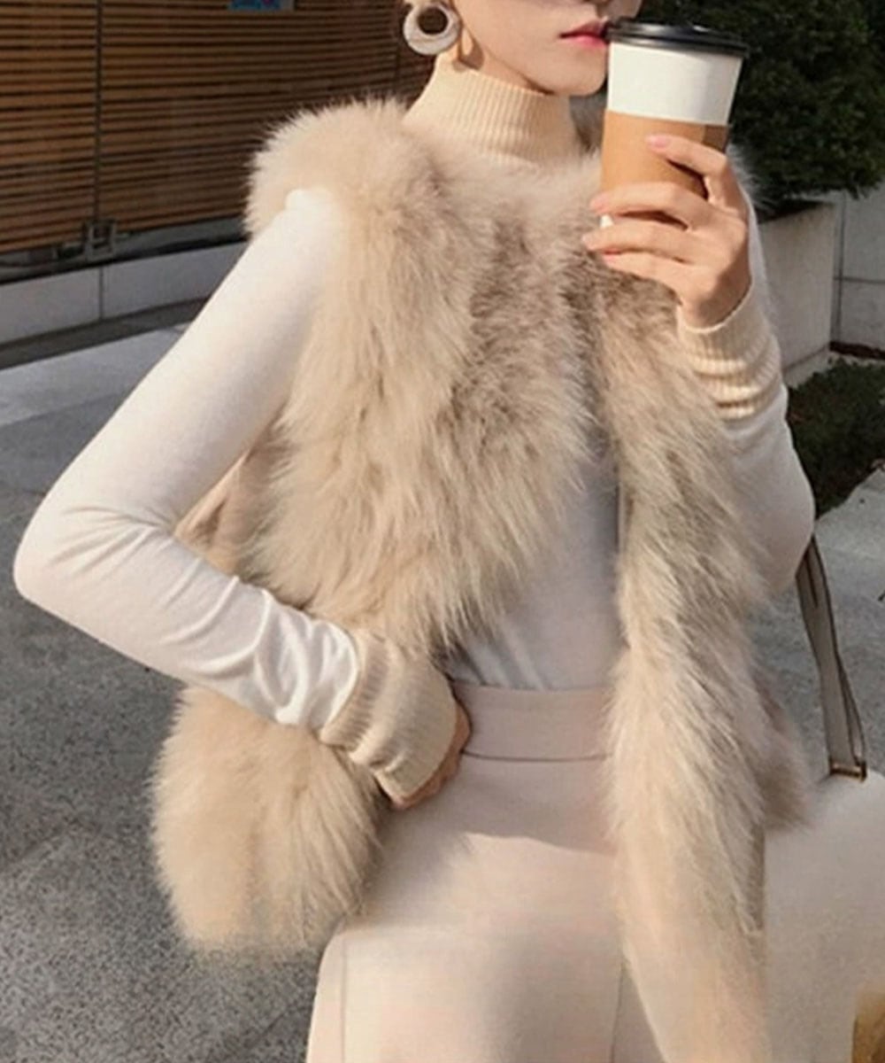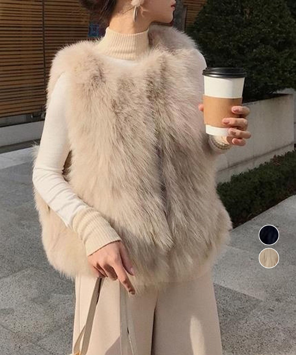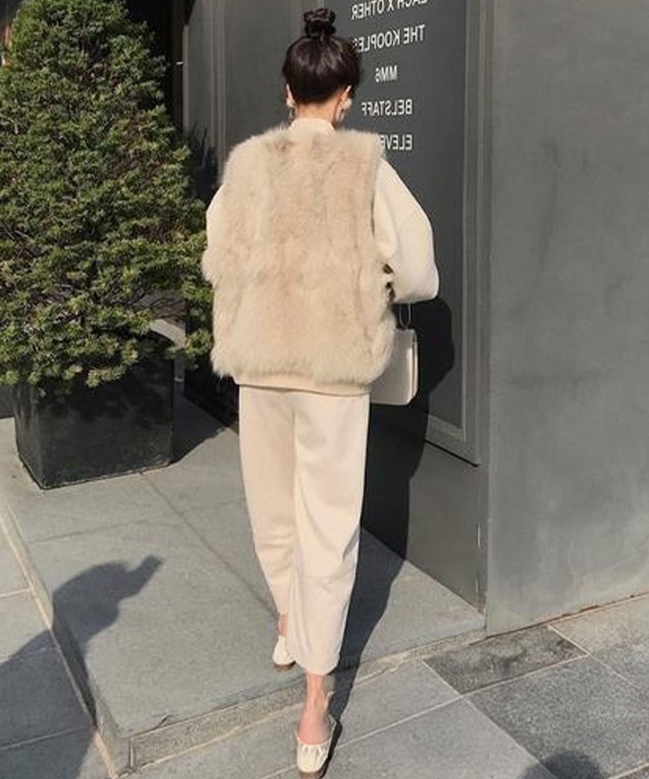 ふわふわの肌ざわりが心地いいフェイクファーベスト。