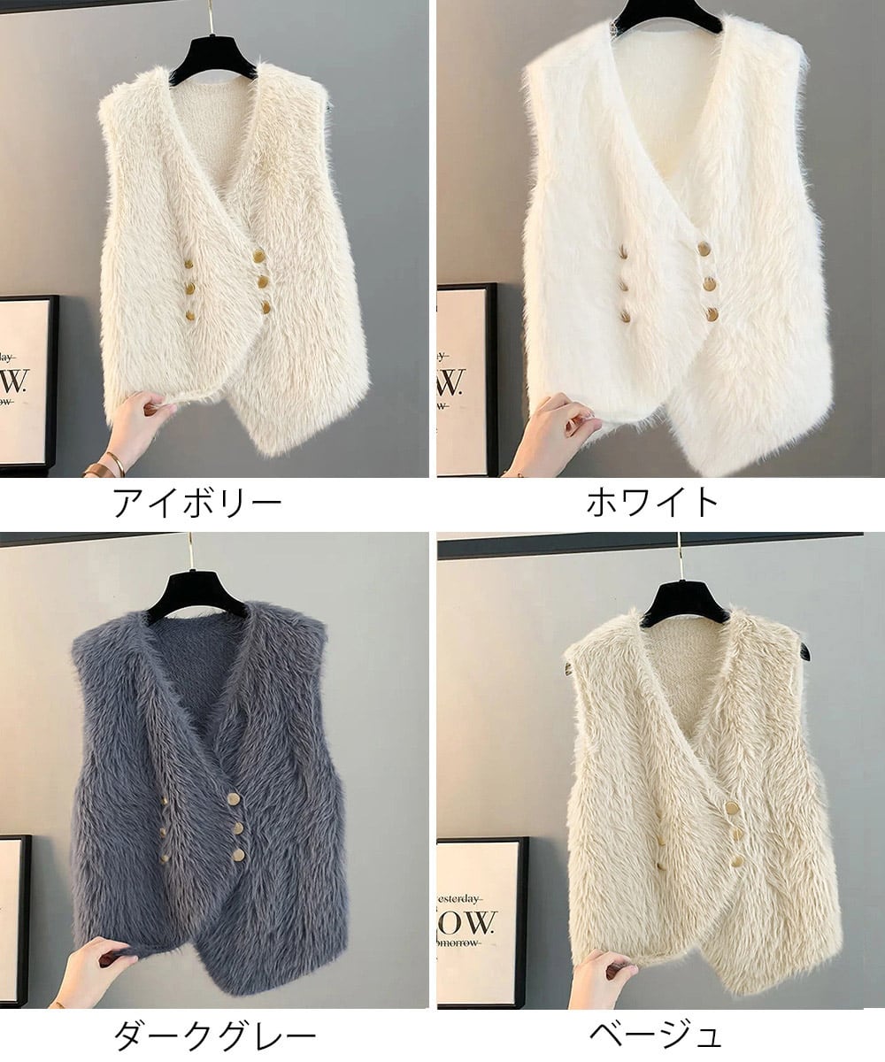 ふわふわファーベストVネックニットベスト