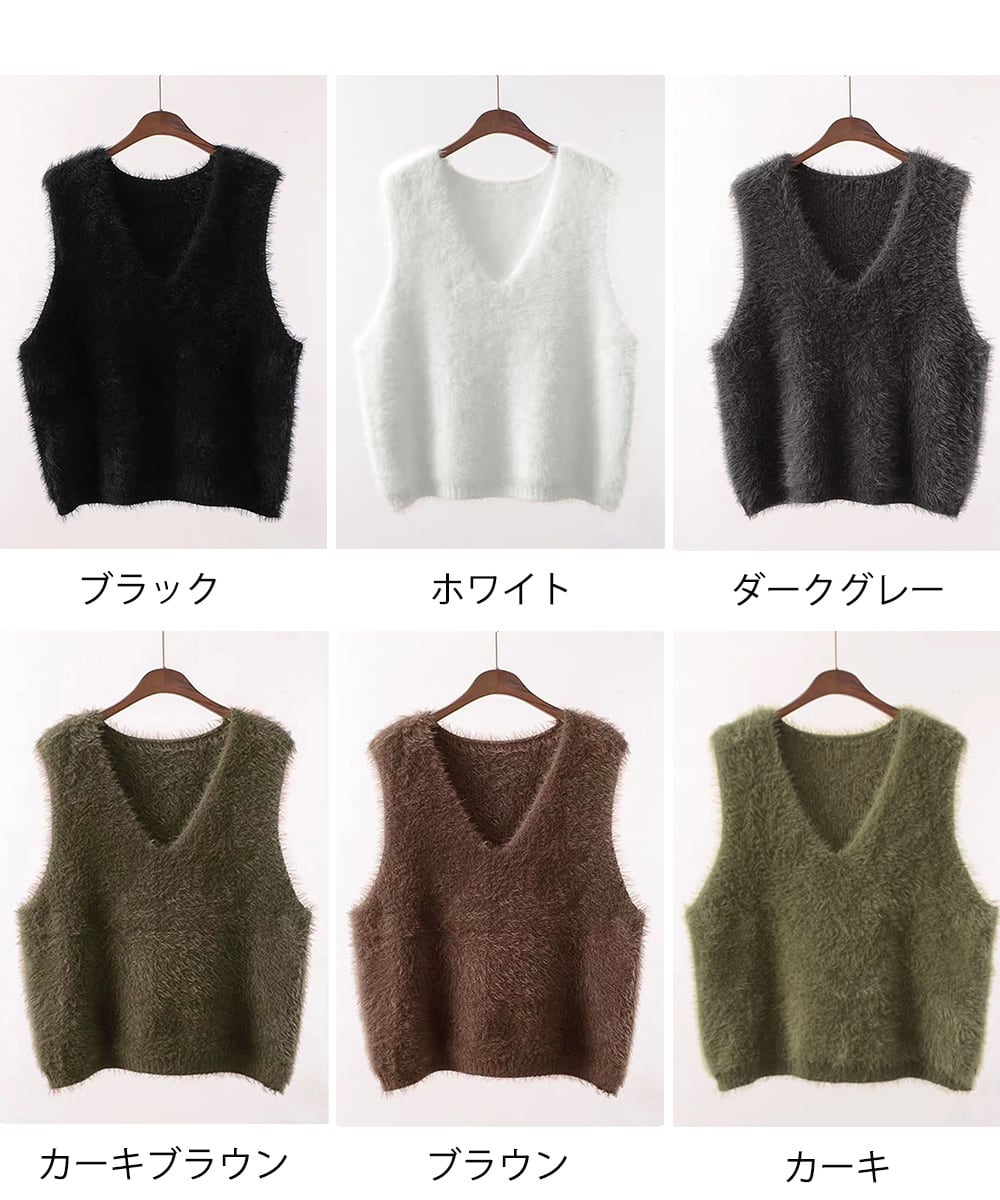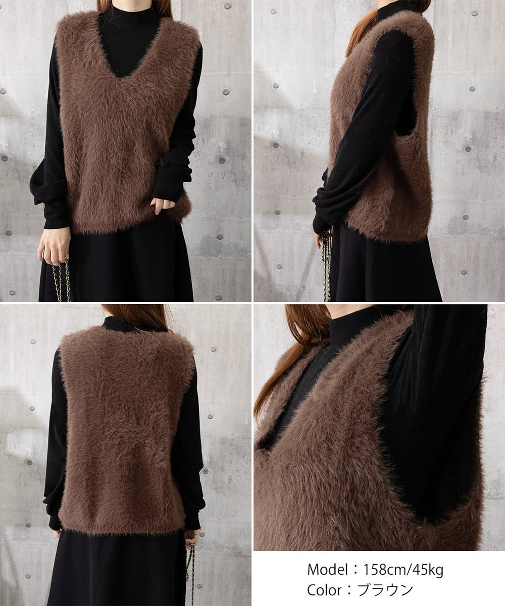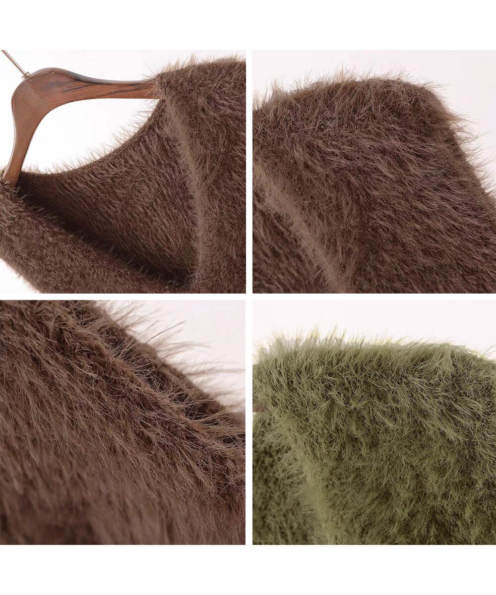 Vネック起毛フェザーニットベストふわふわ