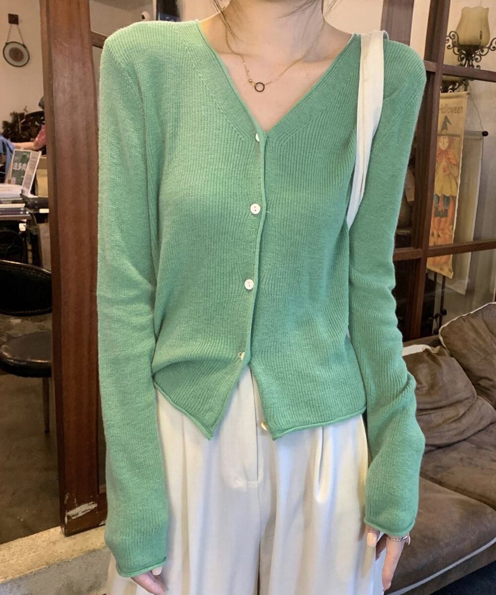 シンプルながら着回し力抜群のリブニットカーディガン。
