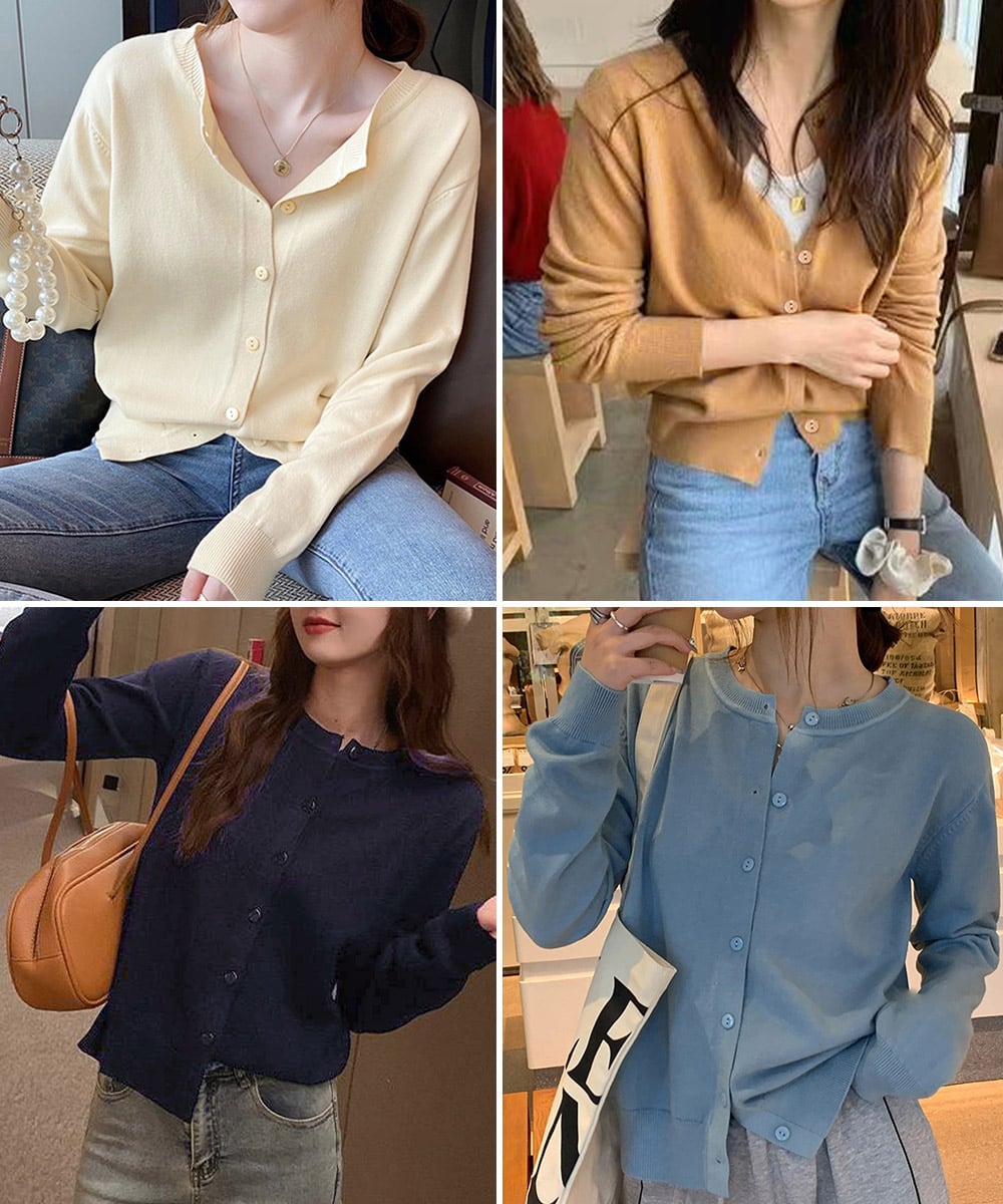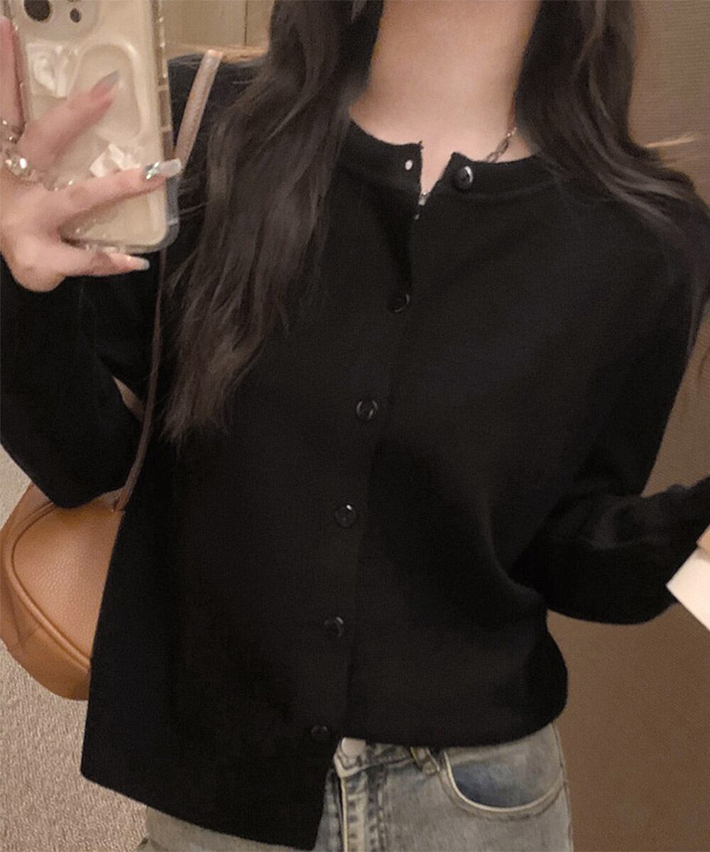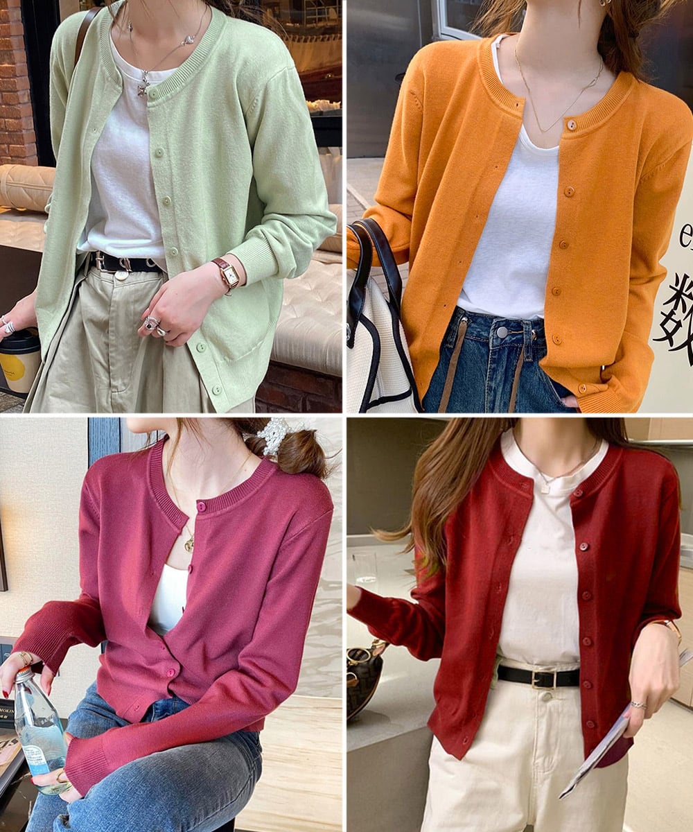 シンプルで着回し力抜群の長袖ニットカーディガン。