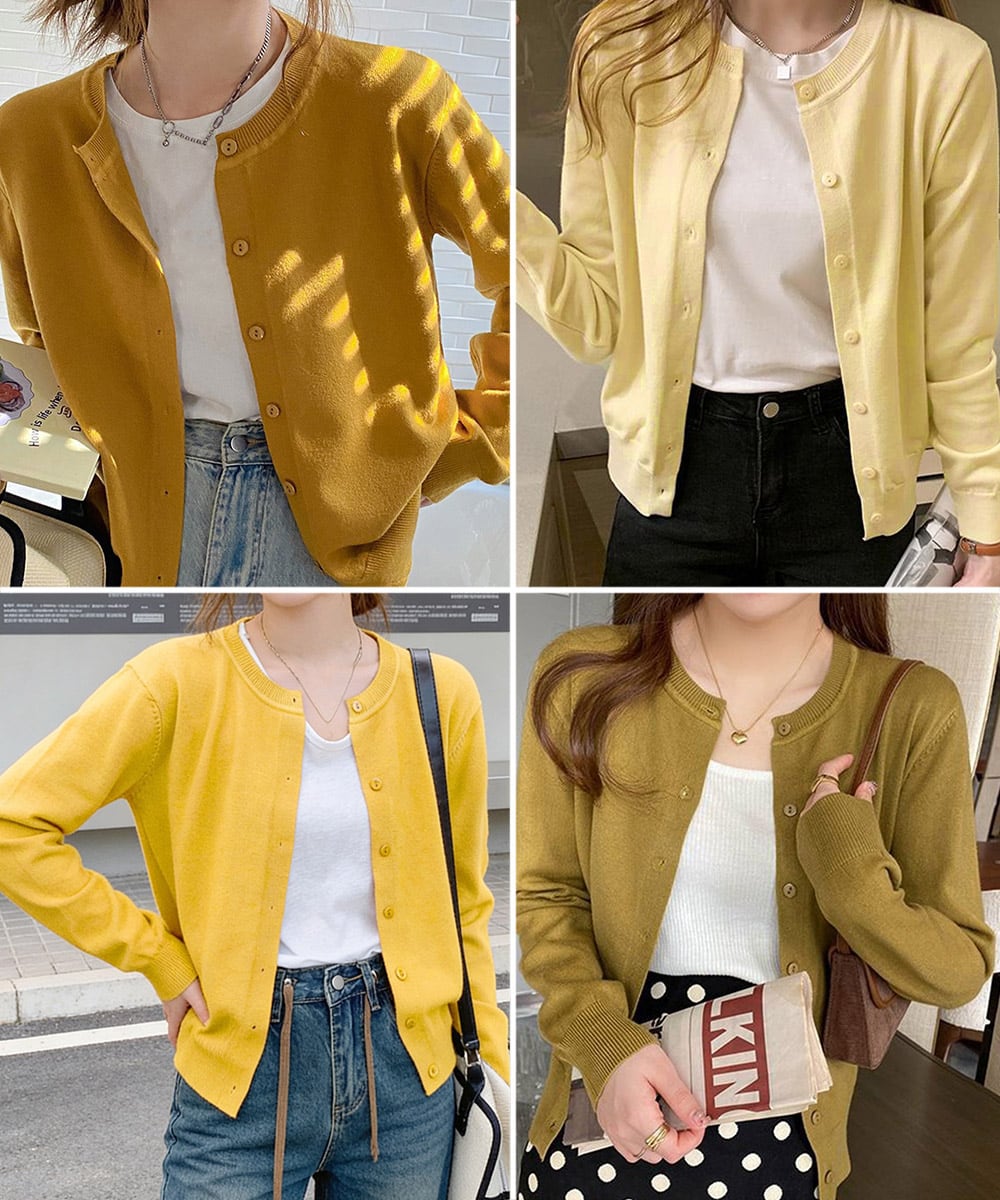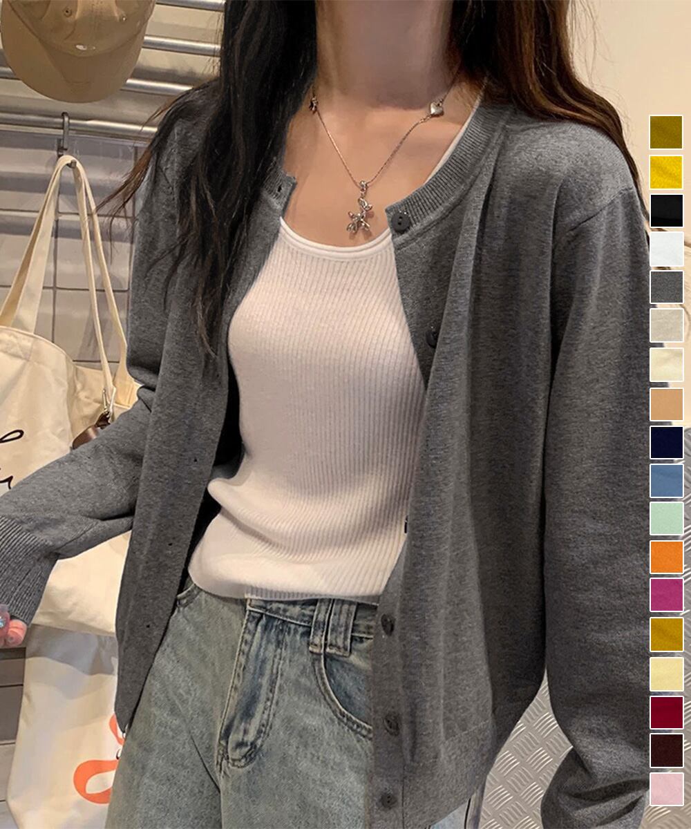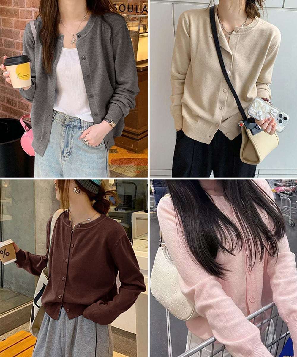 シンプルで着回し力抜群の長袖ニットカーディガン。