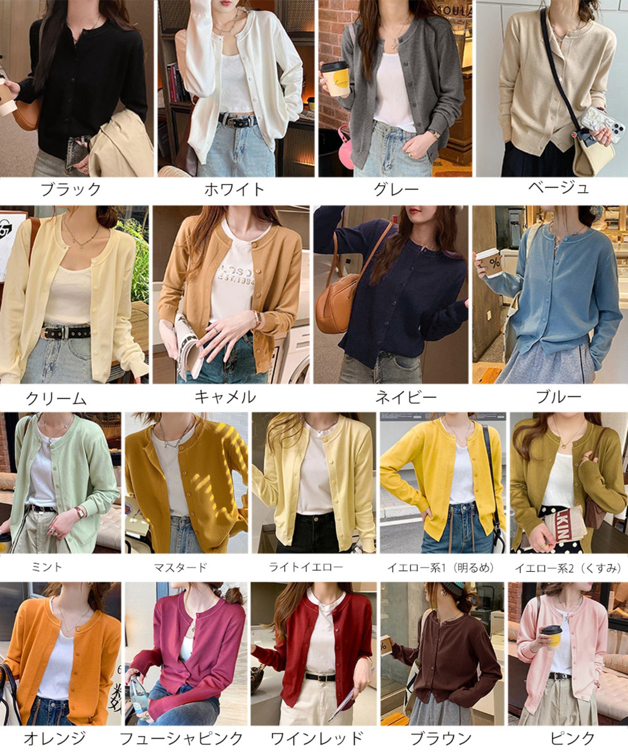 カラー:ブラック/ホワイト/グレー/ベージュ/クリーム/キャメル/ネイビー/ブルー/ミント/オレンジ/フューシャピンク/マスタード/ライトイエロー/イエロー系1(明るめ)/イエロー系2(くすみ)/ワインレッド/ブラウン/ピンク