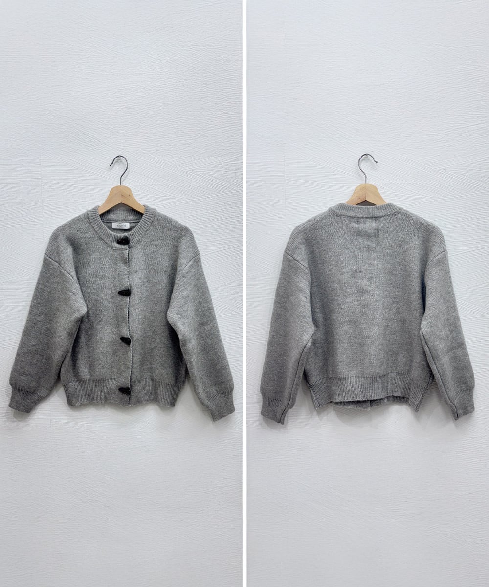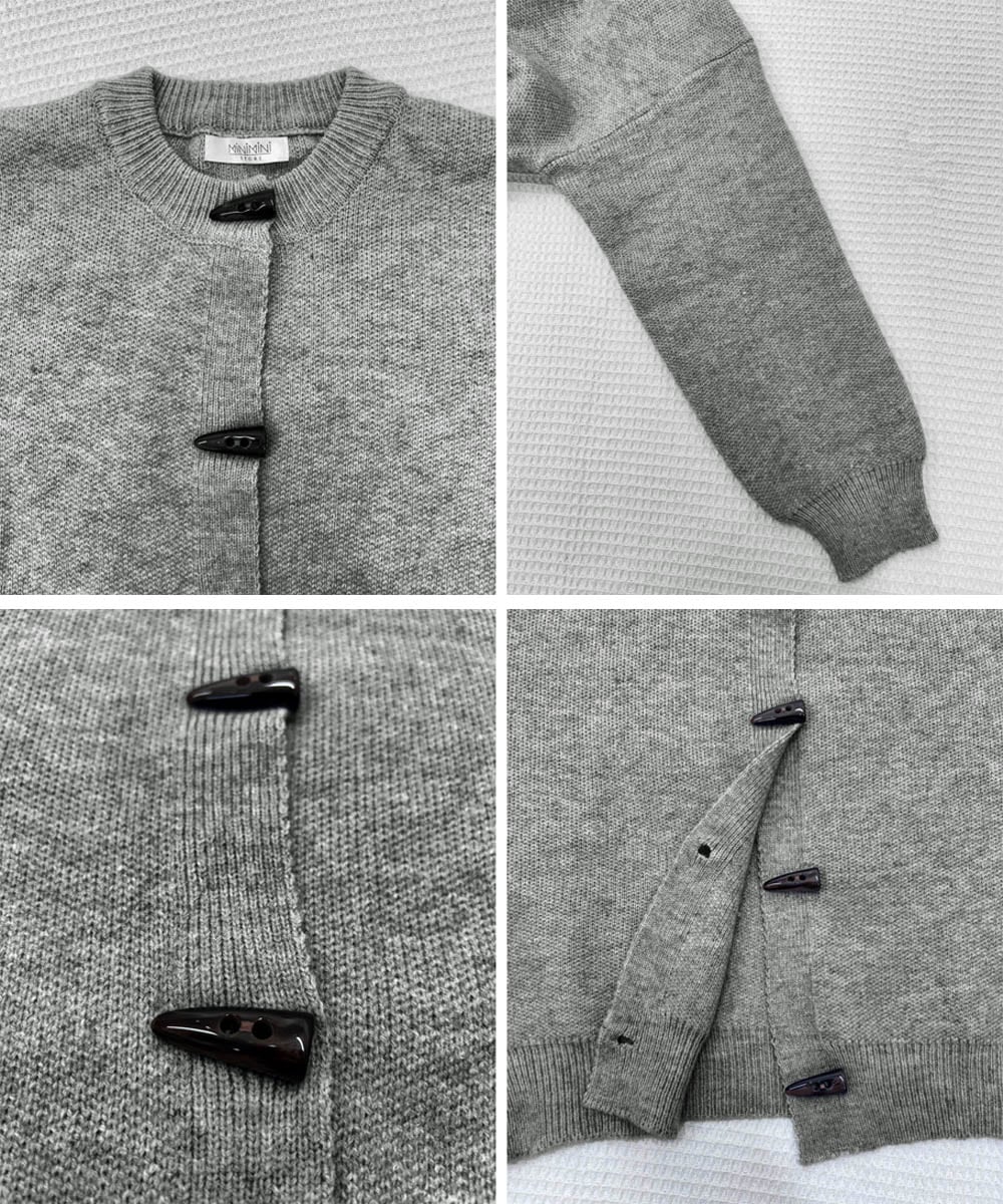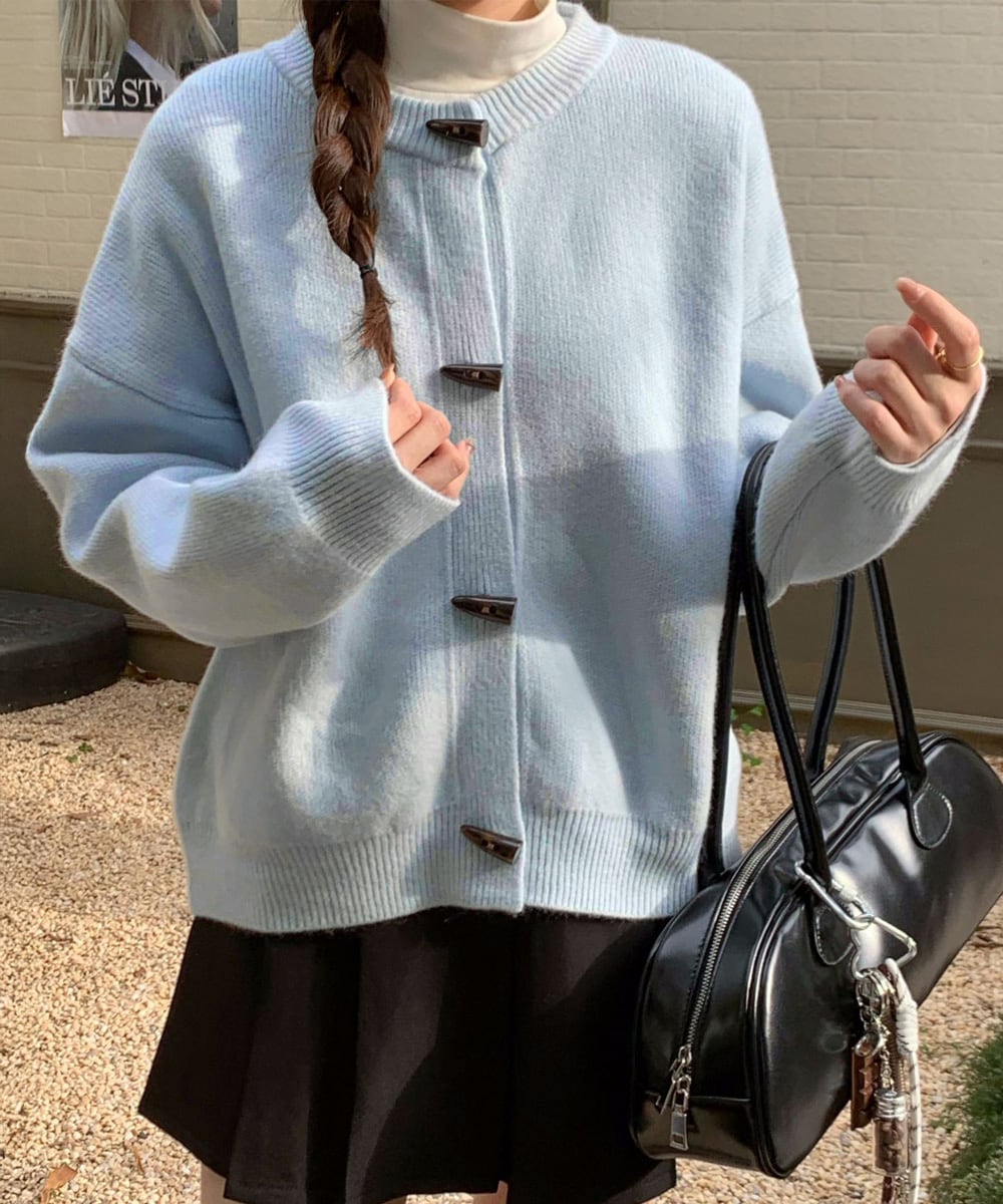 秋冬に映えるヴィンテージライクな牛角型トグルボタン付きニットカーディガン。