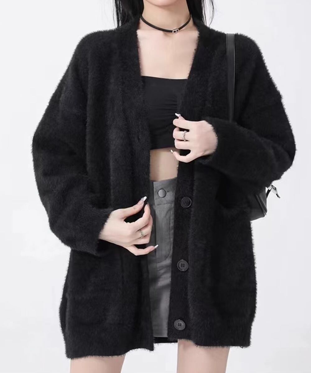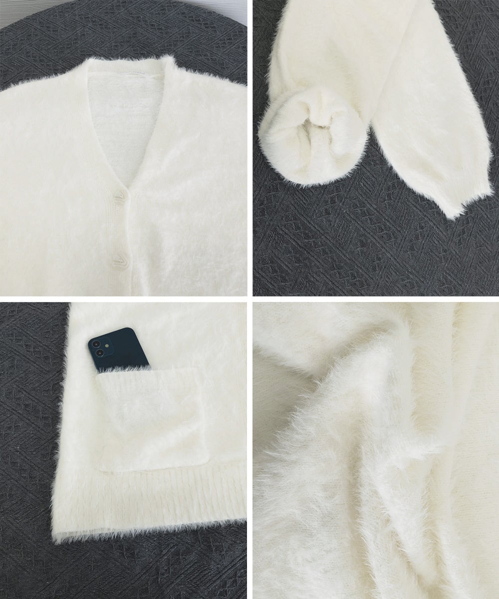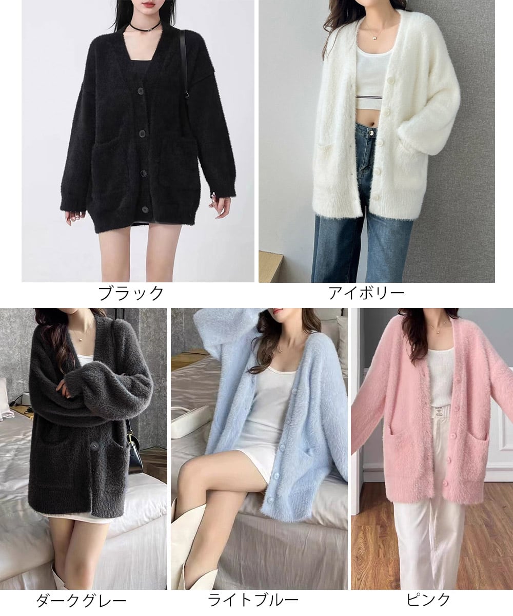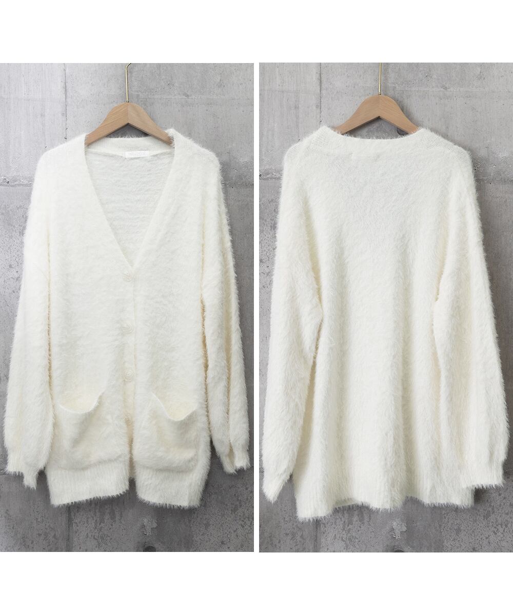 ふわふわとしたモヘアタッチ素材が魅力のオーバーサイズカーディガン。