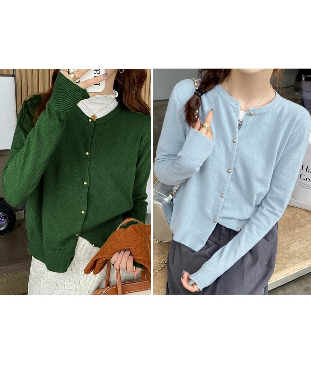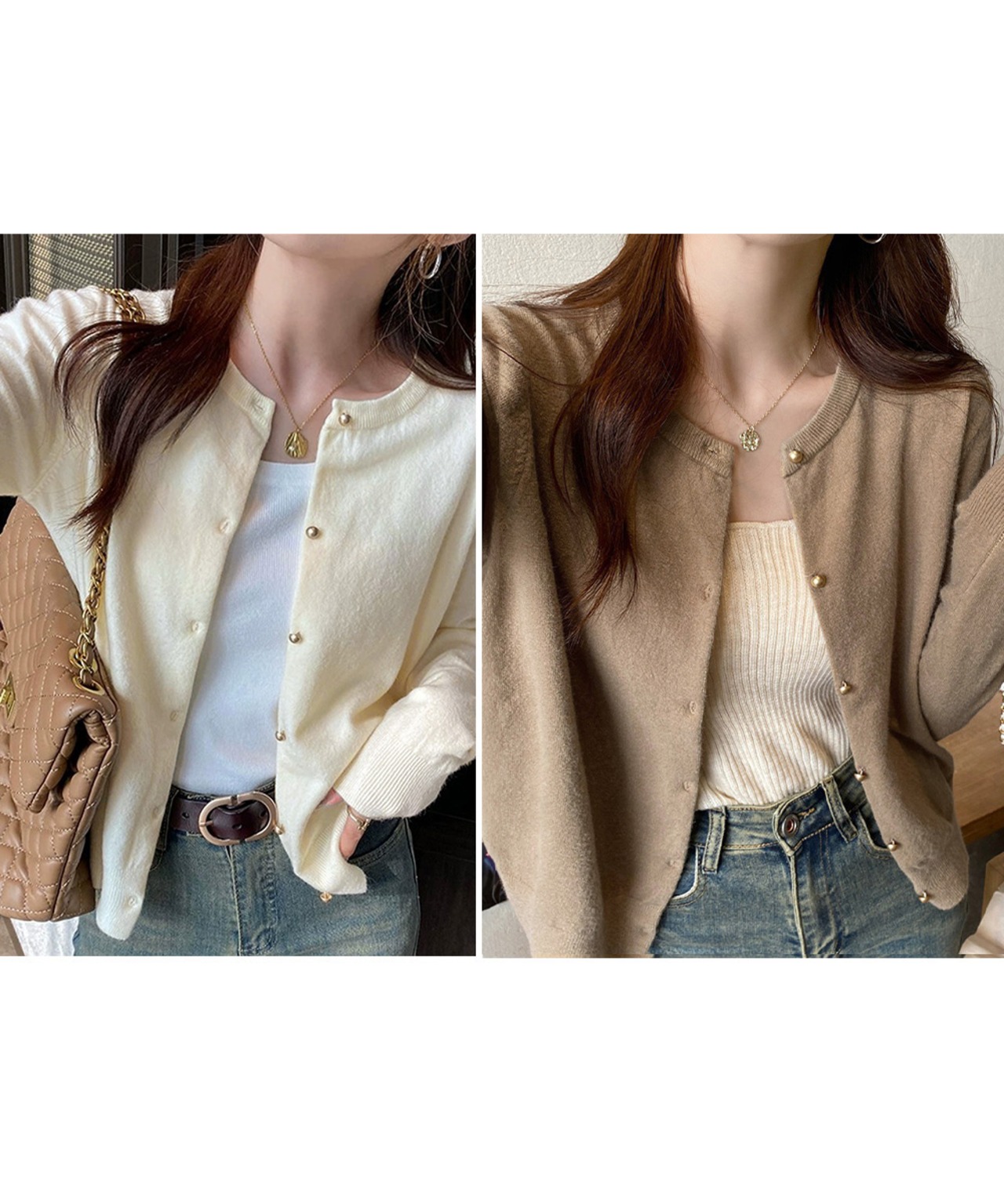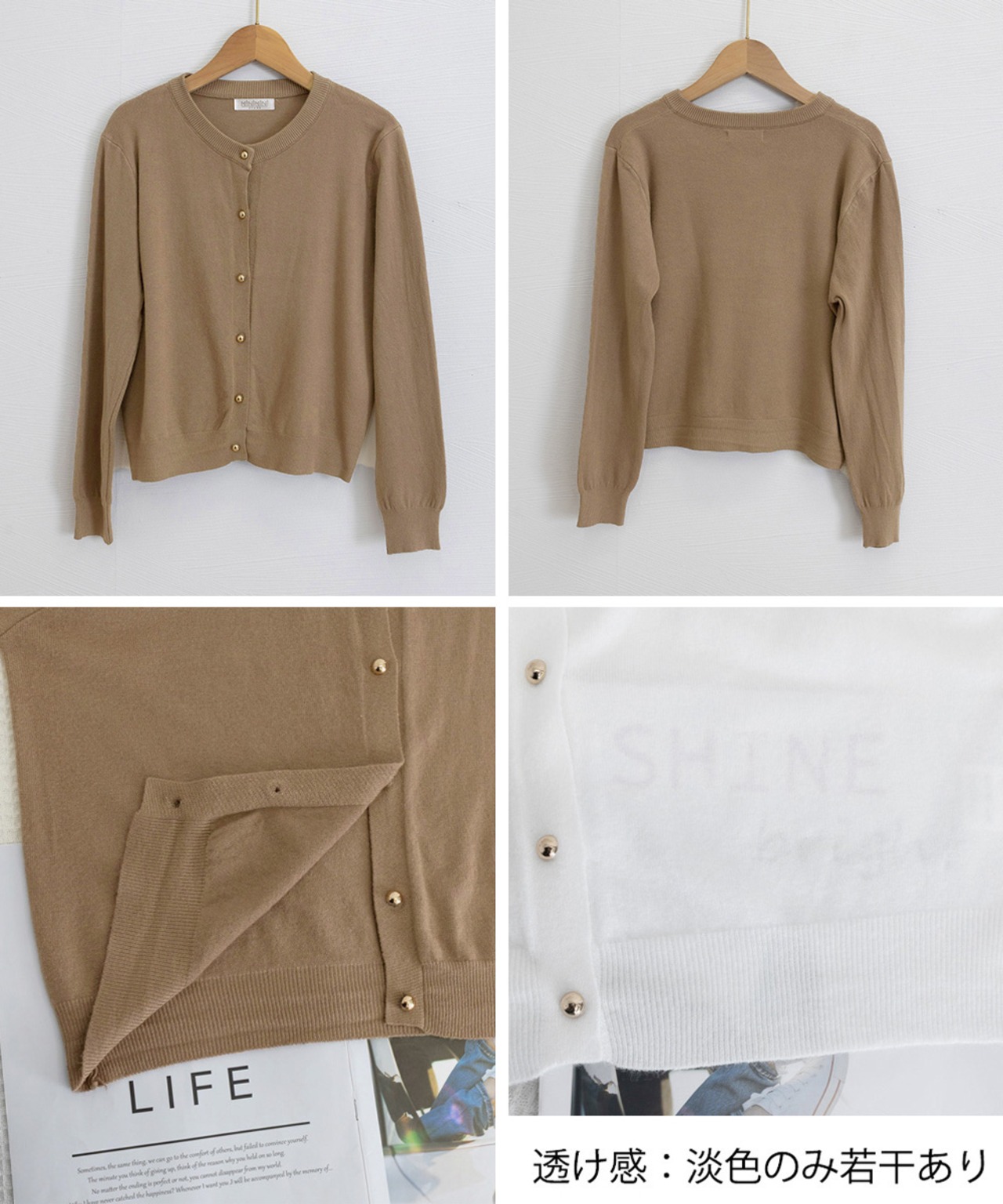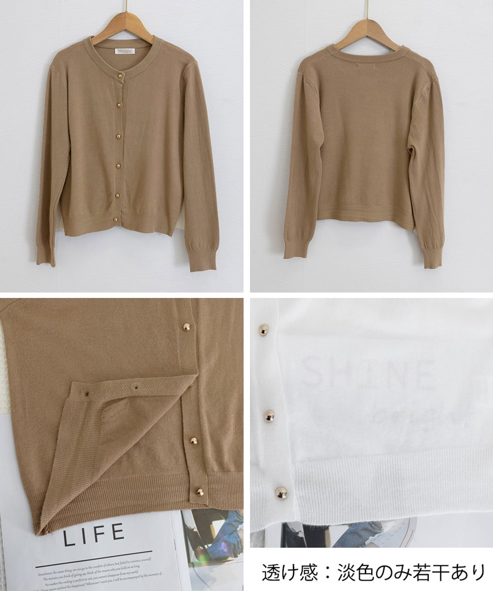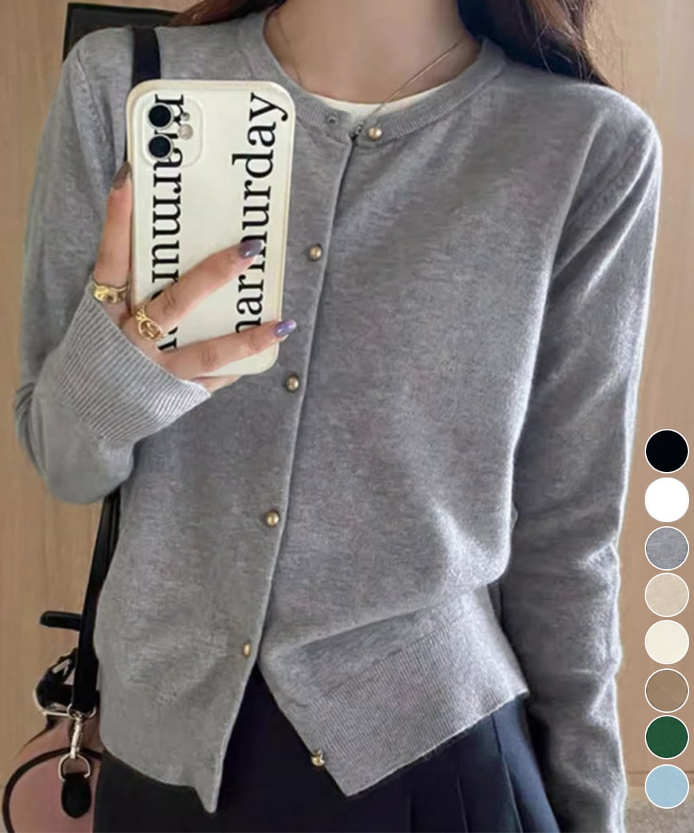 上品な印象のゴールドボタンがポイントのベーシックカーディガン。
