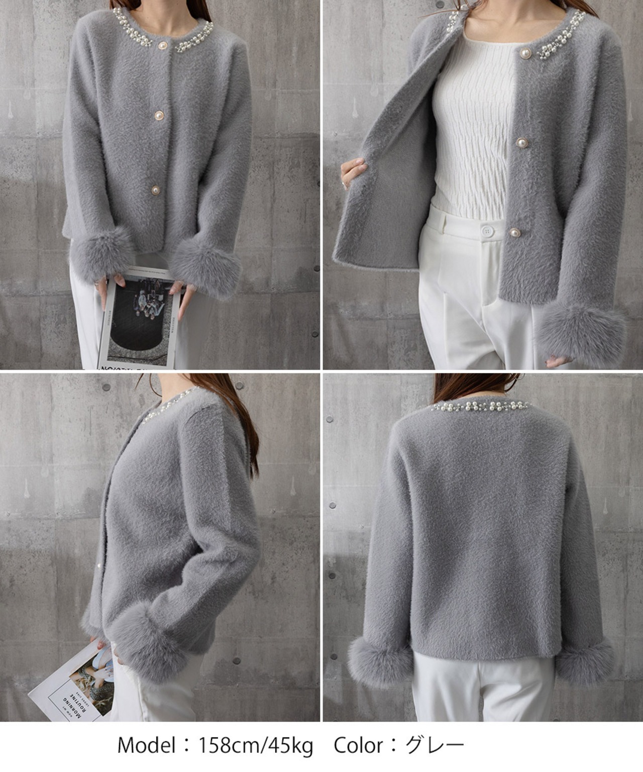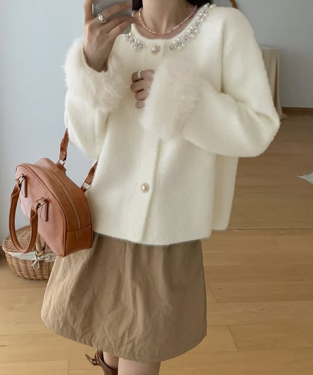モヘアニットカーディガンファージャケット