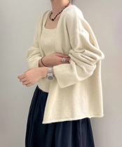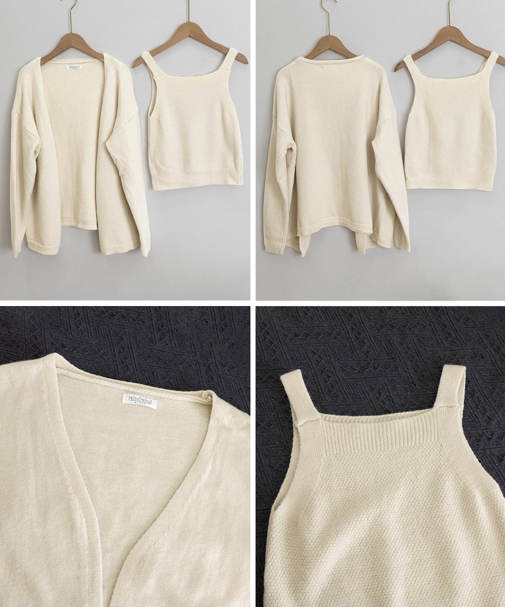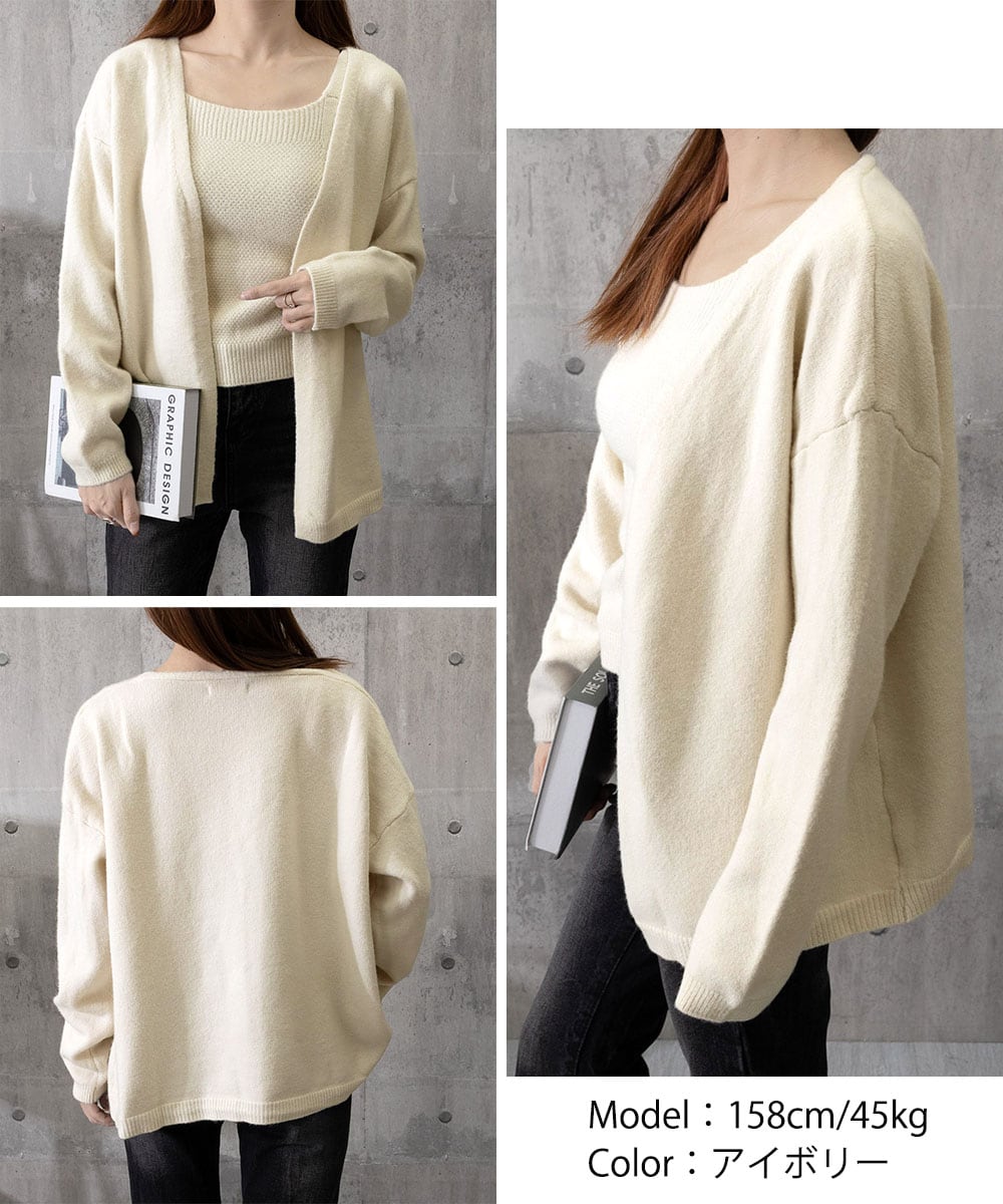 柔らかくソフトなタッチが心地よい、春秋冬のニットカーディガンとキャミソールの2点セット。