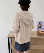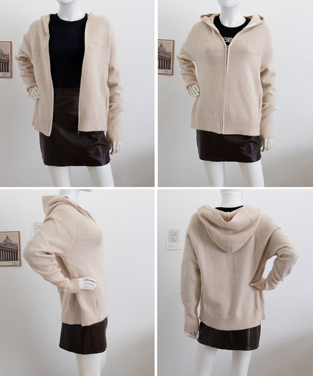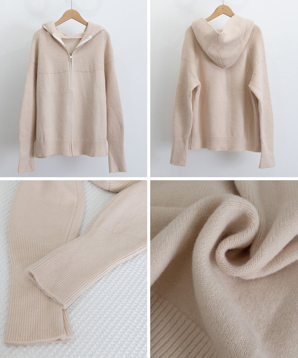 ニットジップパーカー フード付きニットカーデ 長袖ニットトップス 着回し 前開き ニットウェア ゆったり ニットアウター