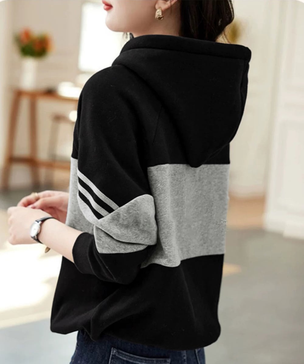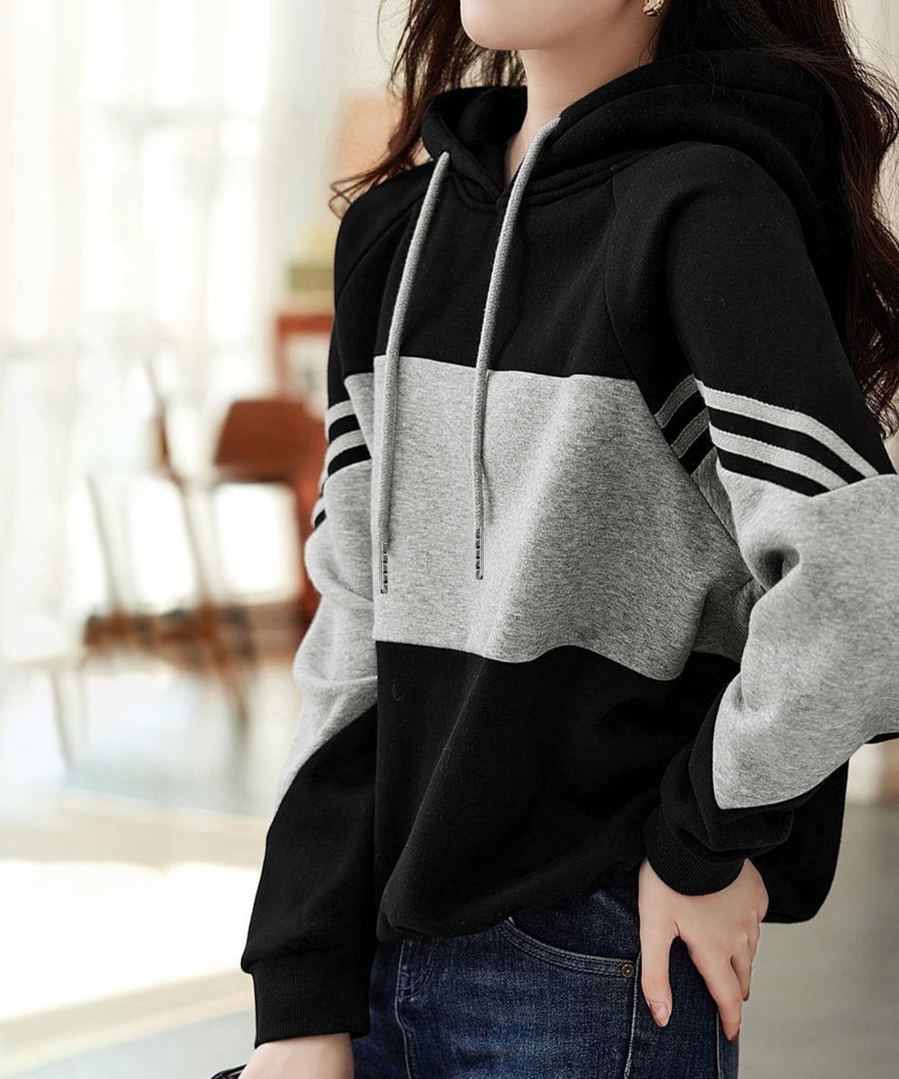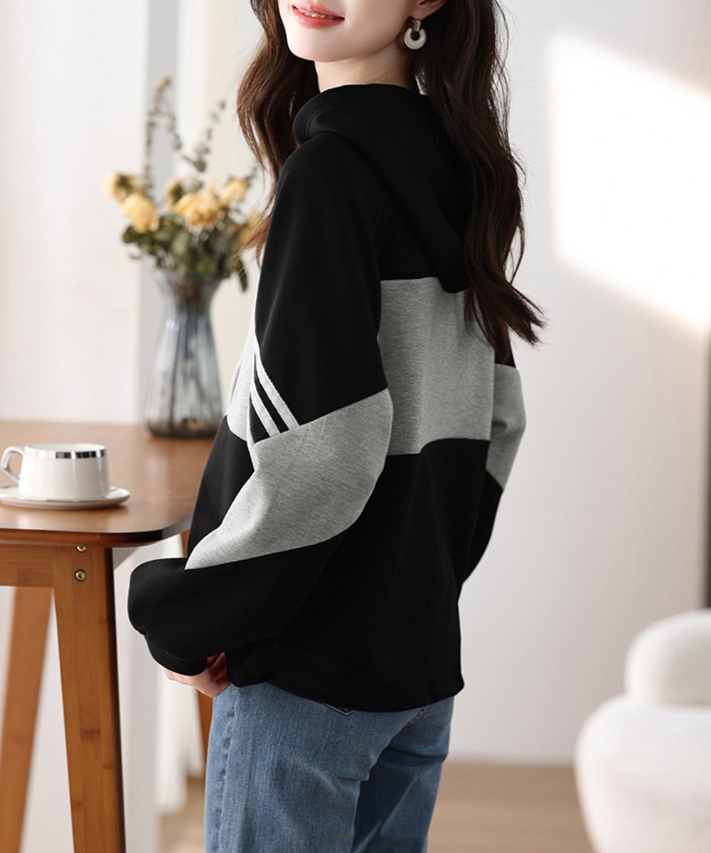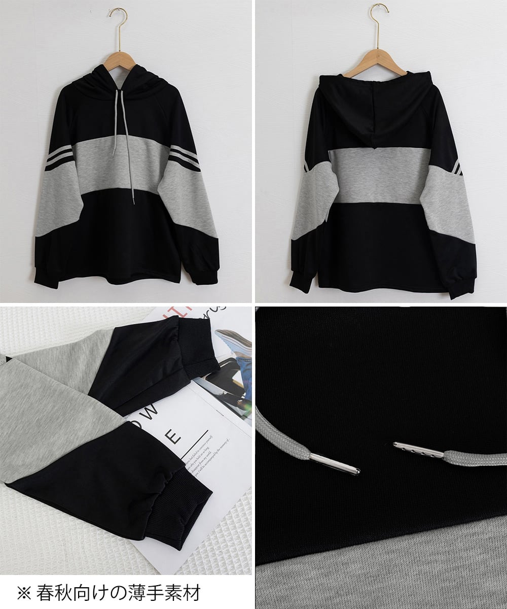 抜け感トレーナー体型カバー カジュアルトップス 大人可愛いパーカー バイカラーフーディーおしゃれ運動着 秋冬プルオーバー