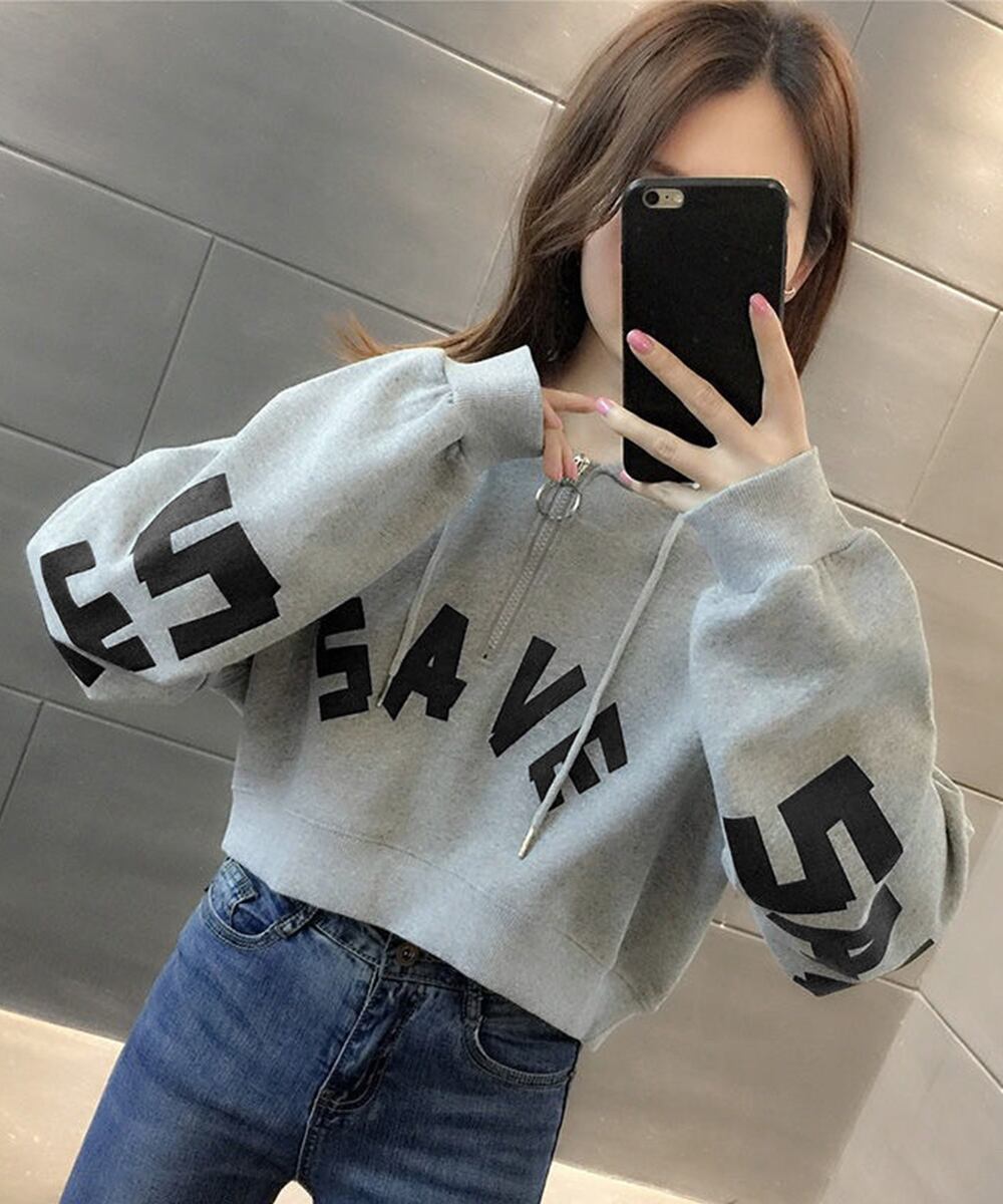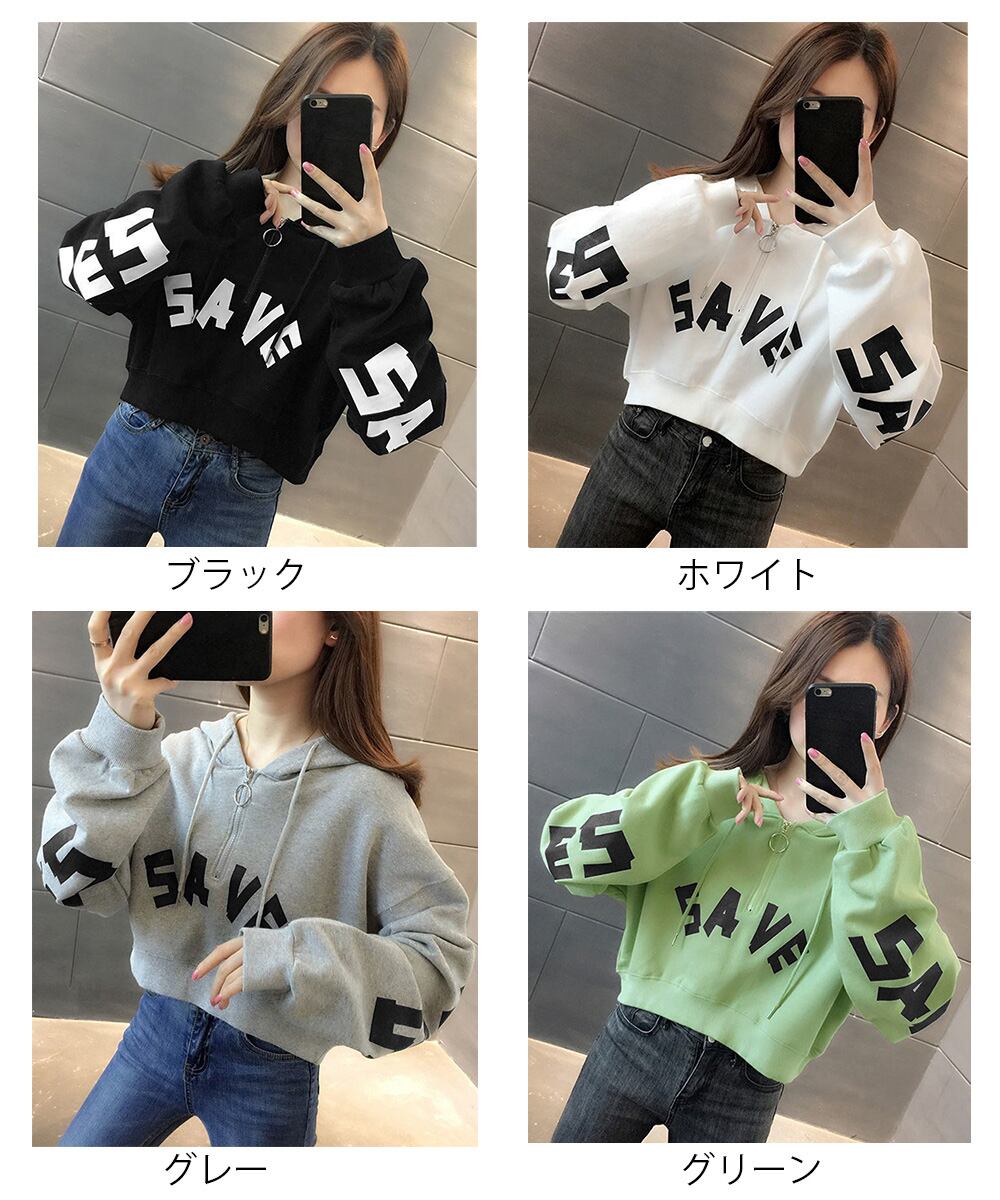 スウェットレディース ショート丈ジップパーカートレーナー クロップドプルオーバー おしゃれ 体型カバー長袖トップス着やせ