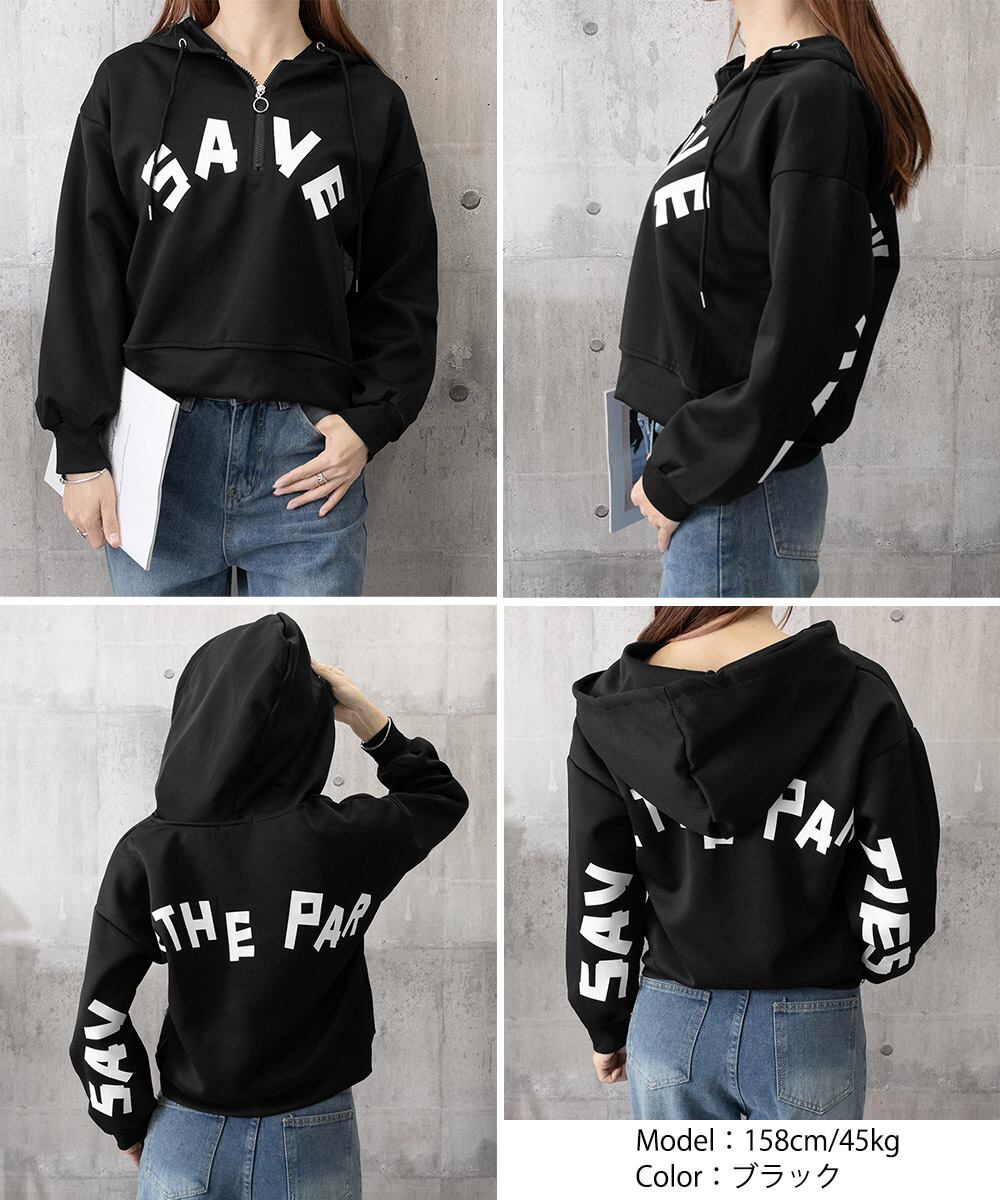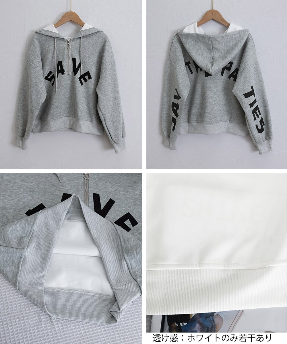 フード付きパーカーハーフジップフーディー