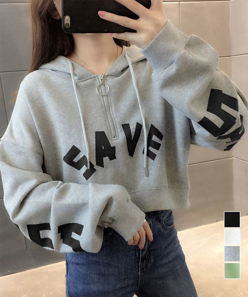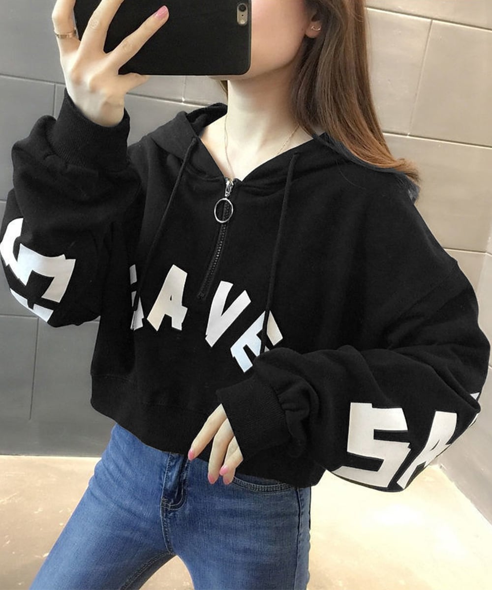 トレンド感のあるショート丈フーディ。