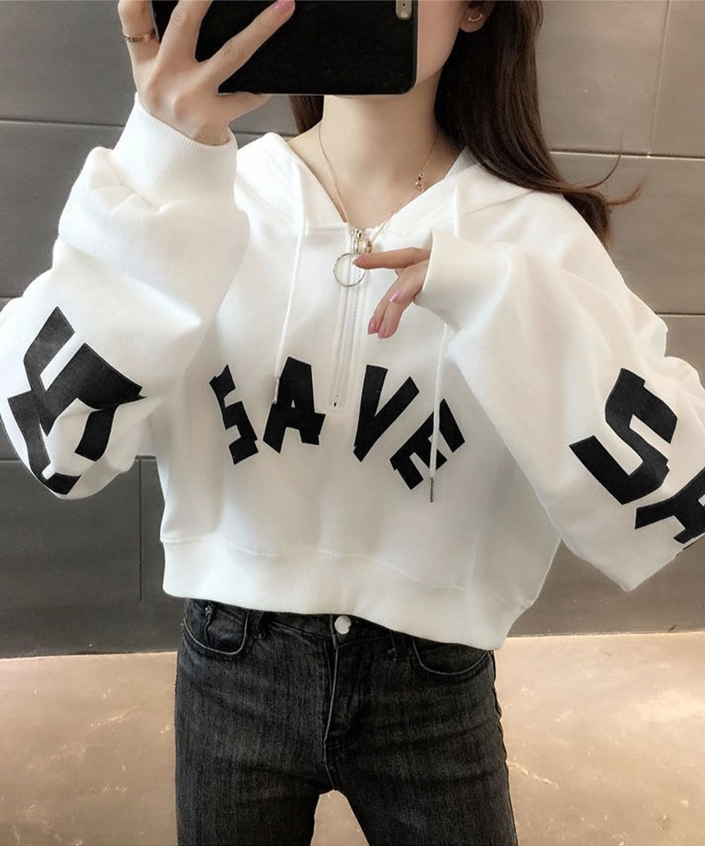 カジュアルトップス BIGロゴパーカー 韓国風秋服ゆったり