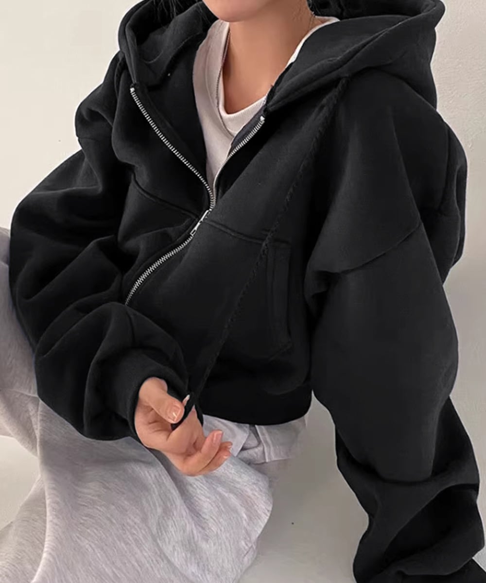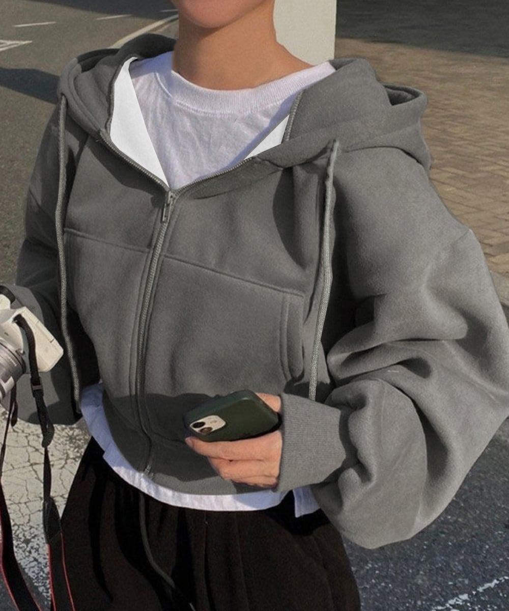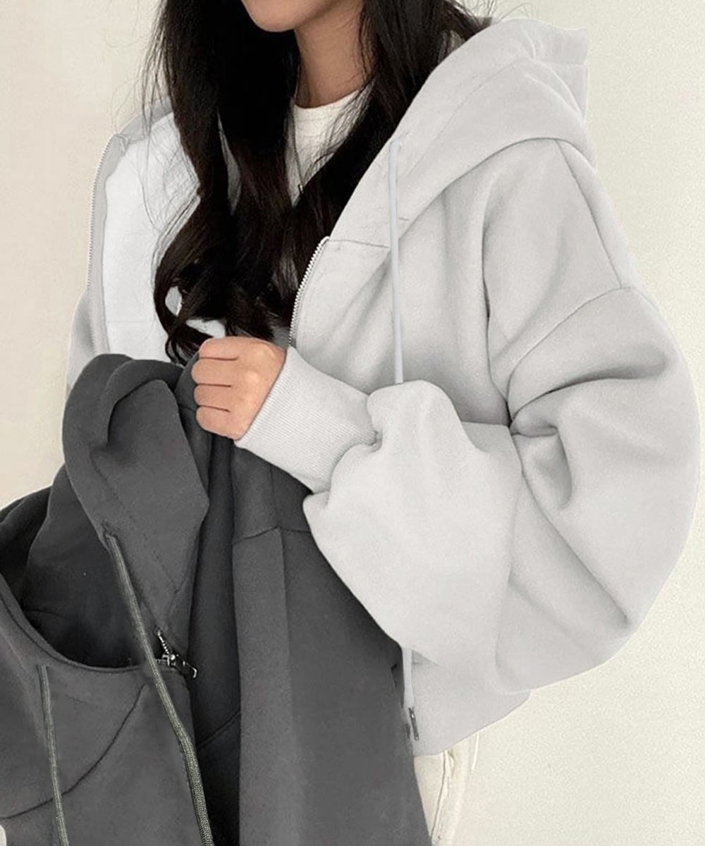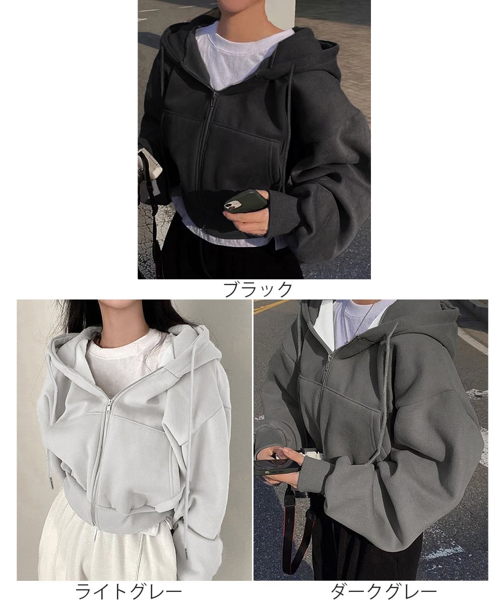 ジップパーカー裏起毛ショート丈フーディー
