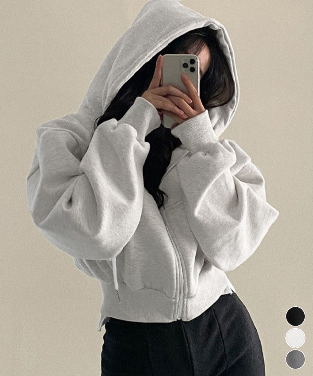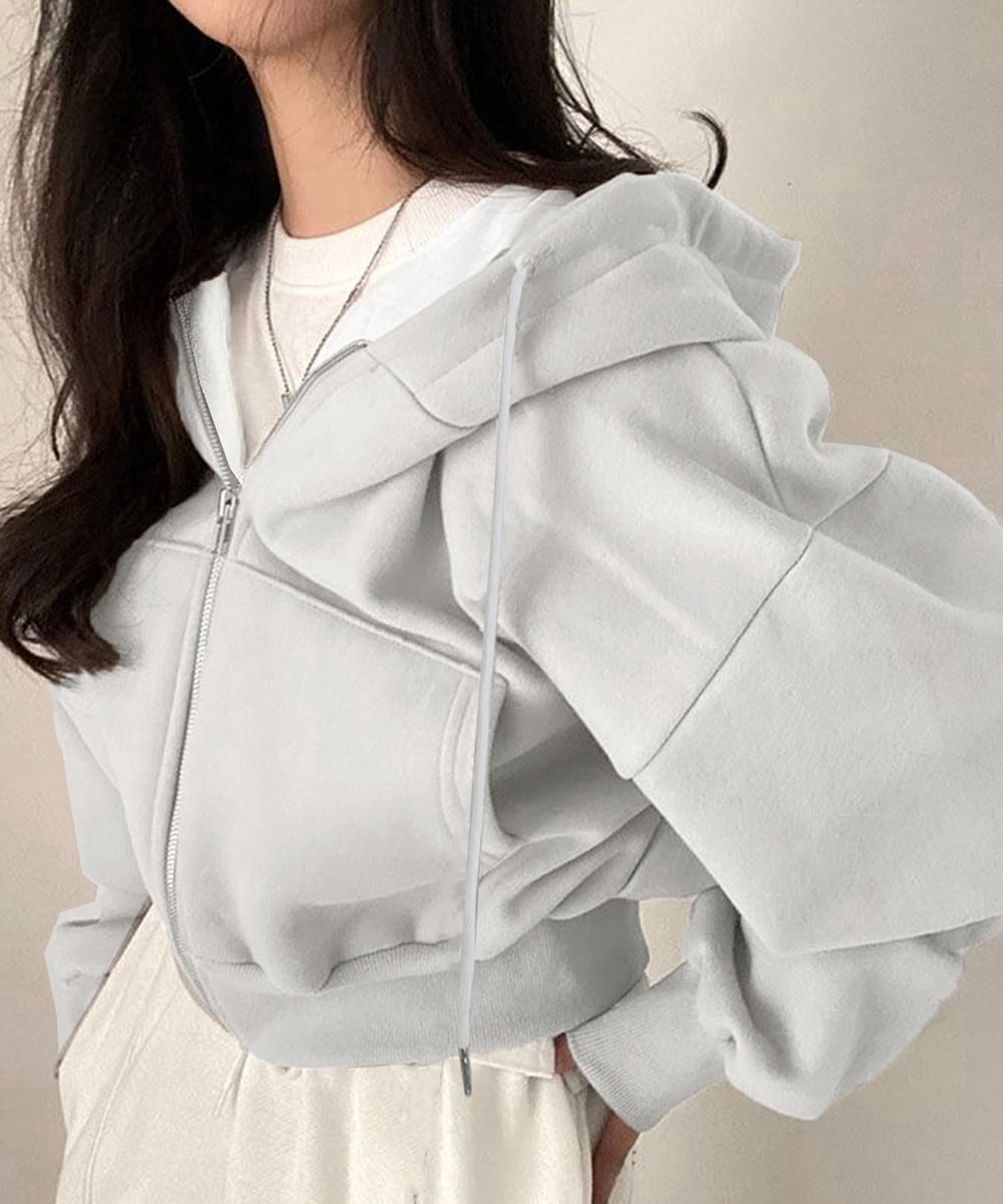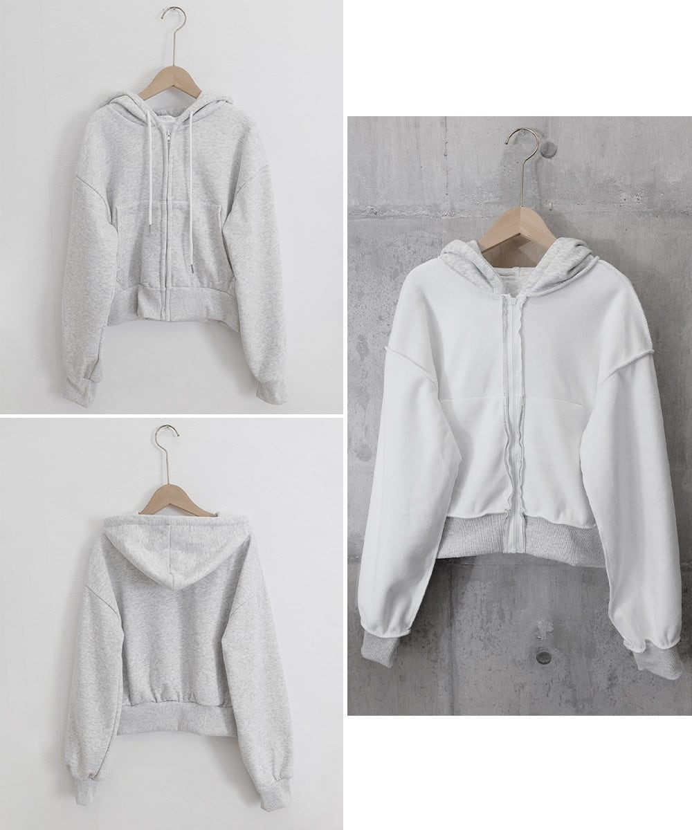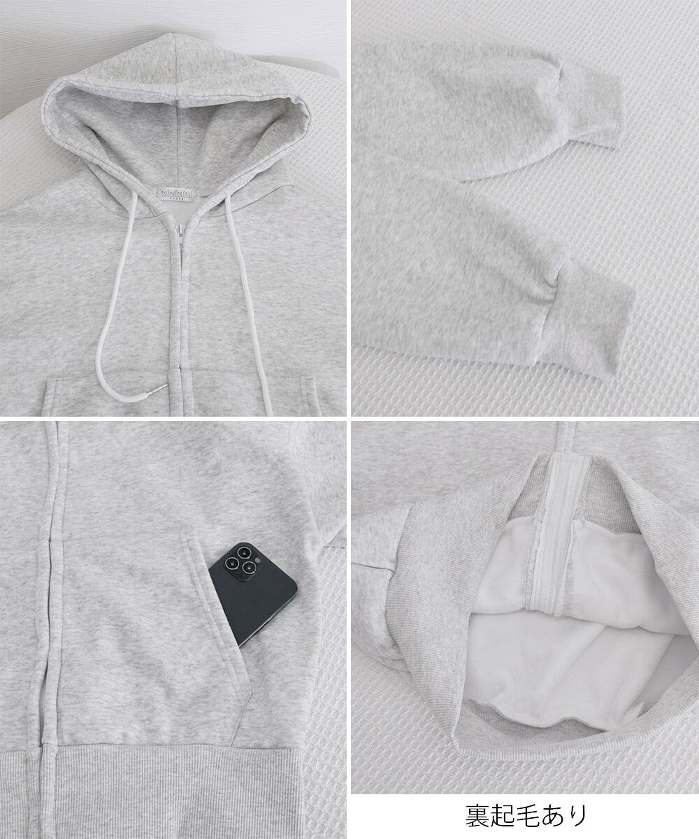 ジップパーカー裏起毛ショート丈フーディー