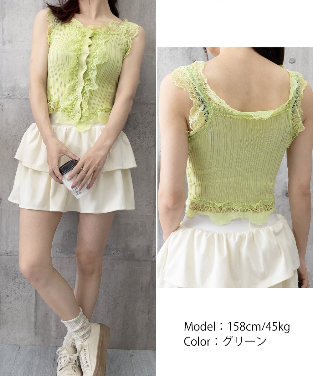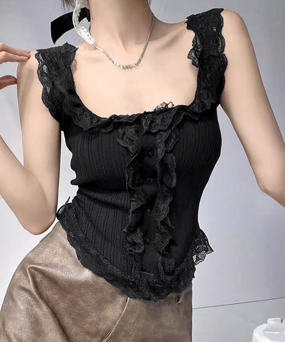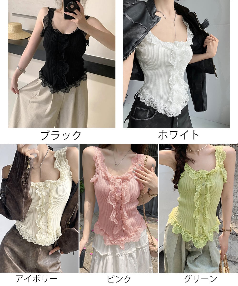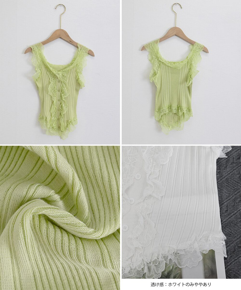 レースフリル ニットタンクトップ 韓国風