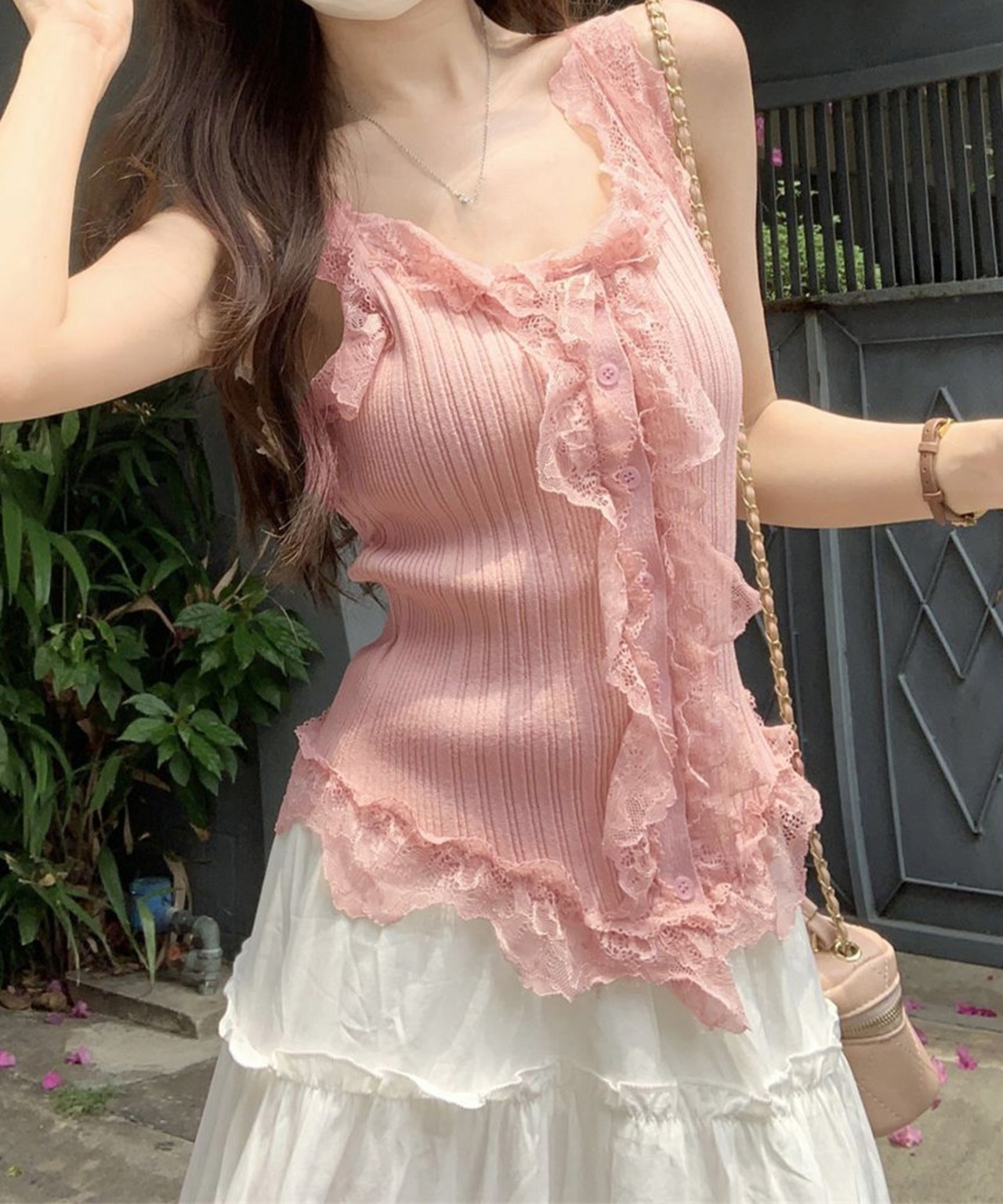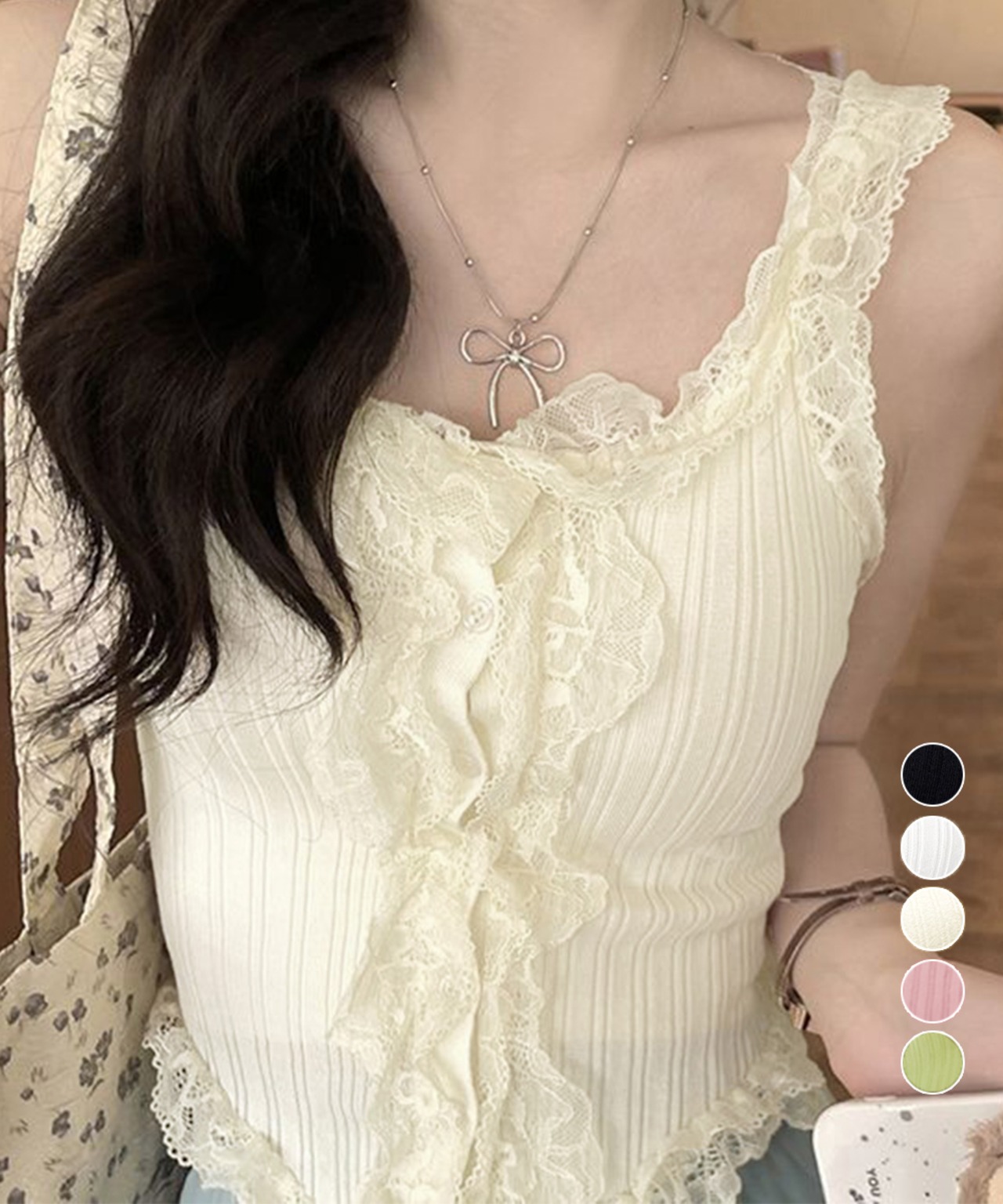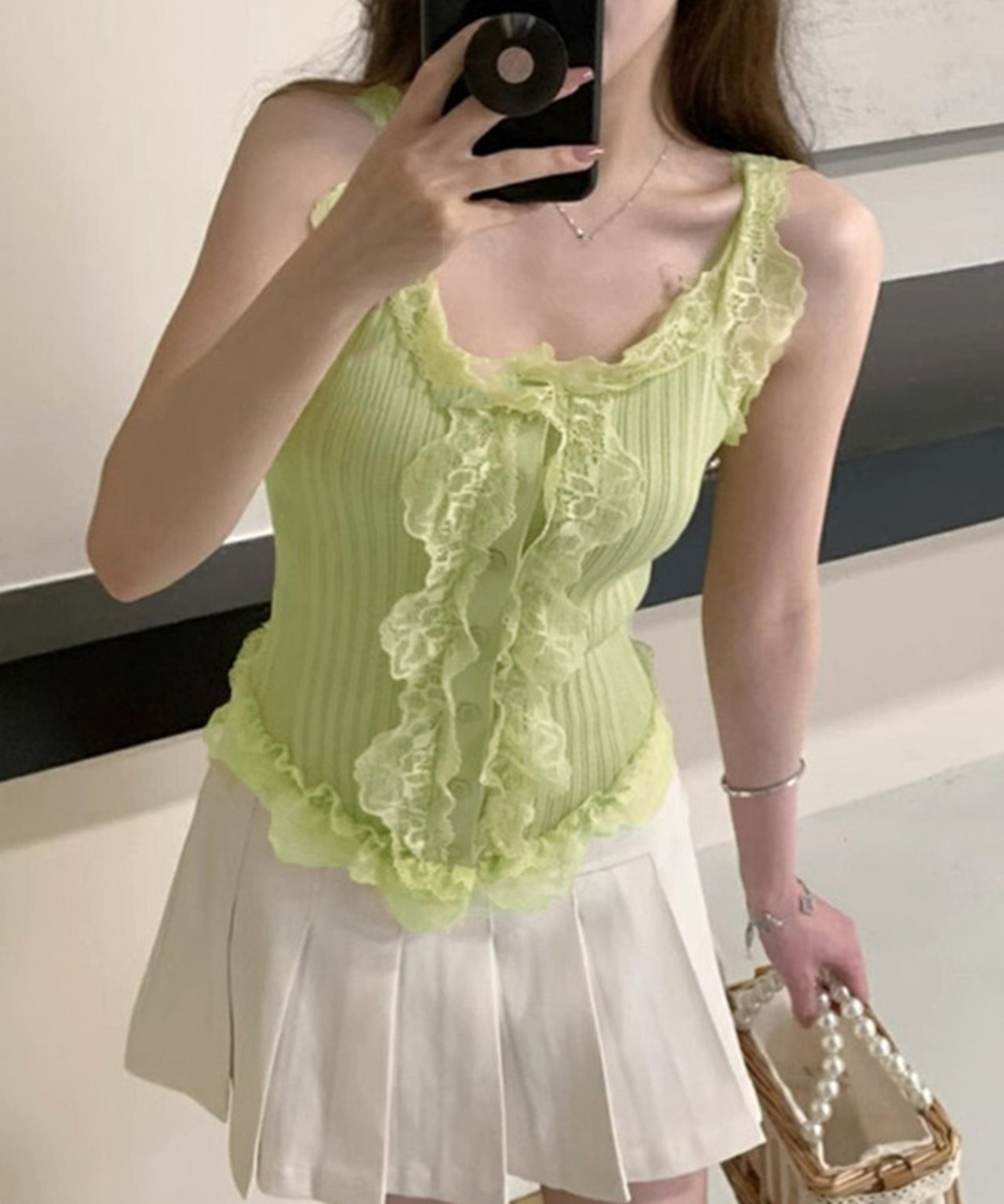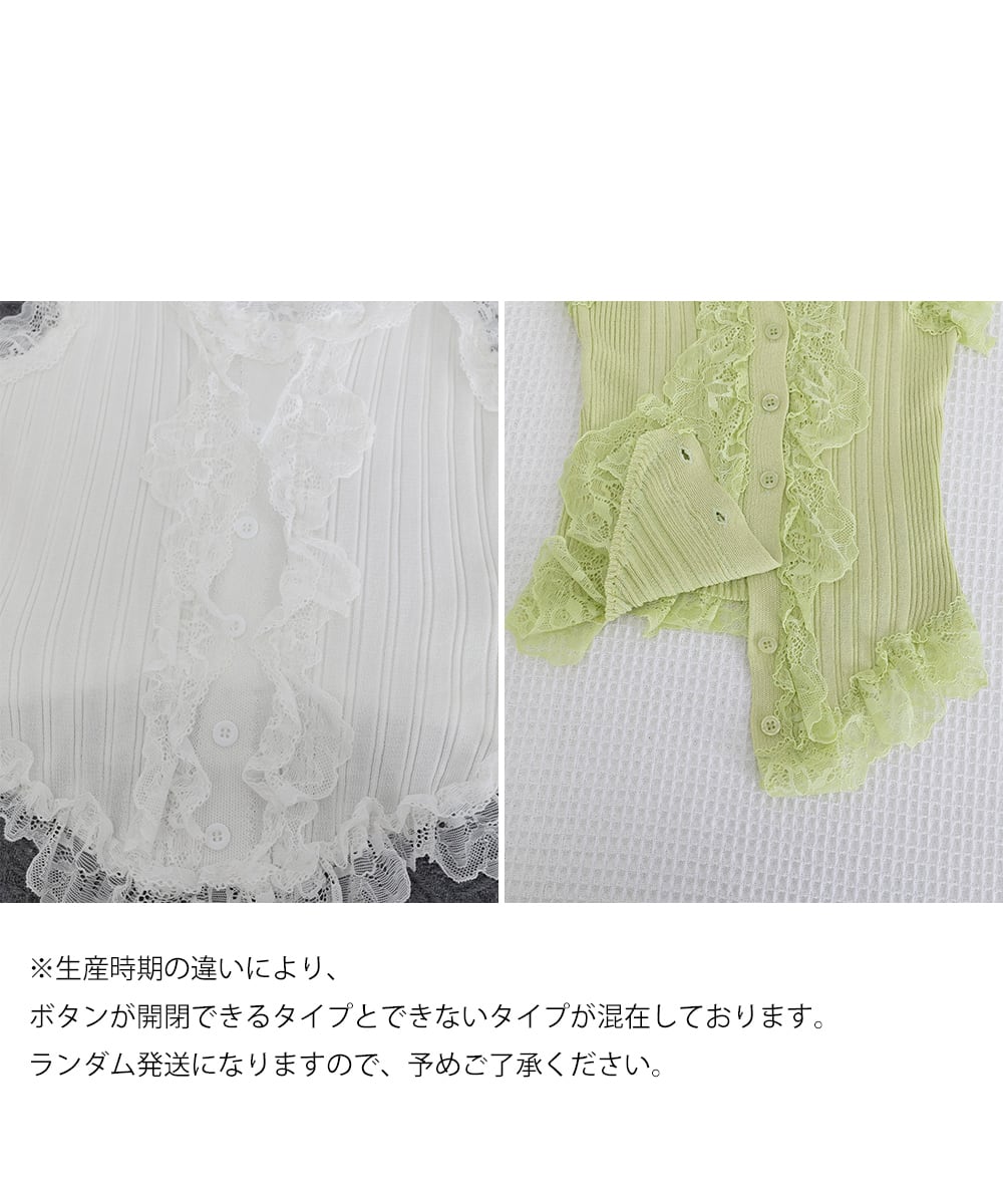 レースフリル ニットタンクトップ 韓国風