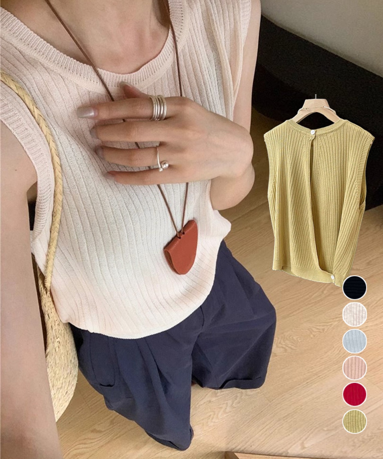 サマーニットタンクトップ 背中開き 夏服