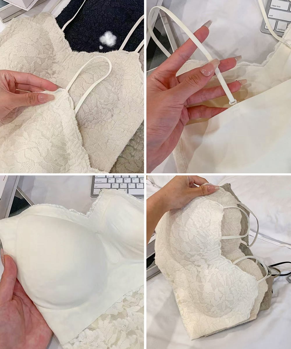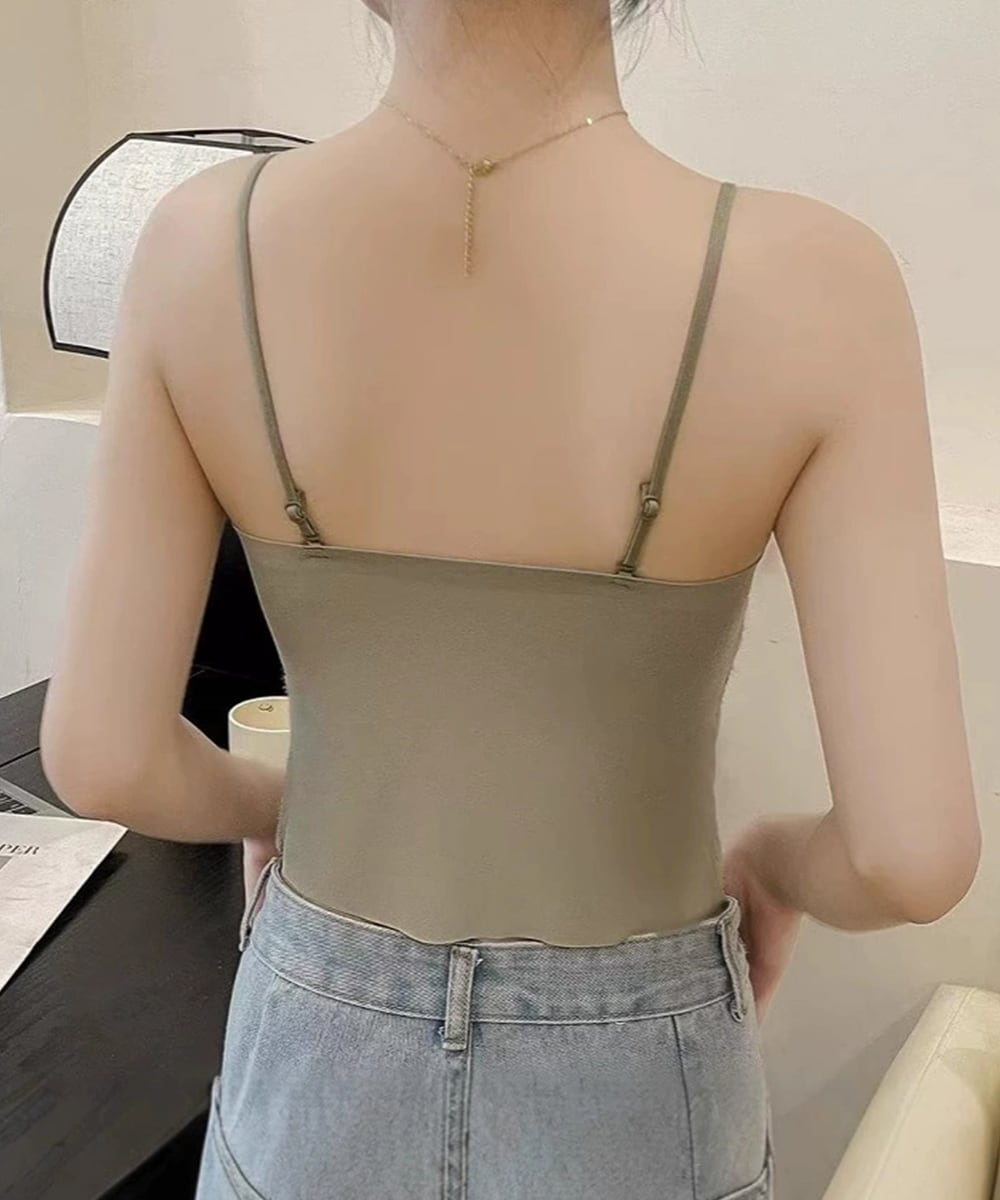 レディース ノンワイヤーブラキャミ 締め付けない ショート丈肌着 美背美胸 セクシーインナー 細肩紐キャミソール 韓国風