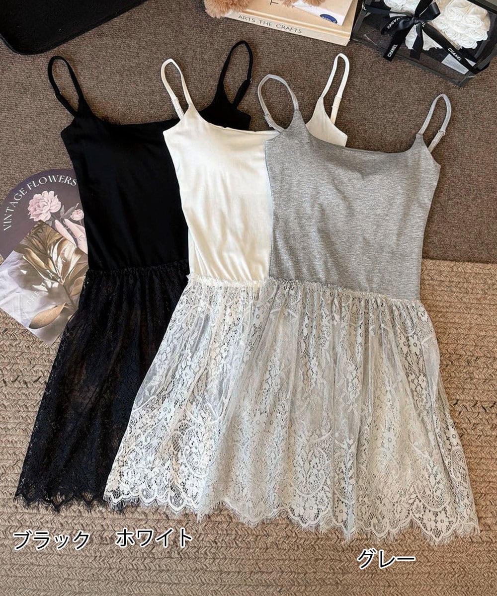 韓国っぽいムードが漂う、背中開きレースドッキングキャミソール。