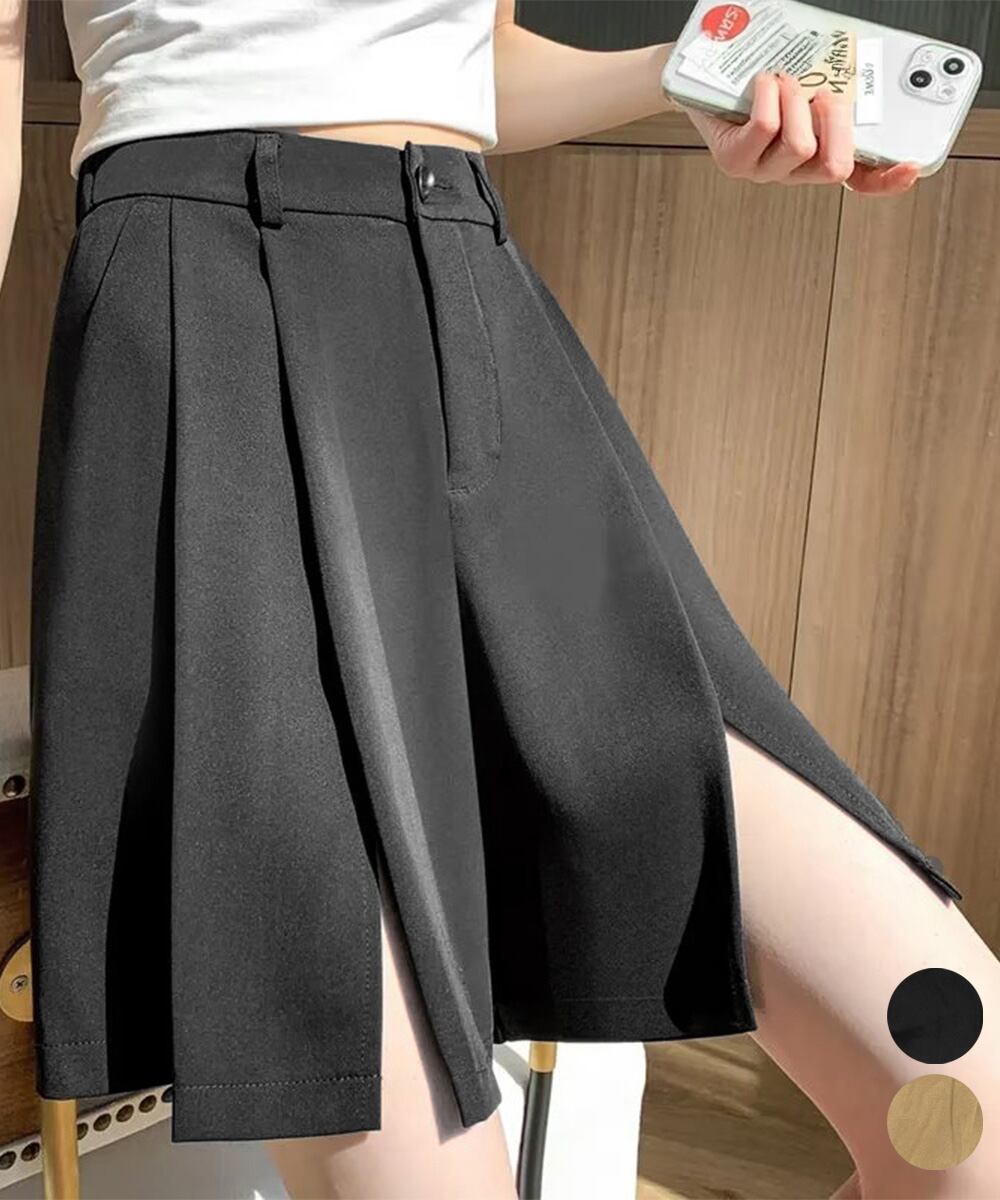 夏にぴったりなハイウエストのAラインシルエットのスーツ風ショートパンツ。