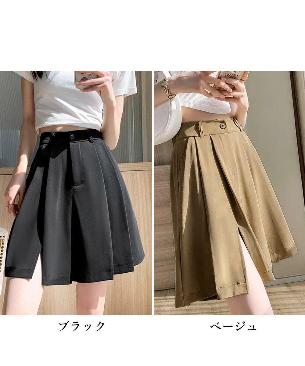 体型カバー ハーフパンツ着やせ プリーツショーパン 春夏きれいめ 通勤タックパンツ涼しい薄手キュロットパンツ バックゴム