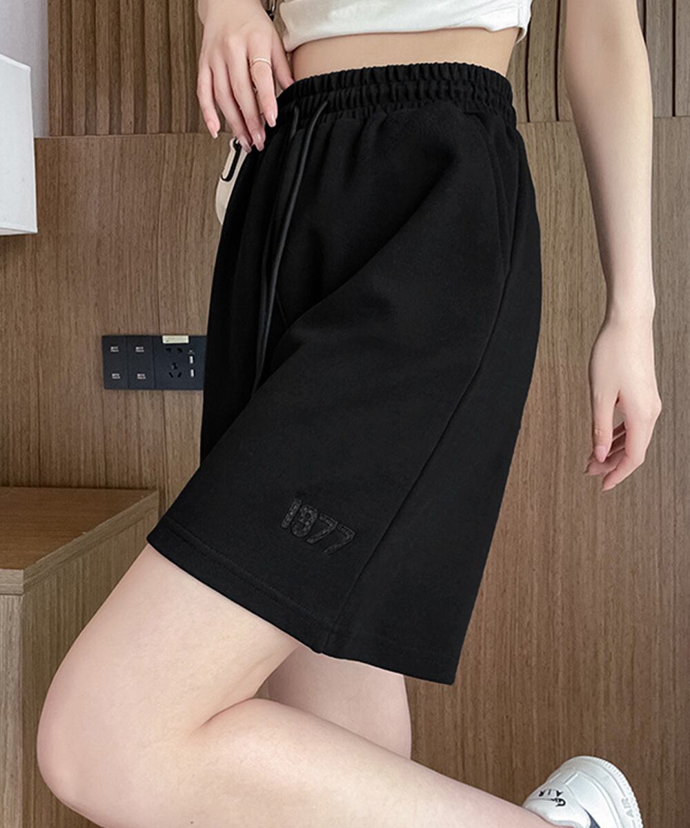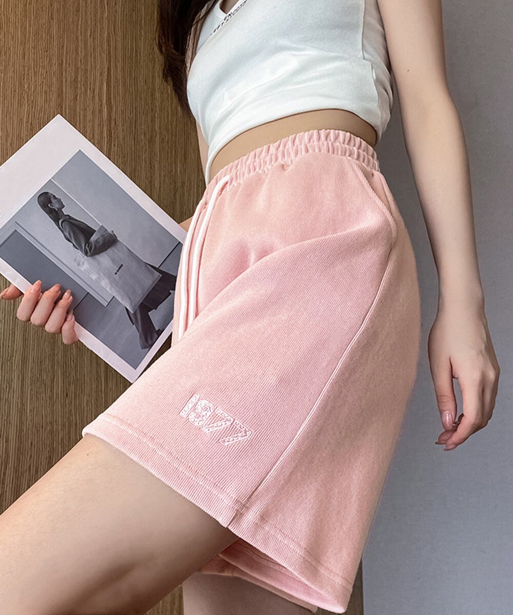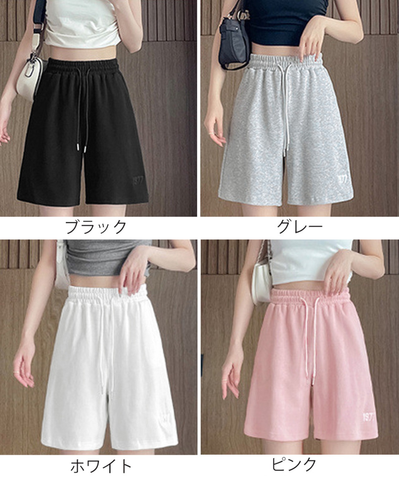 レディース ウエストゴムスポーツパンツ ハイウエスト 五分丈ボトムス 体型カバーロゴショーパン 20代30代40代 夏服