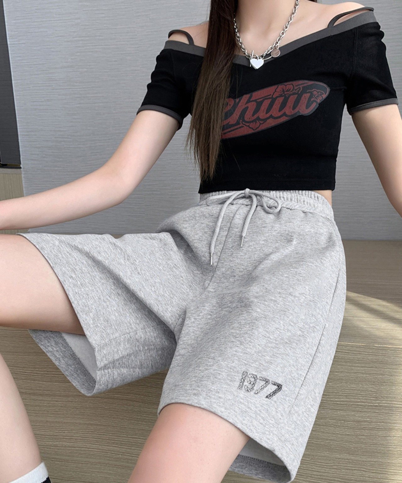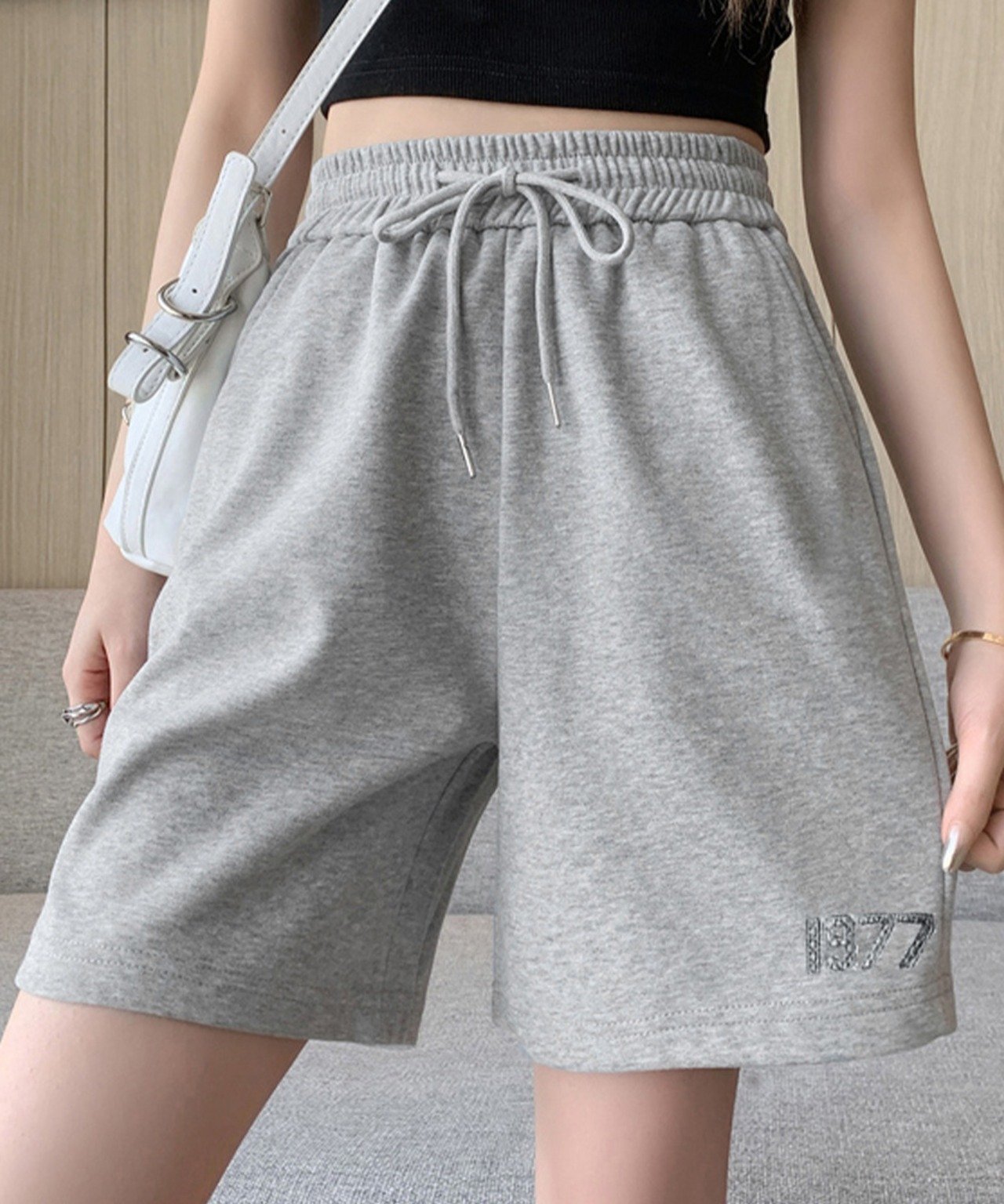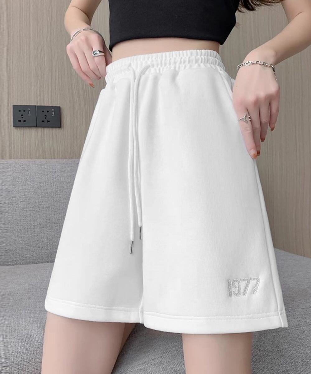 レディース ウエストゴムスポーツパンツ ハイウエスト 五分丈ボトムス 体型カバーロゴショーパン 20代30代40代 夏服