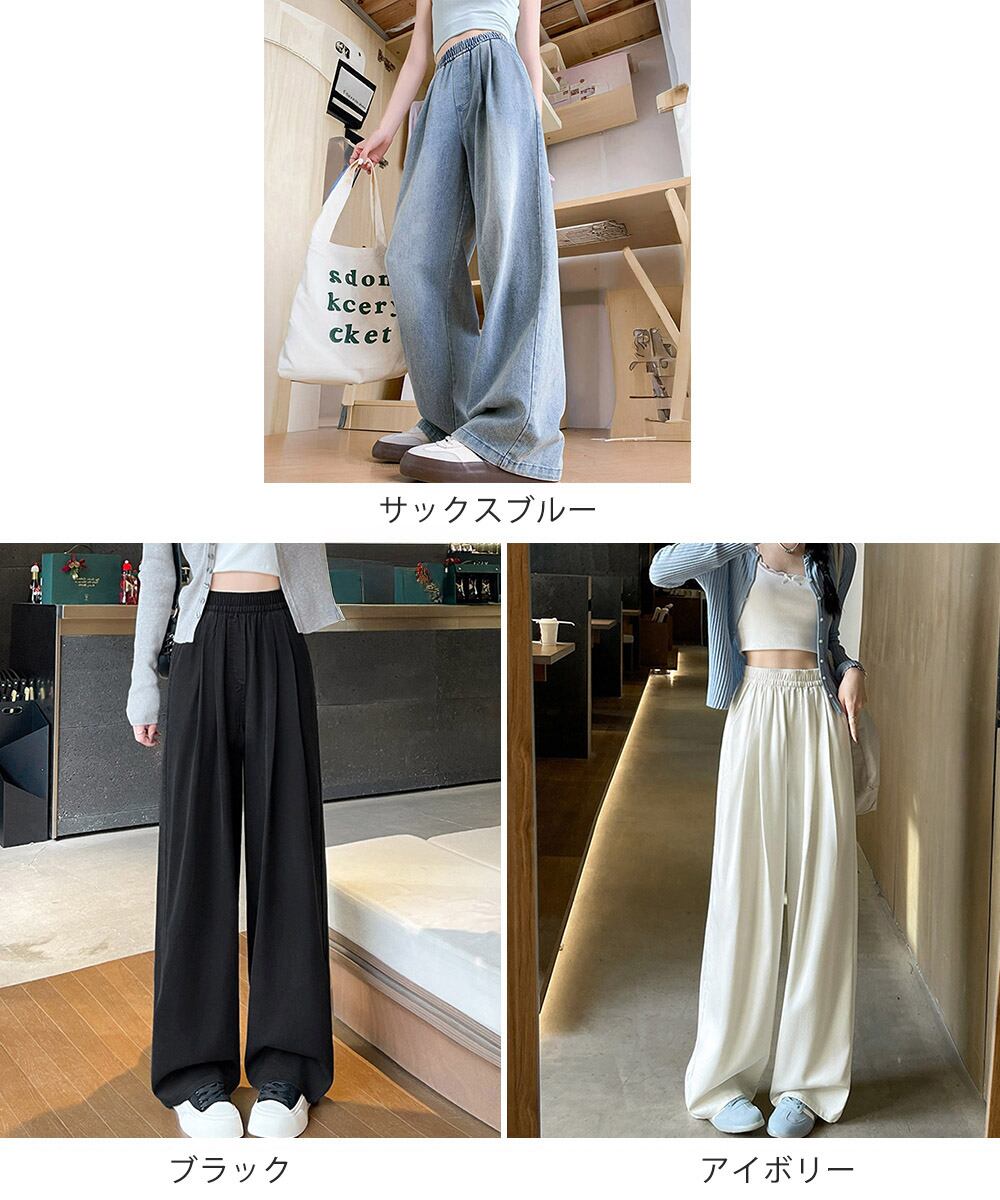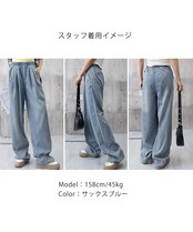 美脚デニム風ワイドパンツタック入りパンツ