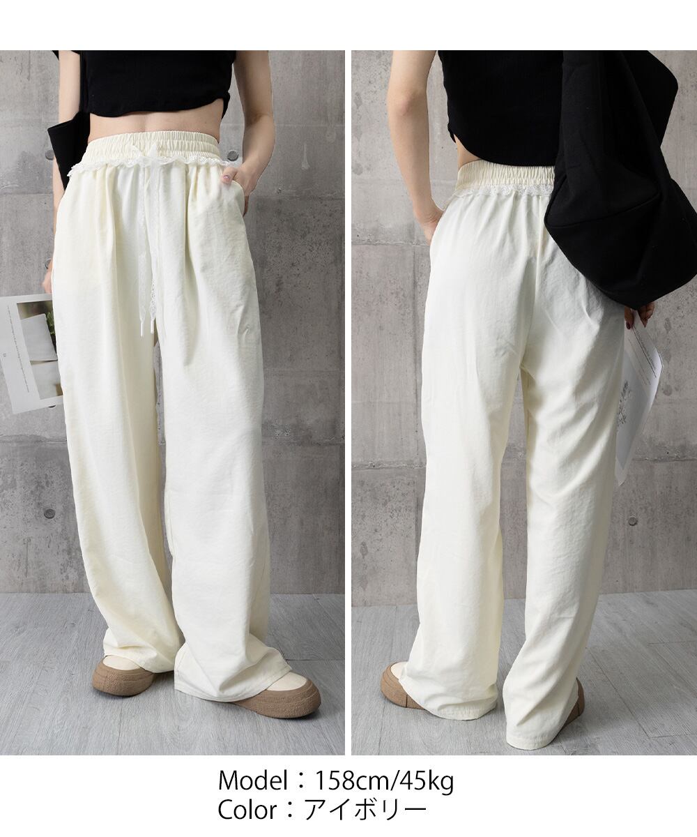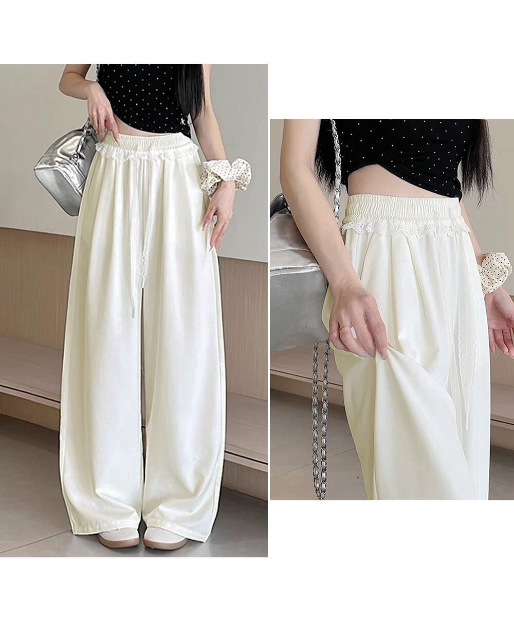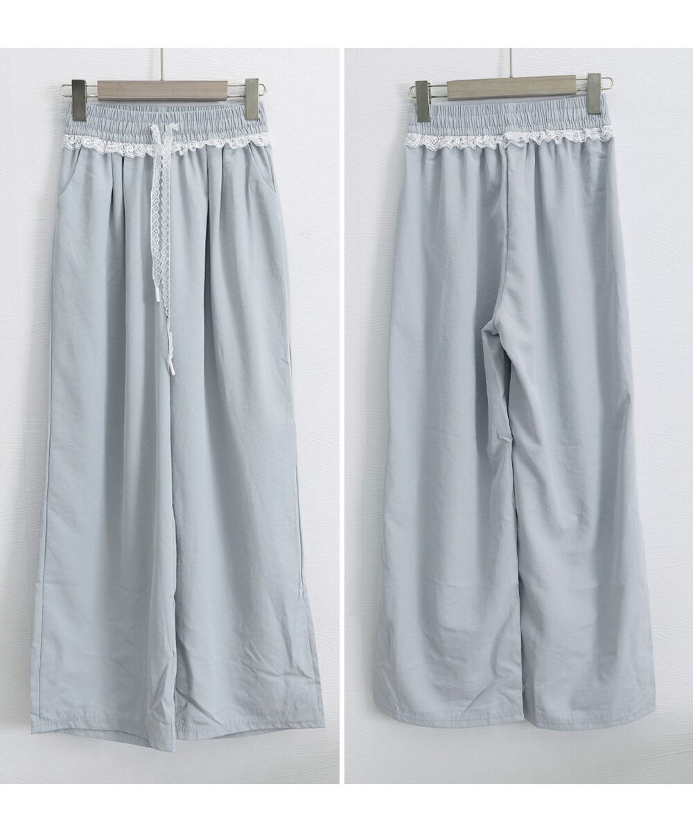 レース付きワイドパンツ イージーパンツ夏