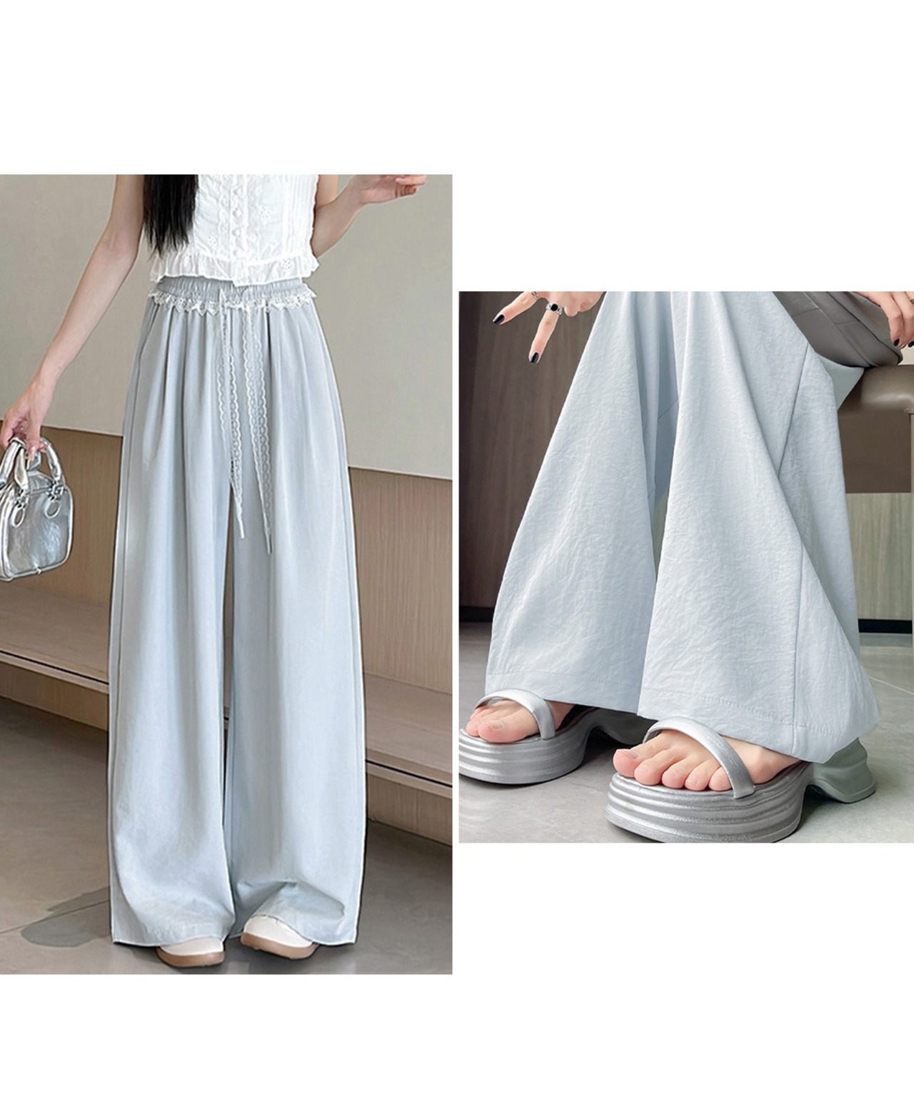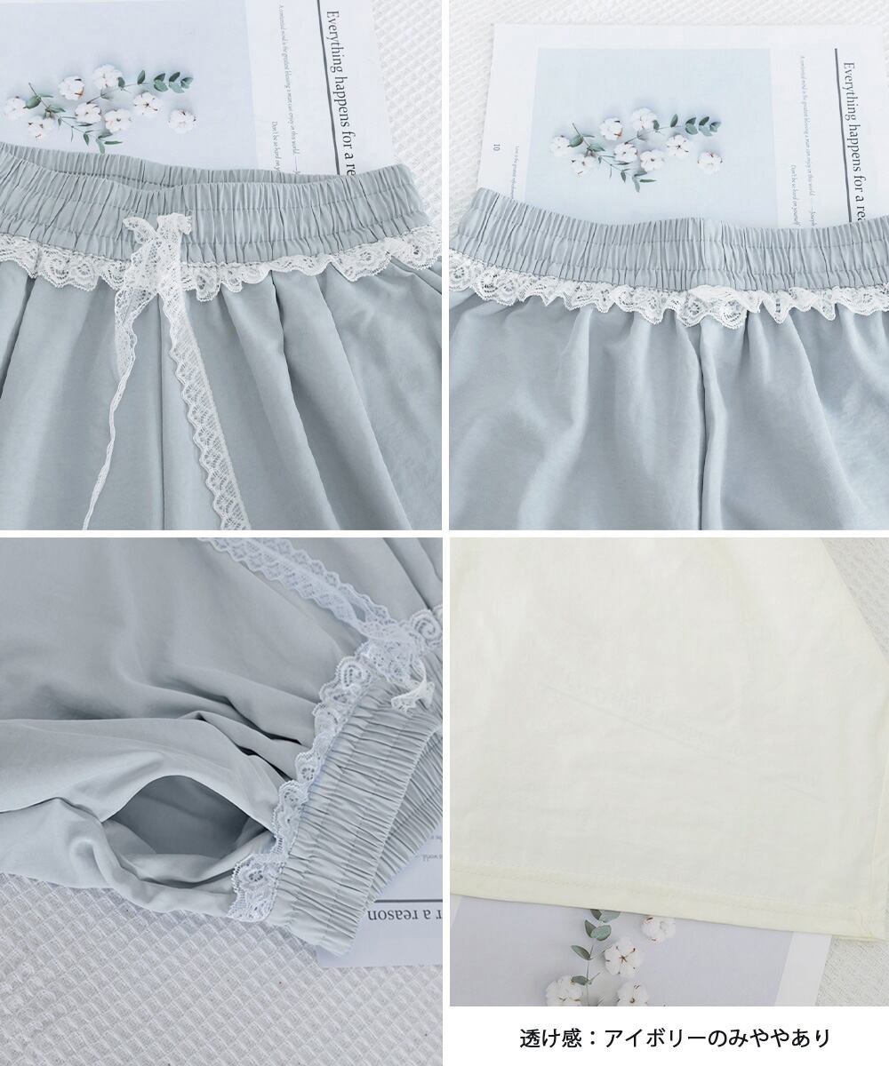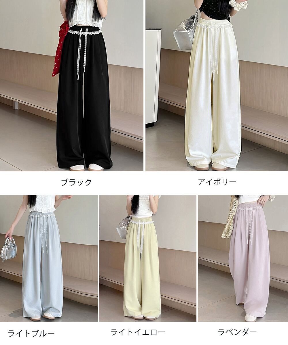 レース付きワイドパンツ イージーパンツ夏