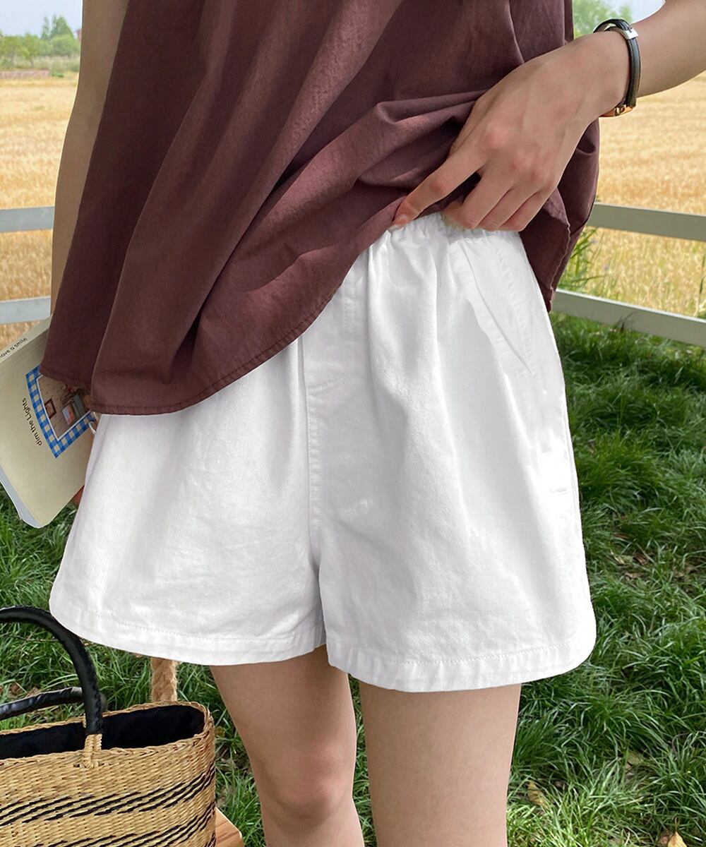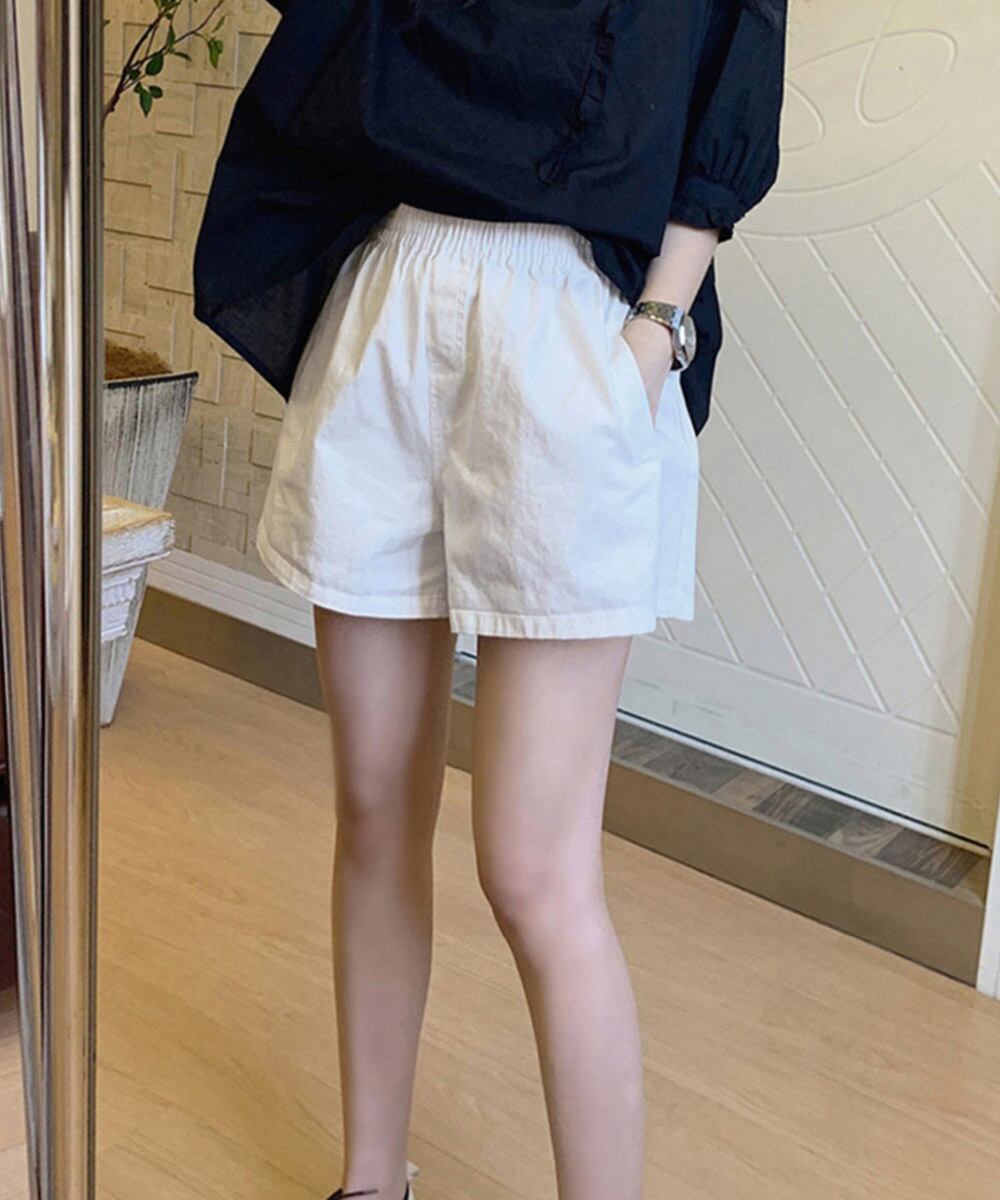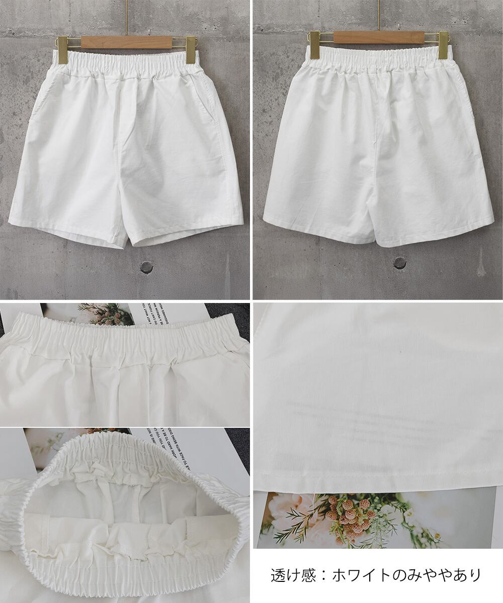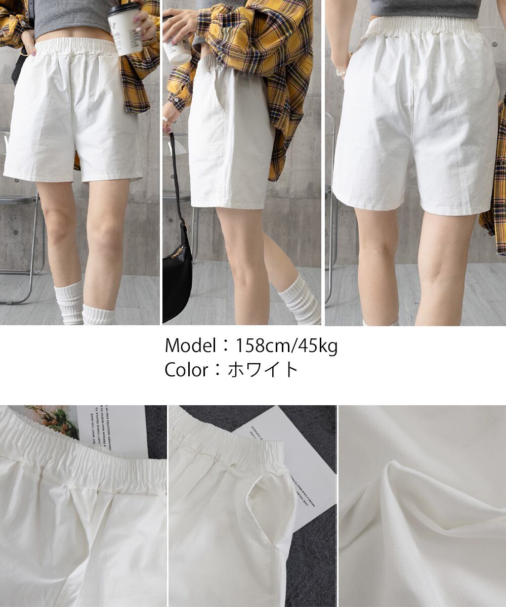 ポケット付き 着やせ 短パン ハイウエスト 夏ボトムス ベーシックショーパン ウエストゴム カジュアルパンツ無地 涼しげ
