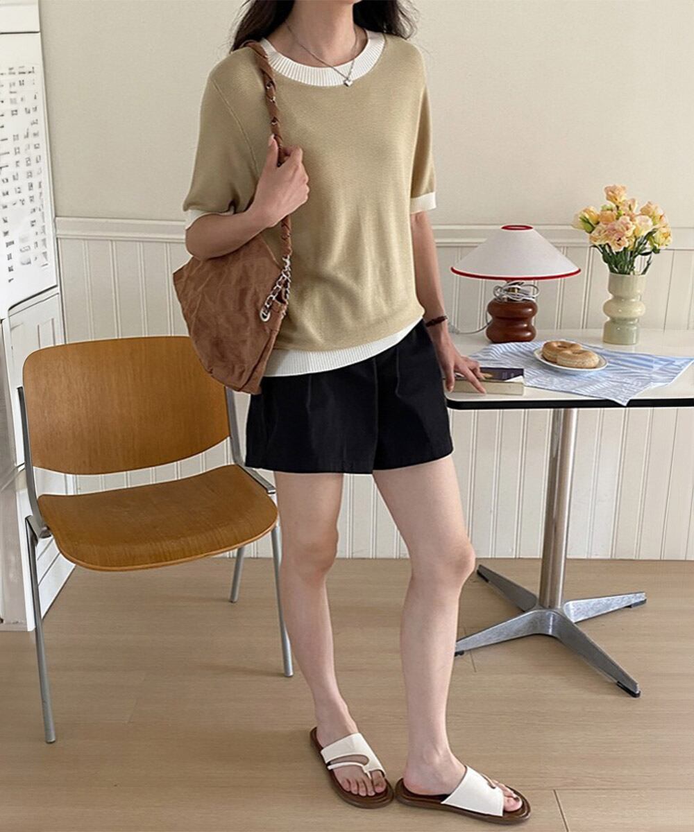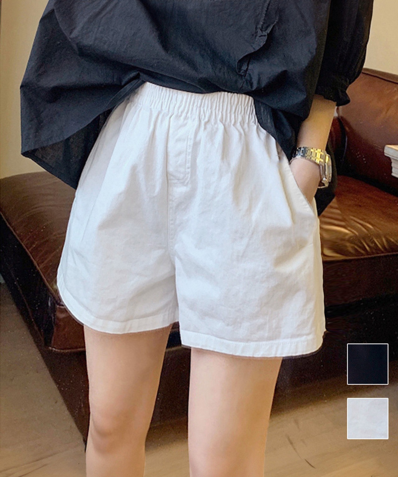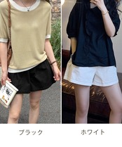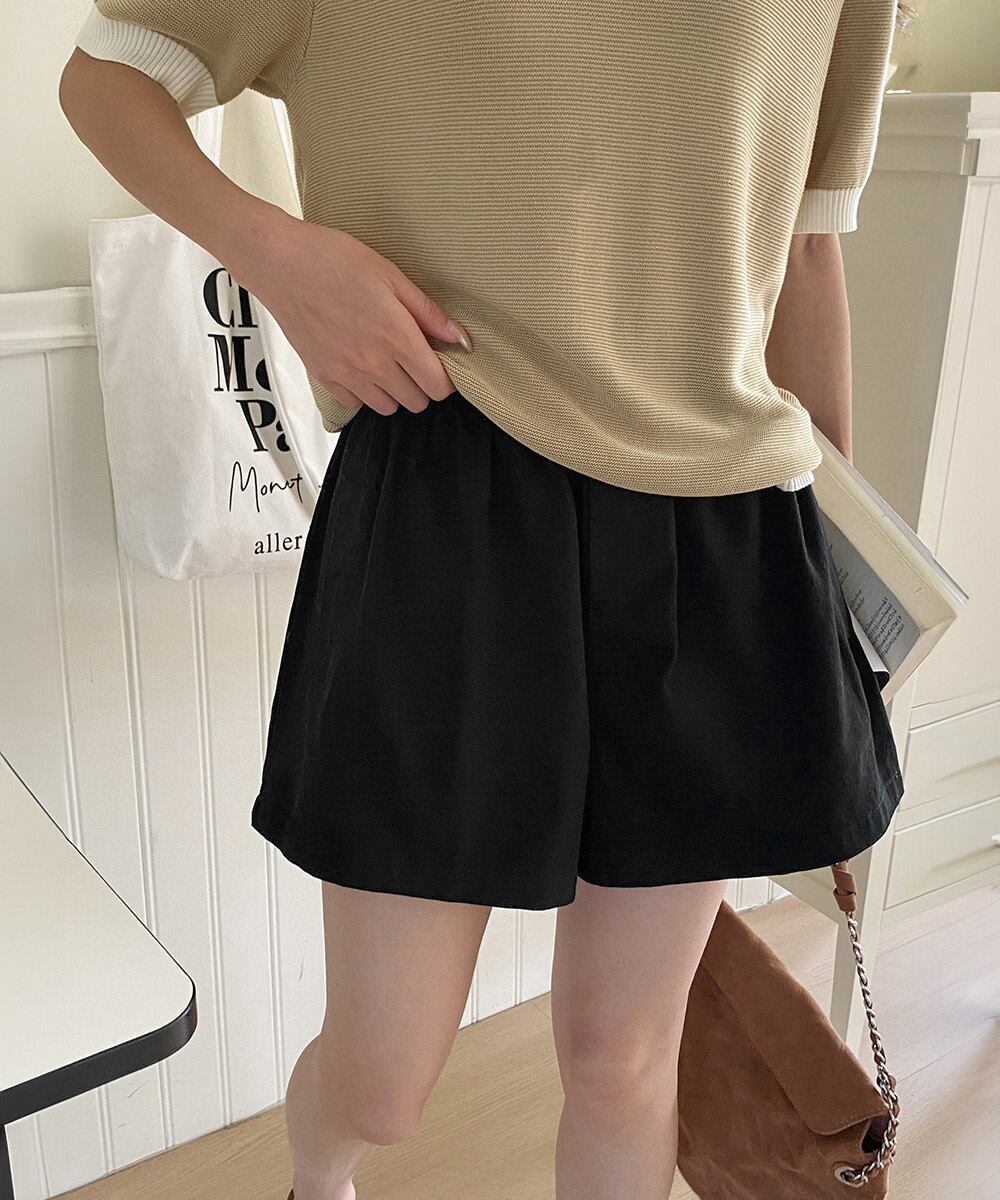 程よいワイド感夏服 大人可愛い短パン黒 美脚見え薄手抜け感