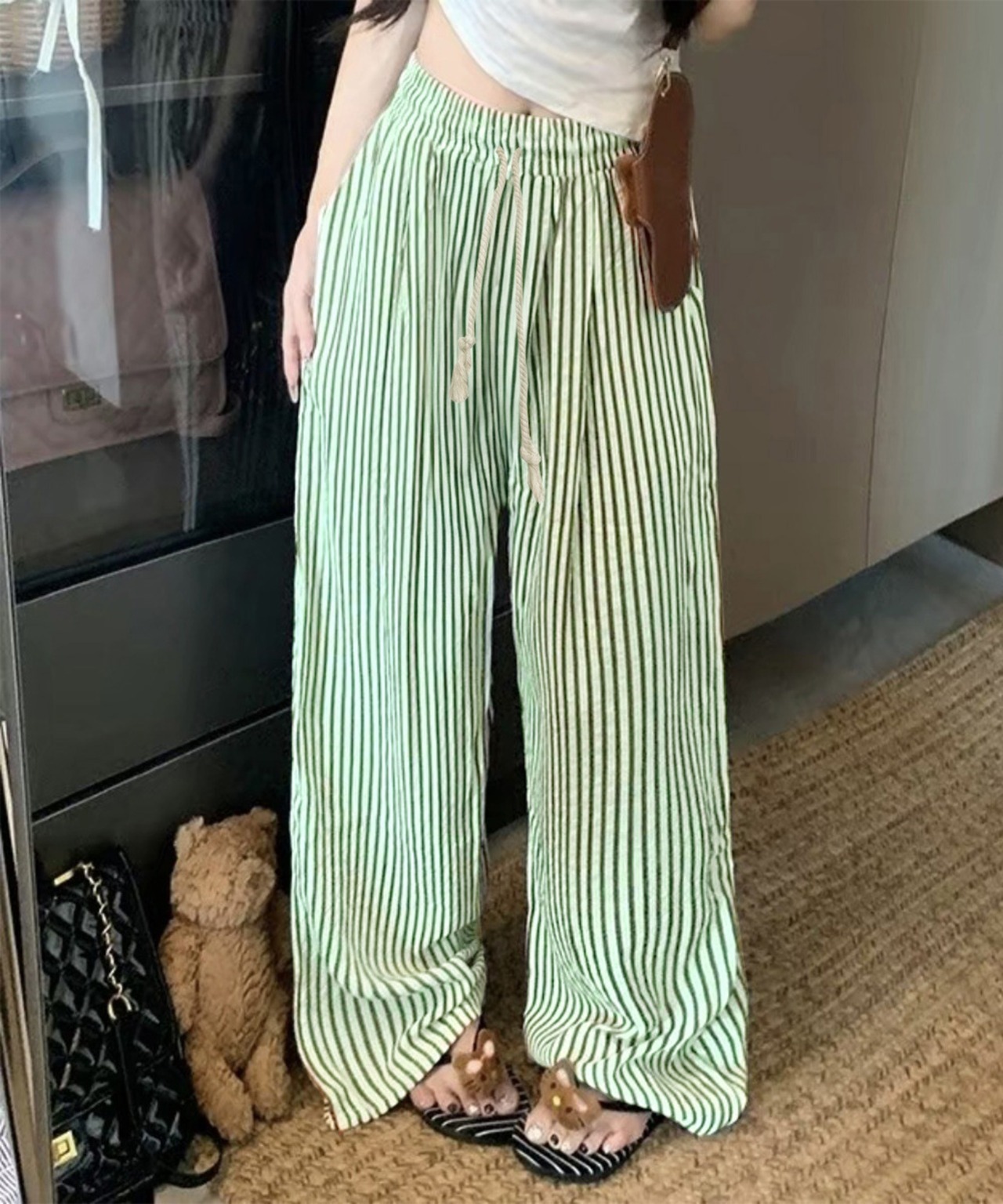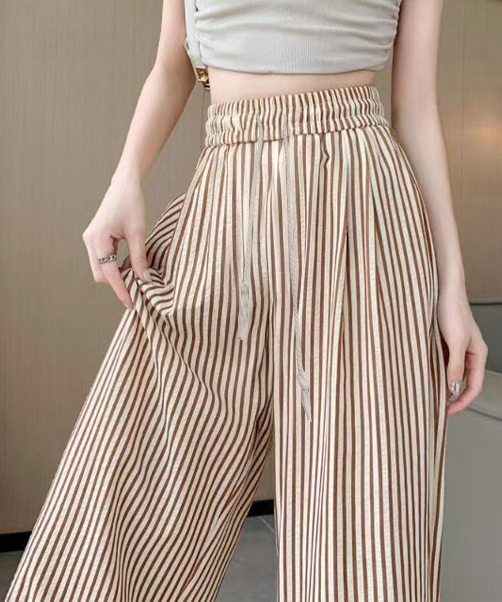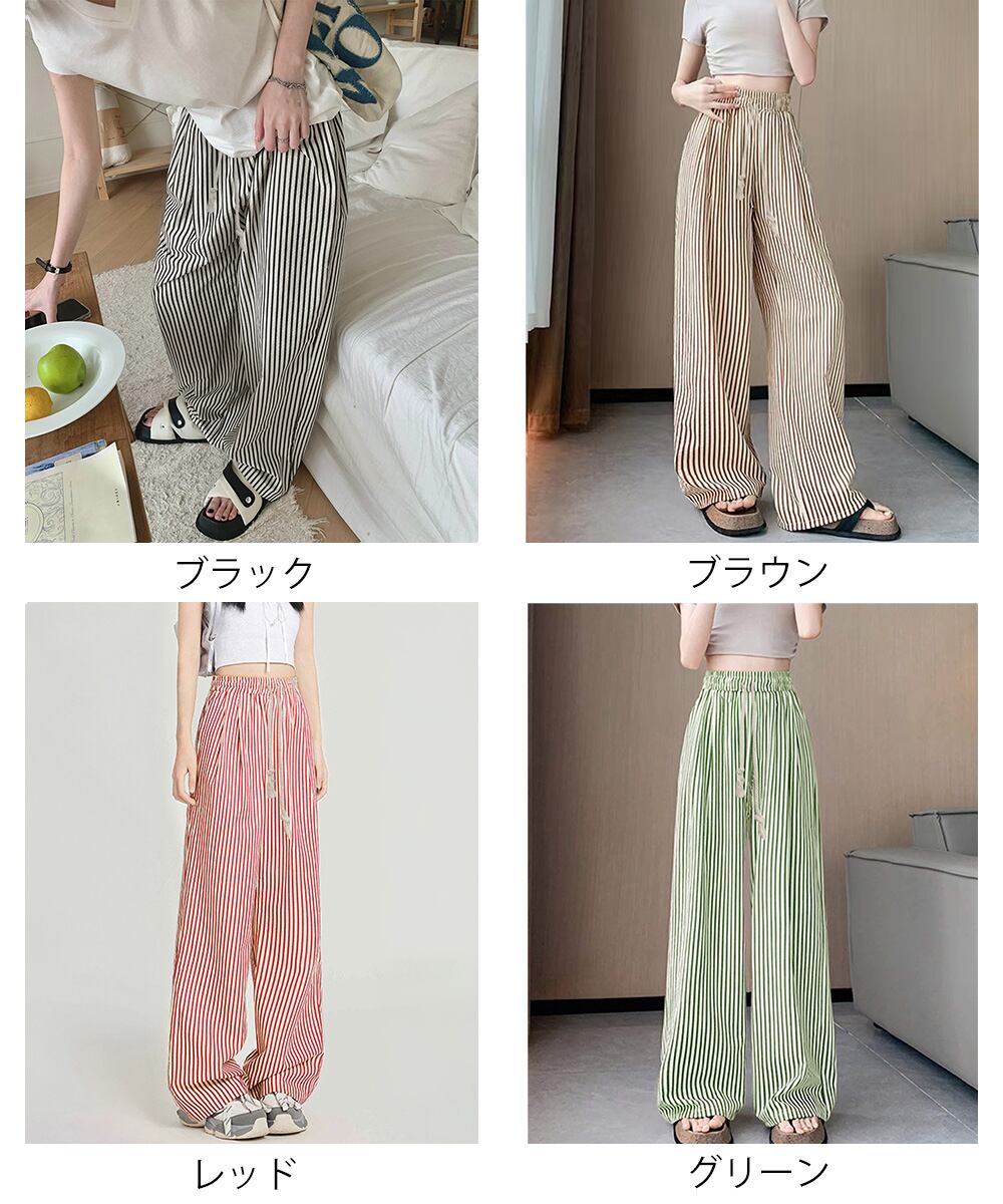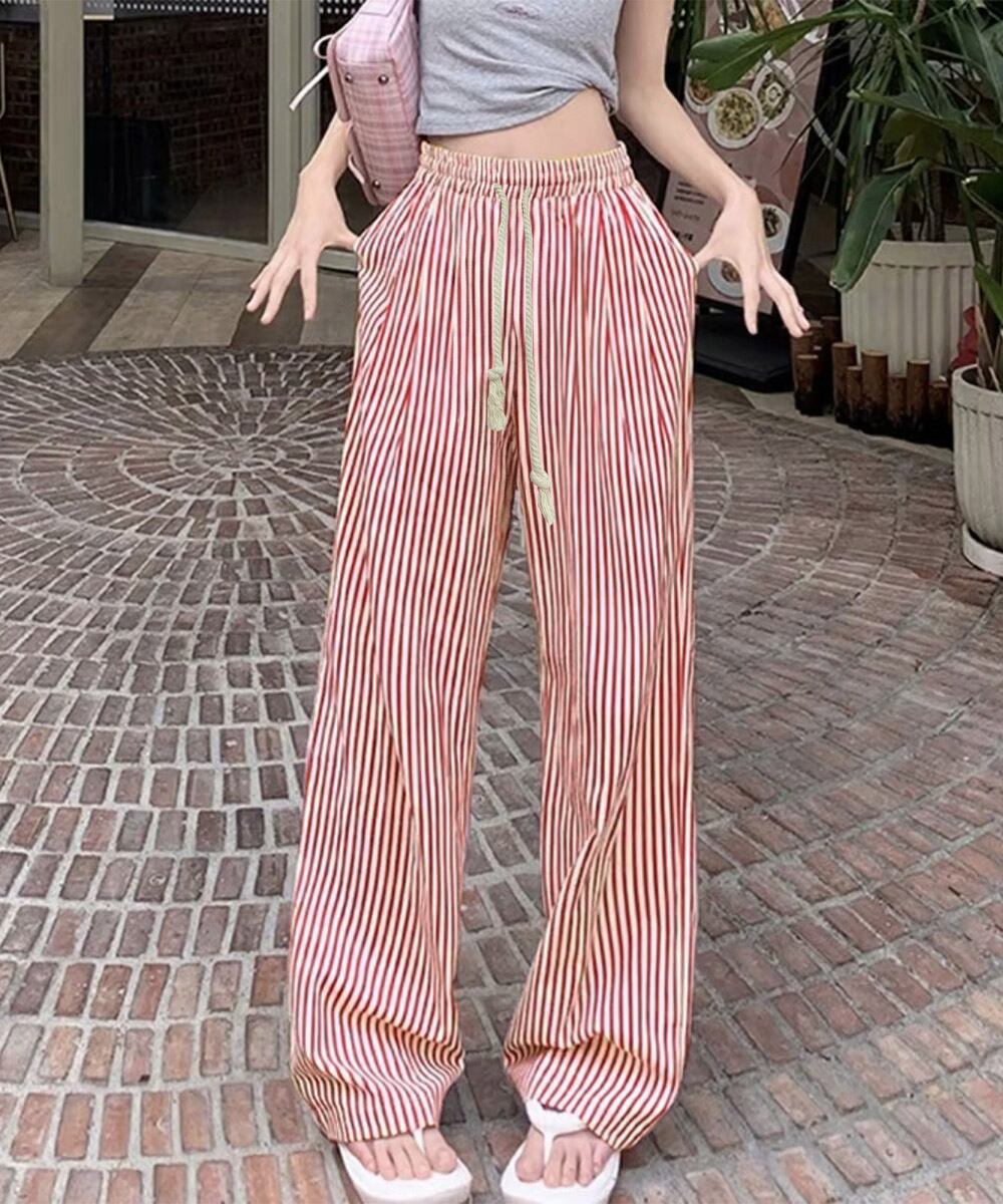 ストライプ柄が爽やかで、抜け感のあるセミワイドパンツ。