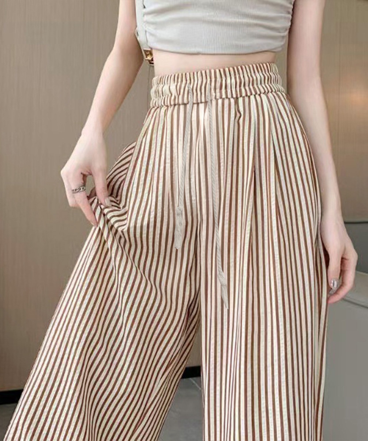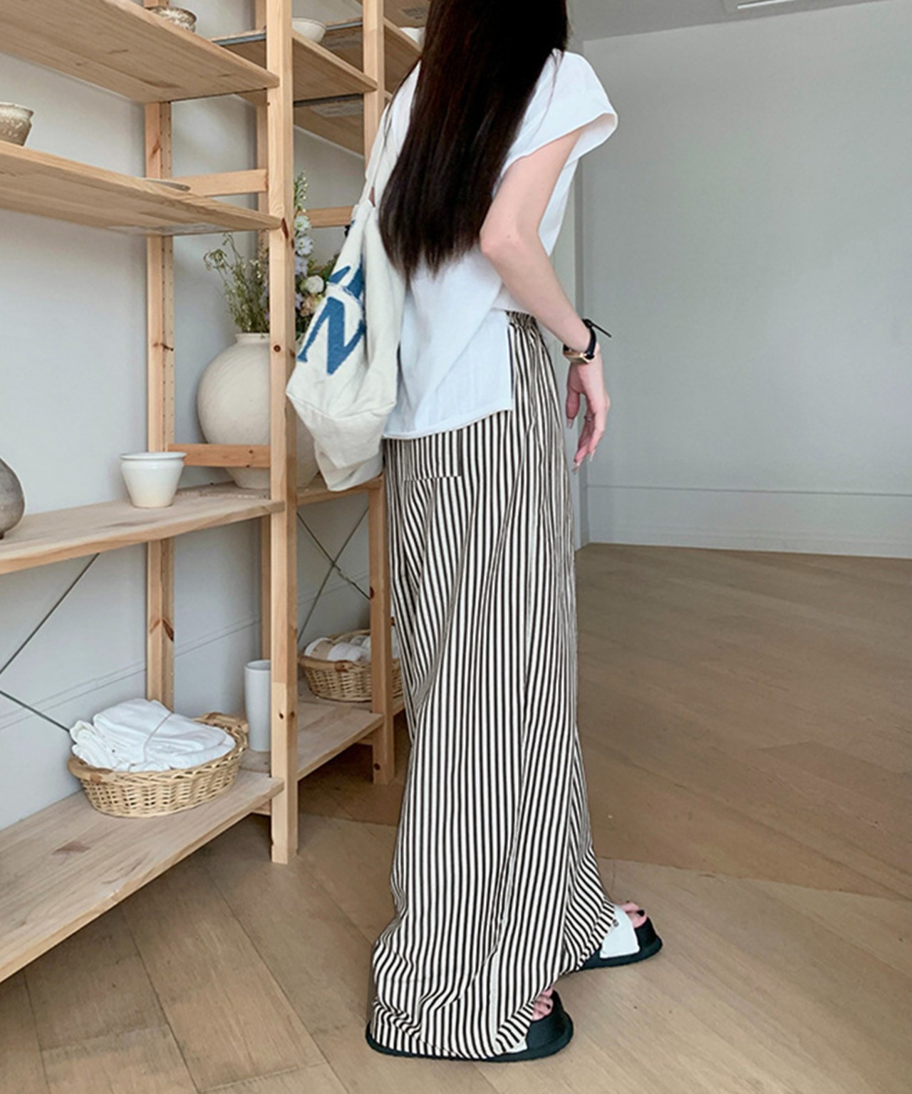 ストライプセミワイドパンツ ハイウエスト