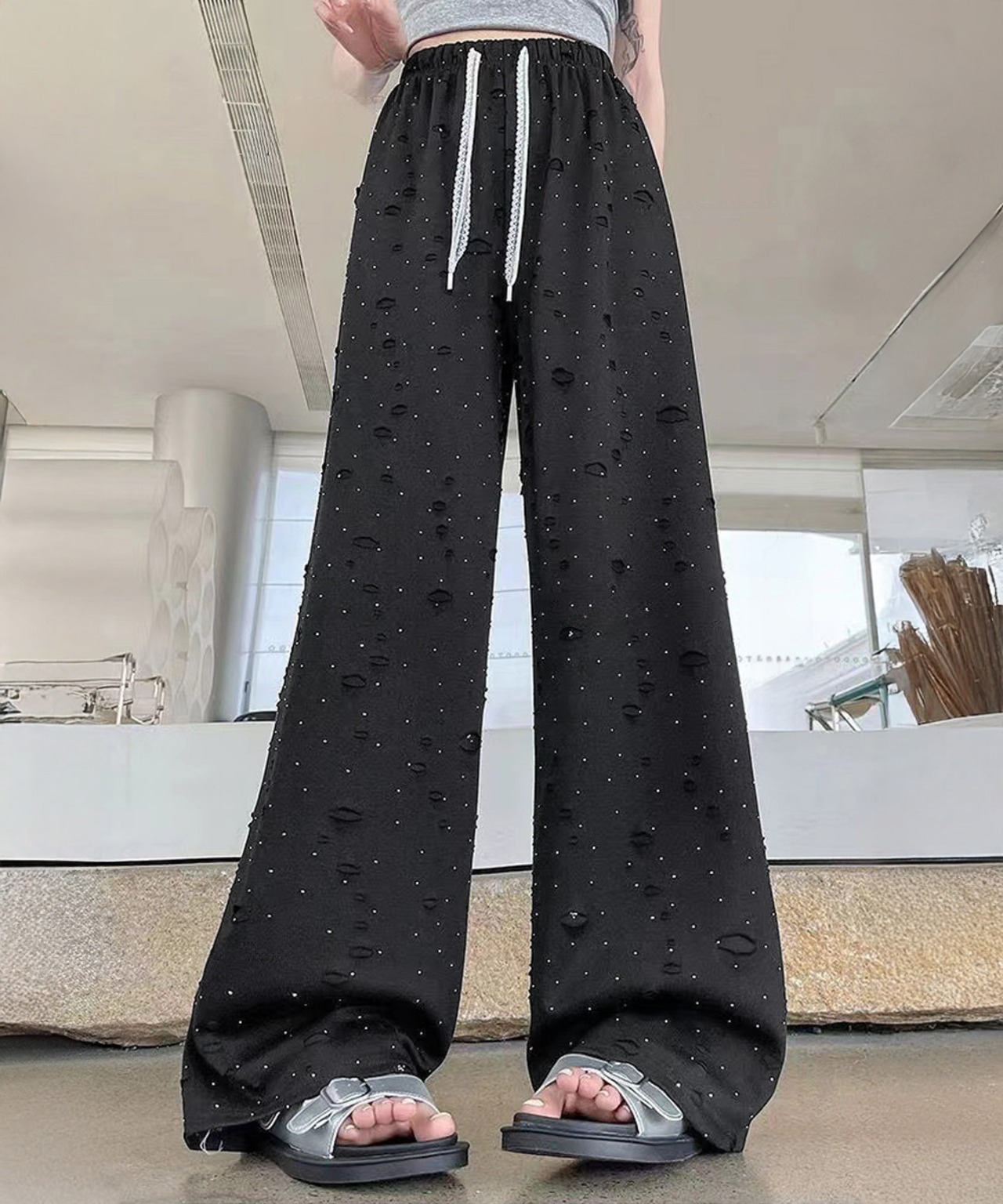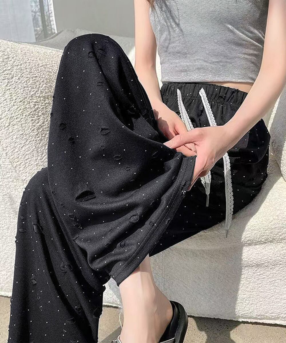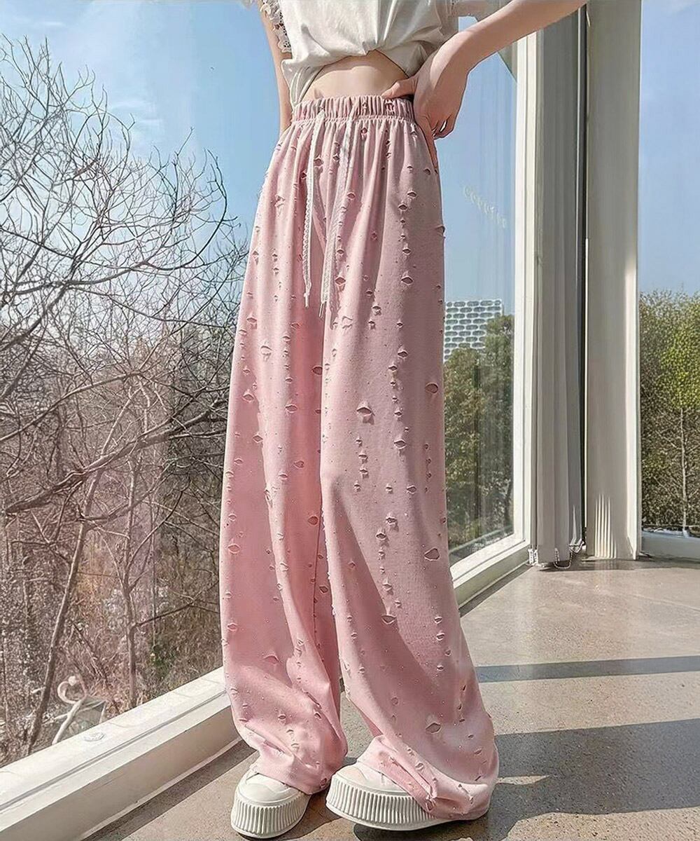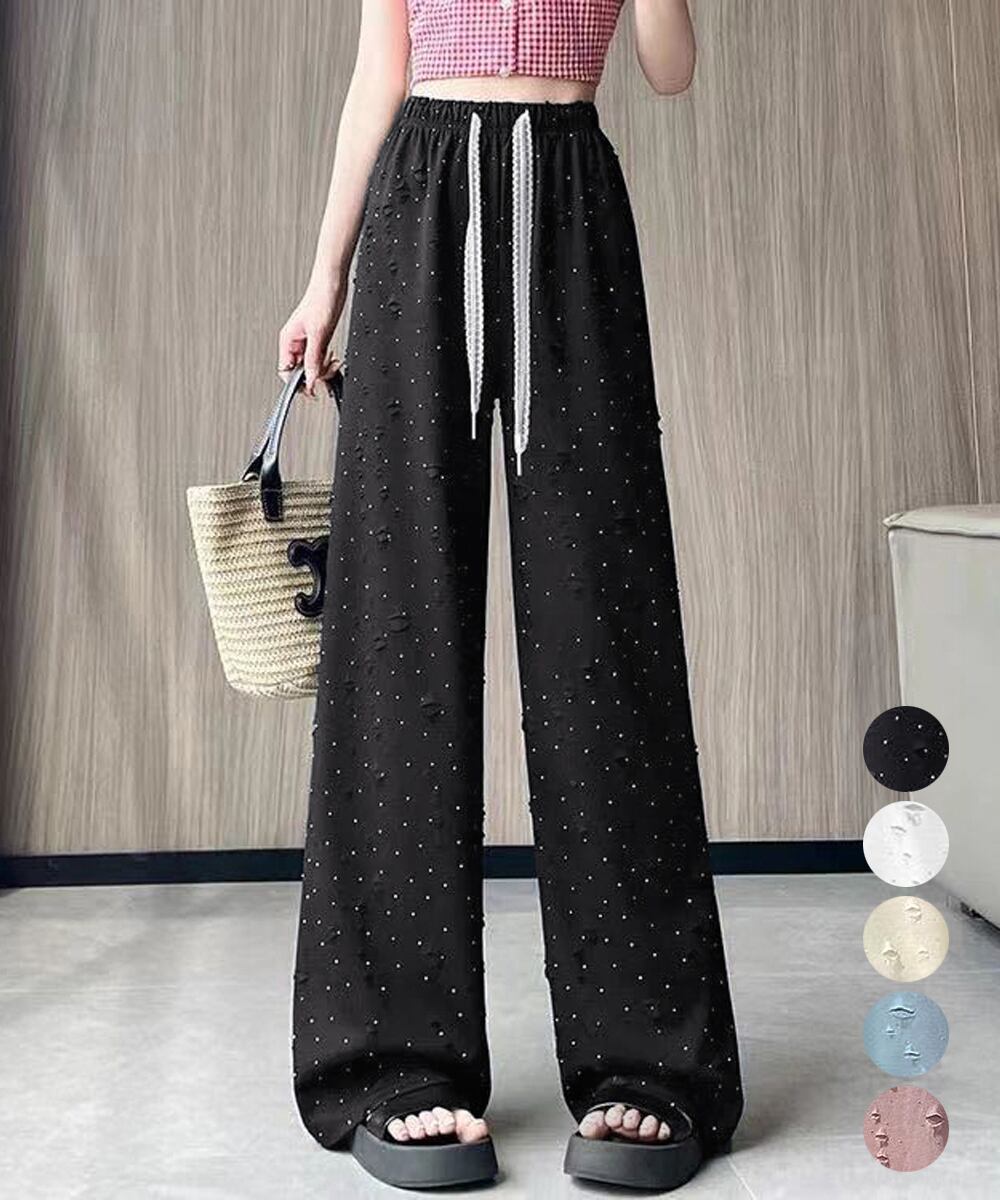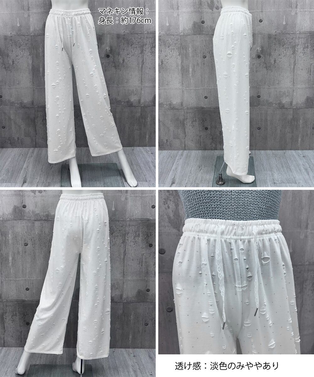キラキラビジューワイドパンツダメージ加工