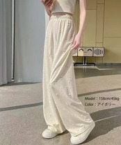薄手パンツ美脚脚長 マキシパンツ細見え ウエストゴムパンツ