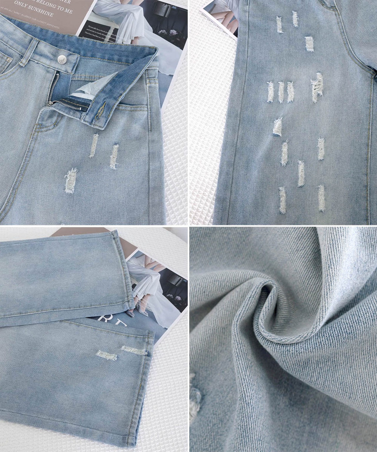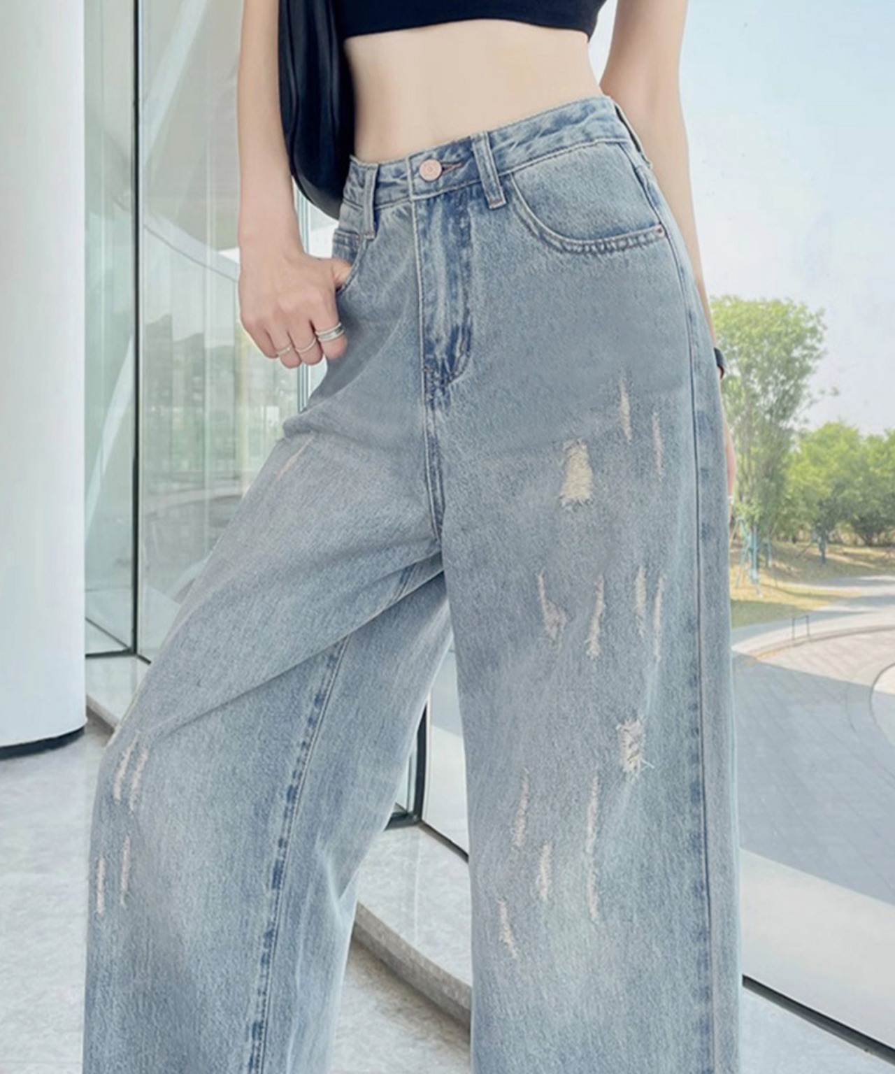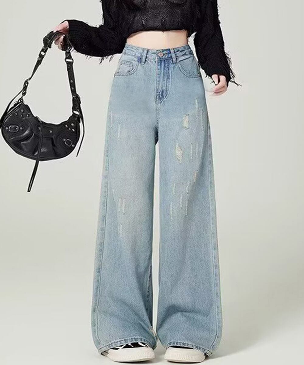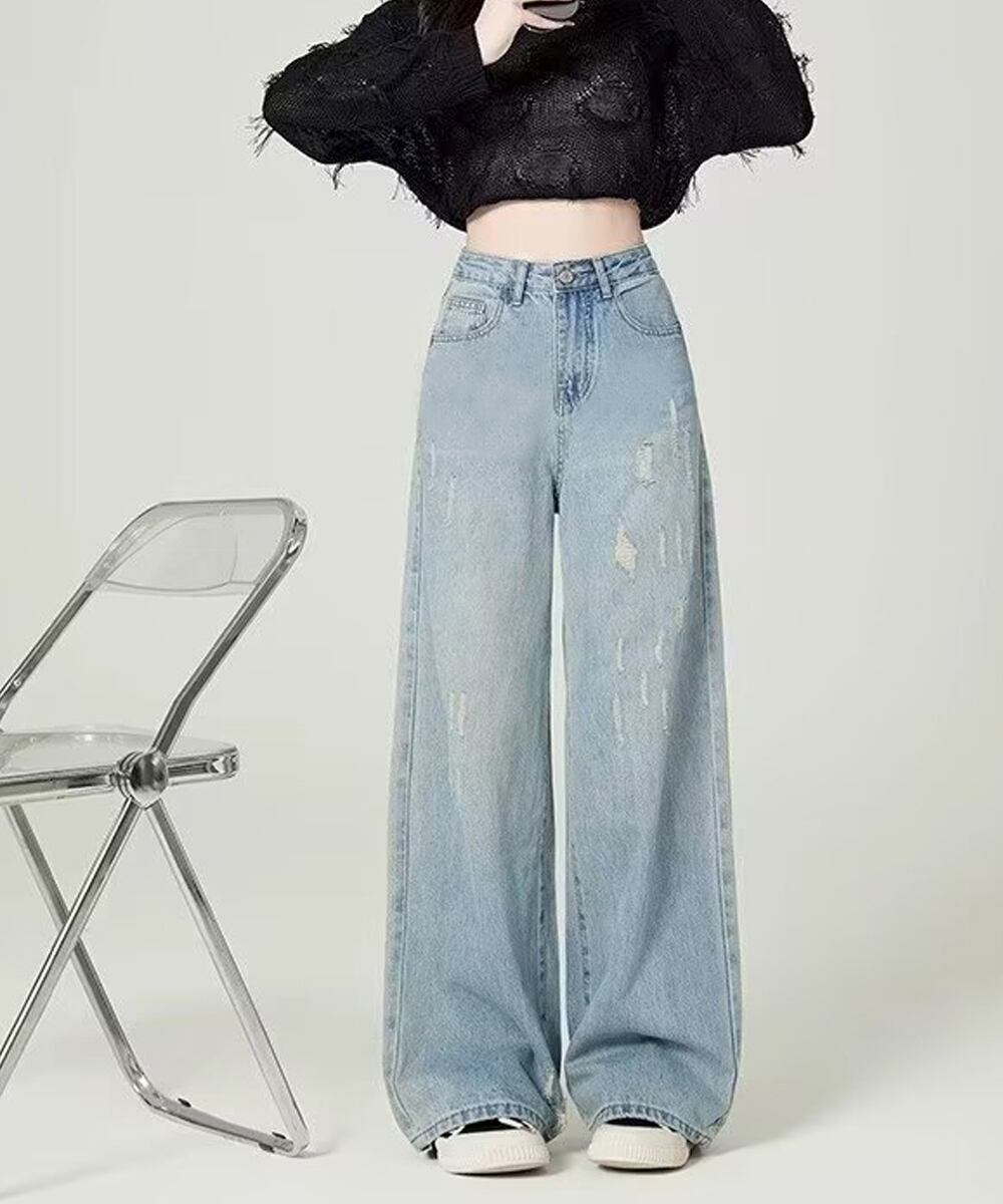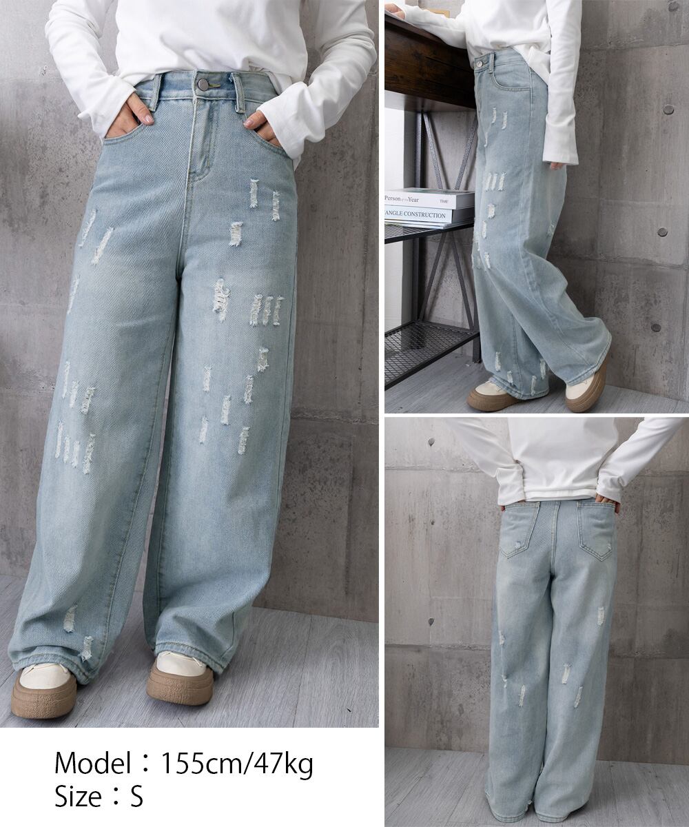 ダメージデニムパンツ ワイドレッグデニム