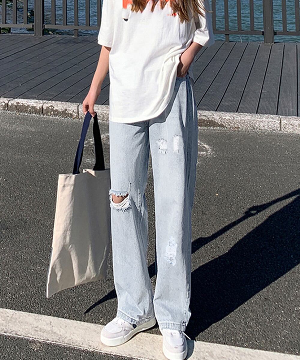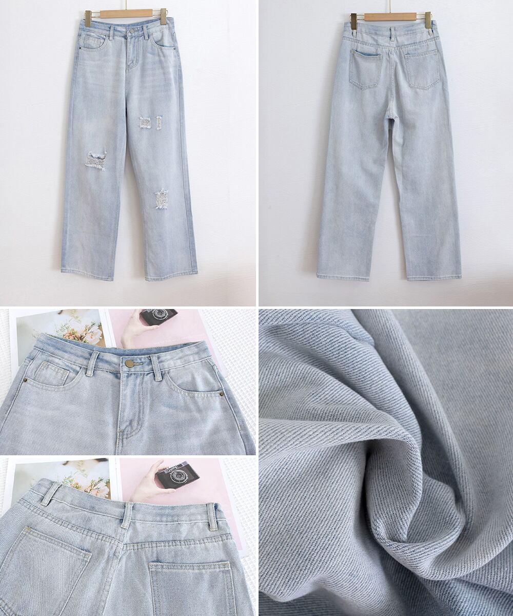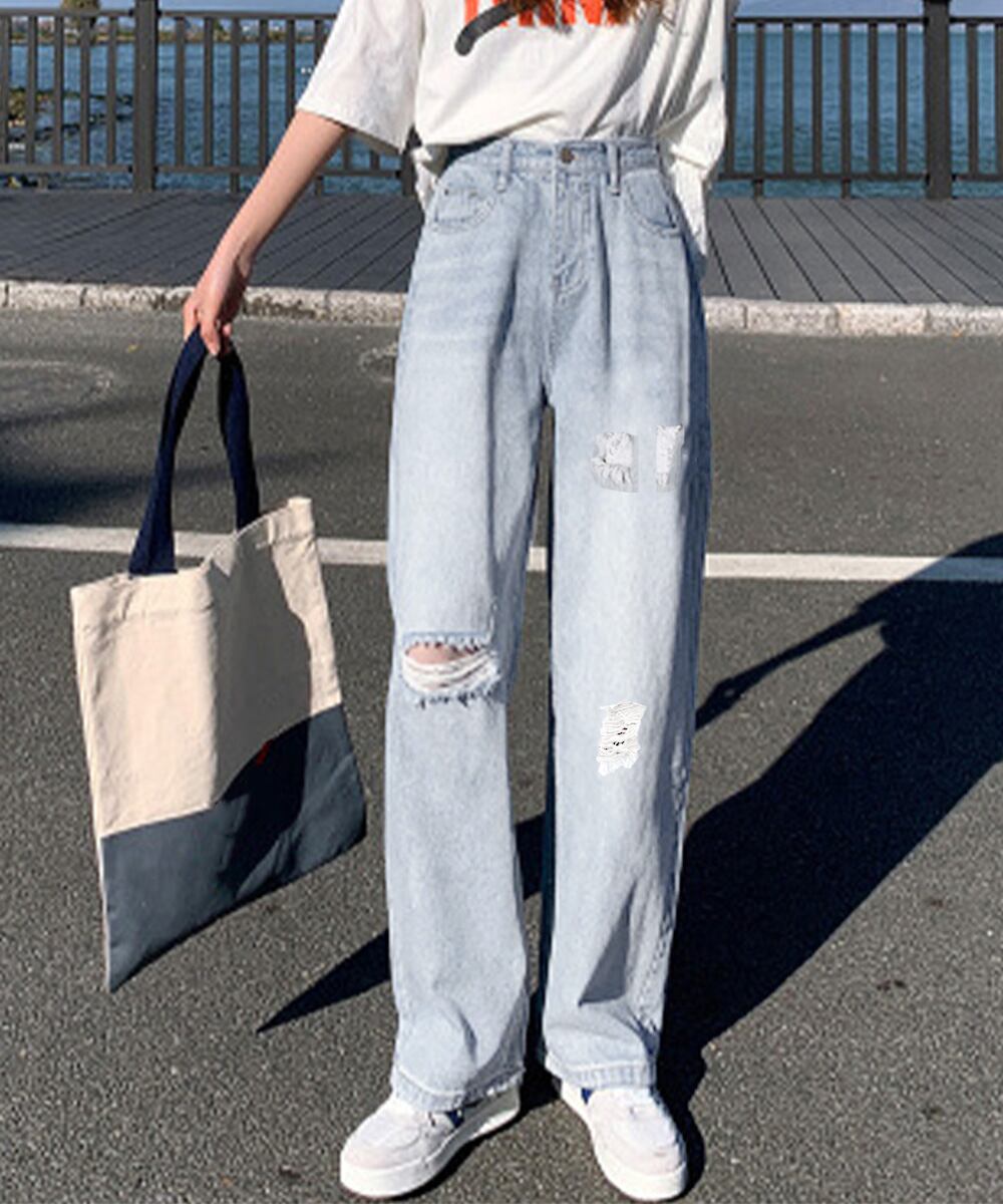 ダメージデニムパンツハイウエストジーパン