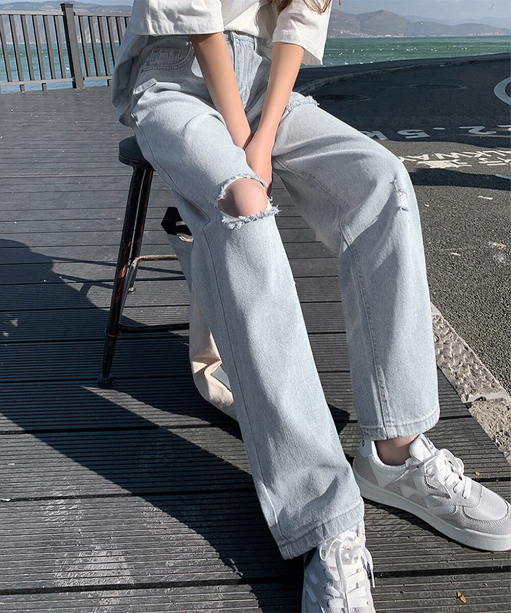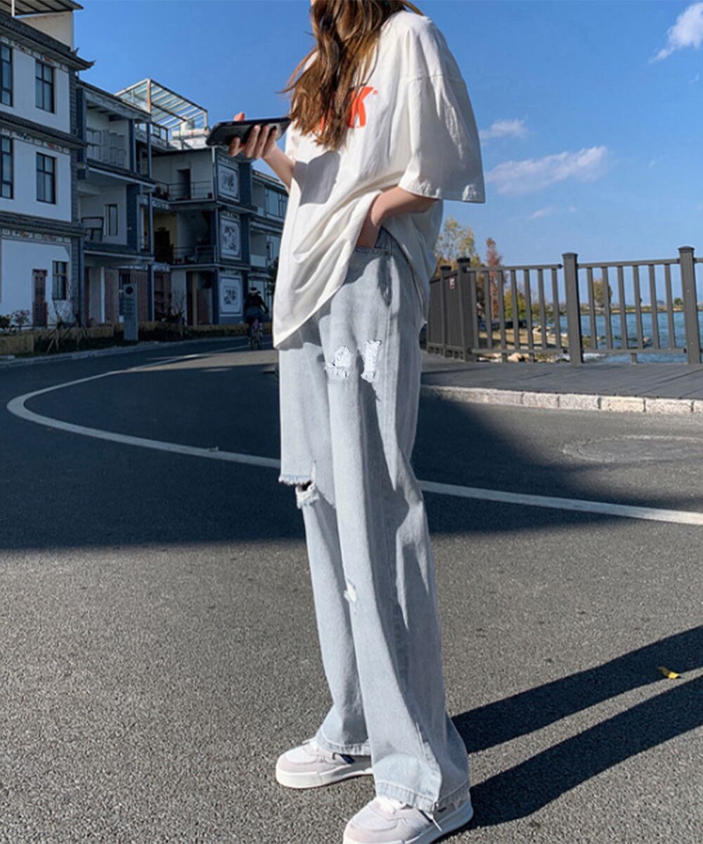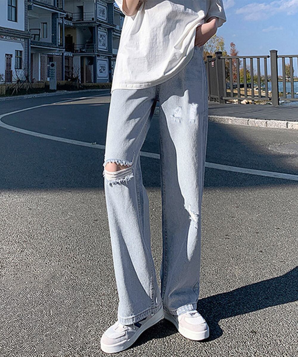 ダメージデニムパンツハイウエストジーパン