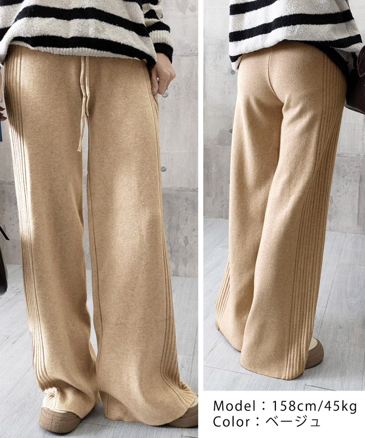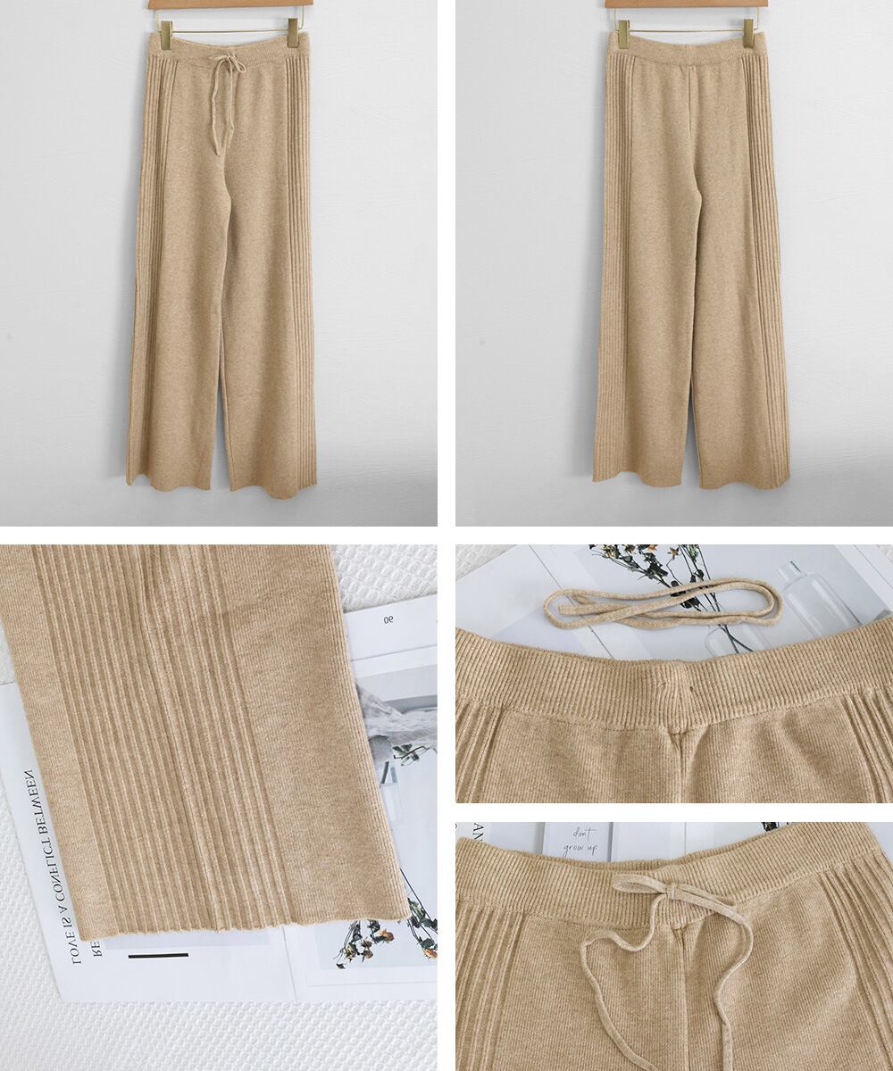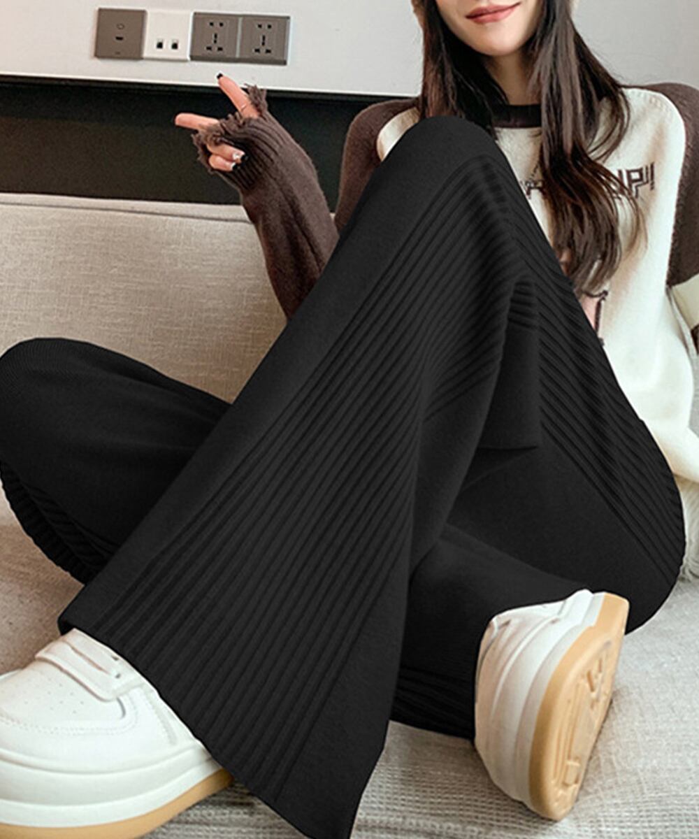 両サイドに太めのリブラインが入ったワイドニットパンツ。