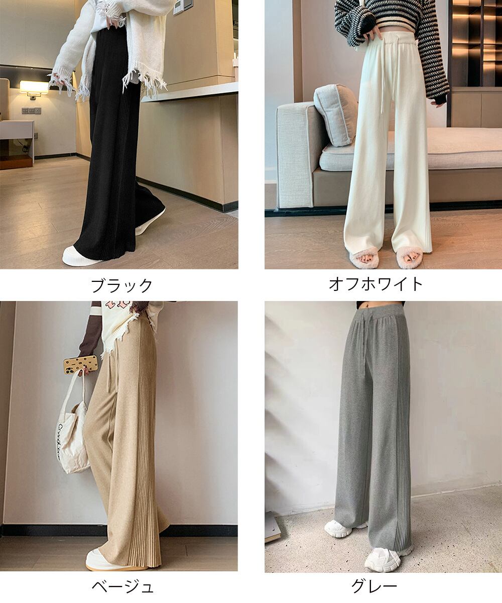 サイド縦ラインニットパンツ ワイドパンツ