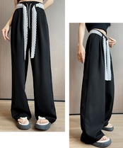 フェミニンなレースベルトがアクセントになったワイドパンツ。